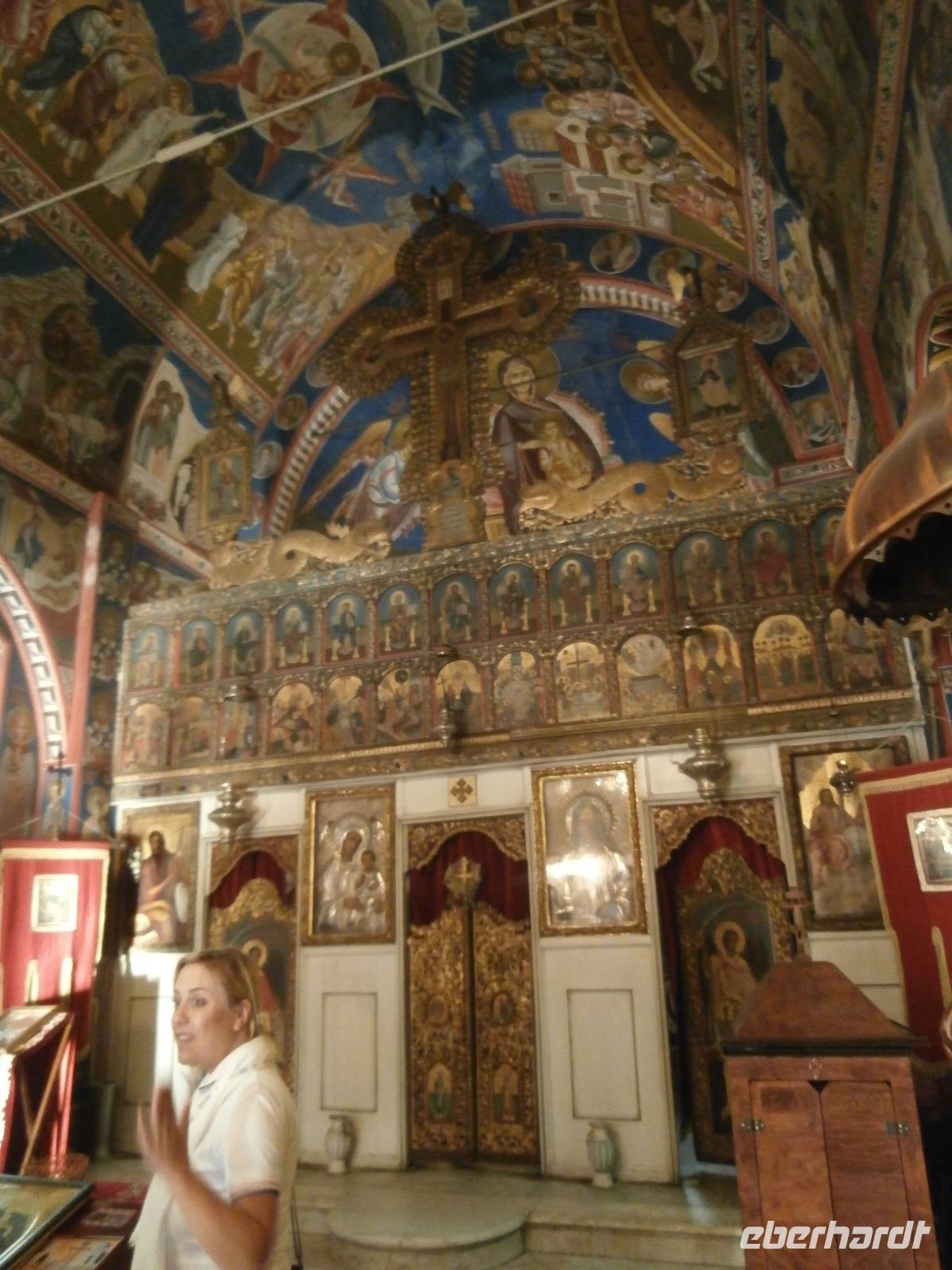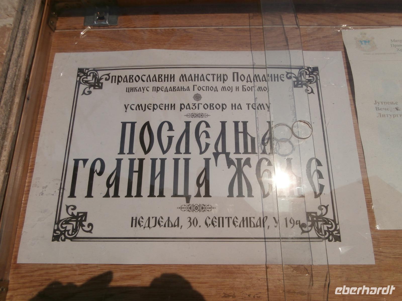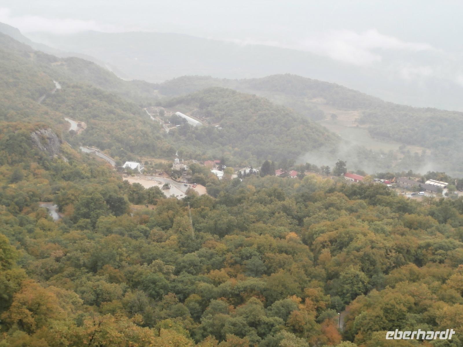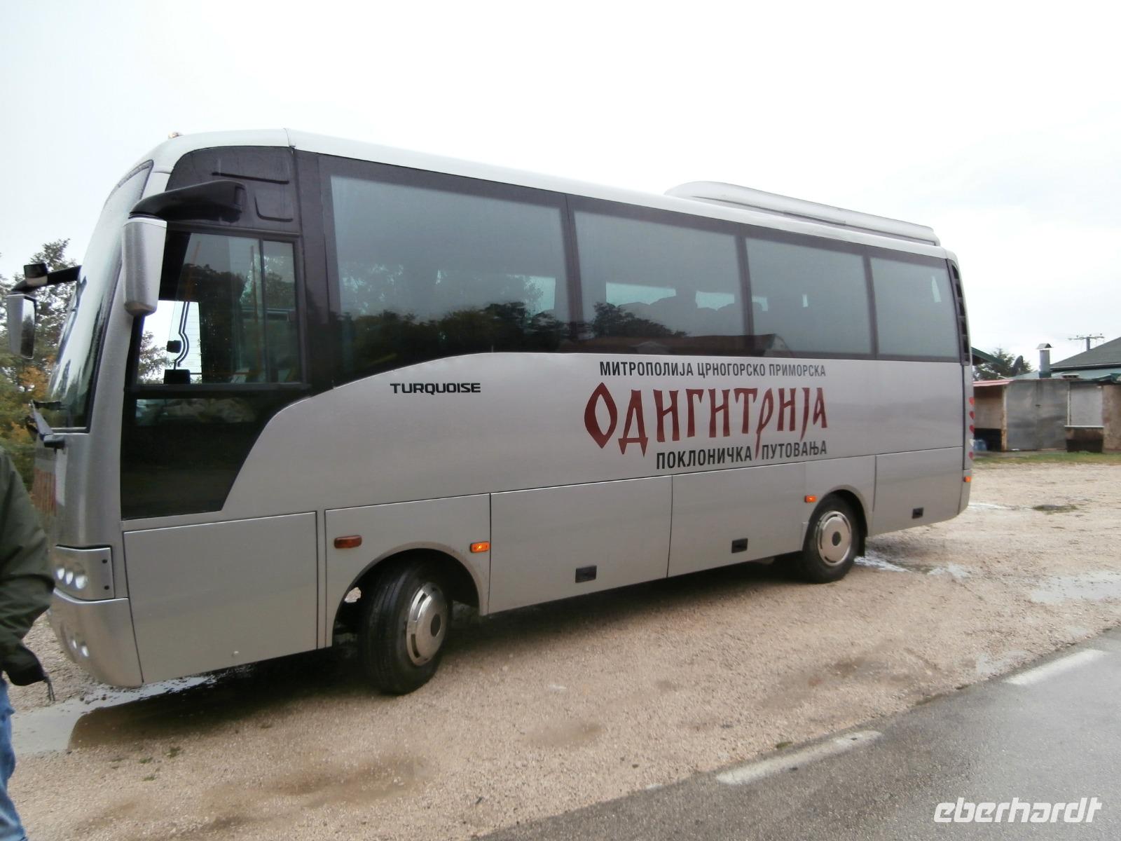 Heute steht der Besuch des Klosters Ostrog und die Hauptstadt Podgorica auf unserem Programm. Strömender Regen erwartet uns am Morgen schon zum Frühstück und er soll uns bis 17 Uhr erhalten bleiben. Eine aufregende Fahrt durch eine einzigartige Gebirgslandschaft, leider bei viel Regen, erleben wir. Dario hat zu jeder Zeit das Lenkrad souverän in der Hand, ganz galant und ruhig fährt er uns durch die kurvige Bergwelt. Bis fast zum 1. Kloster fahren wir mit unserem Bus. Dann wird in einen örtlichen, wenn auch nur wenig kleineren Bus, umgestiegen, Viele Kurven führen im Regen hinauf zum Kloster Ostrog, auf über 900 Meter Höhe weit über dem Fluss Zeta befindet sich das Kloster in Fels gehauen. Beeindruckend dieser Bau, wie er sich an die hohe Felswand schmiegt, mit seinen ausgebauten Höhlenräumen. Nach Besichtigung und Kaffeegenuss am Automat, geht die Fahrt auf gleichem Weg wieder hinunter. Wir fahren weiter, es geht hinunter nach Podgorica, wo unsere örtliche Reiseleiterin Anna zusteigt und uns die Hauptstadt zeigt und erklärt. Nach der Stadtbesichtigung gönnen wir uns einen Kaffee oder Espresso, der Regen hört auf und wir haben nun eine sehr schöne Fahrt durch die Zeta-Ebene, vorbei am Skutarisee und weiter Richtung Küste, zur Adria. Ein Fotostopp an der Insel Sveti Stephan ist krönender Abschluss unserer Reise. Vorbei an Budva und Kotor geht die Rückfahrt zum Hotel Splendido. Letzte Fotos werden geschossen, gemeinsames Abendessen und dann auf die Zimmer zum Kofferpacken, denn schon zwei Uhr müssen wir aufstehen, gegen acht Uhr hebt unser Flieger in Richtung Heimat ab.