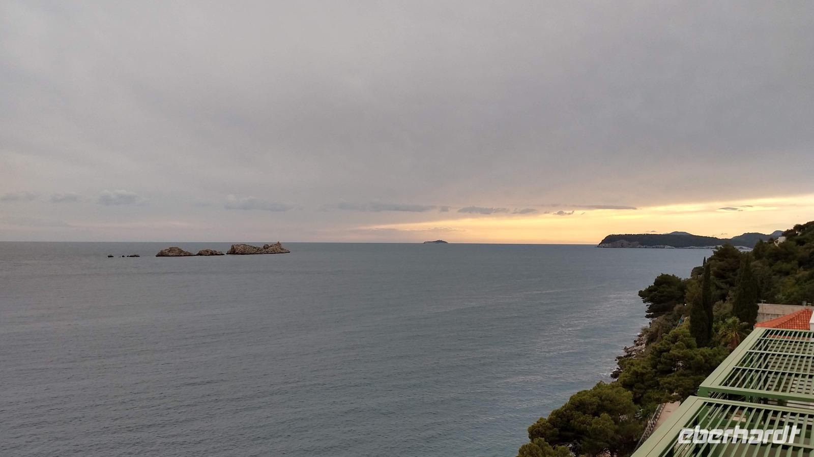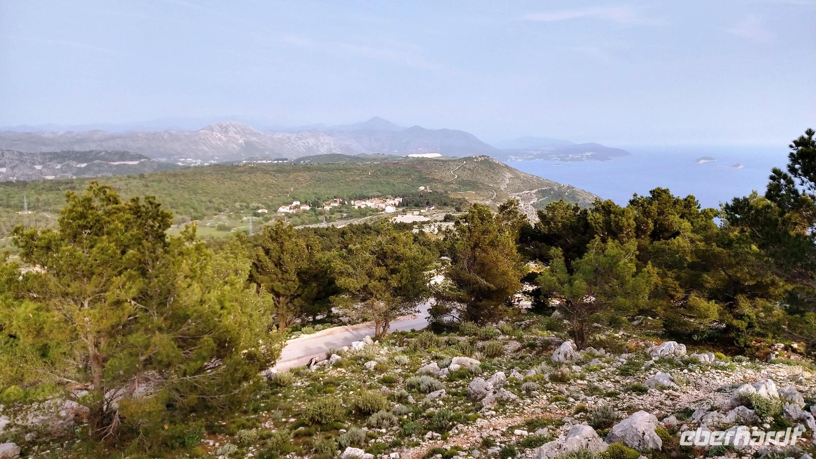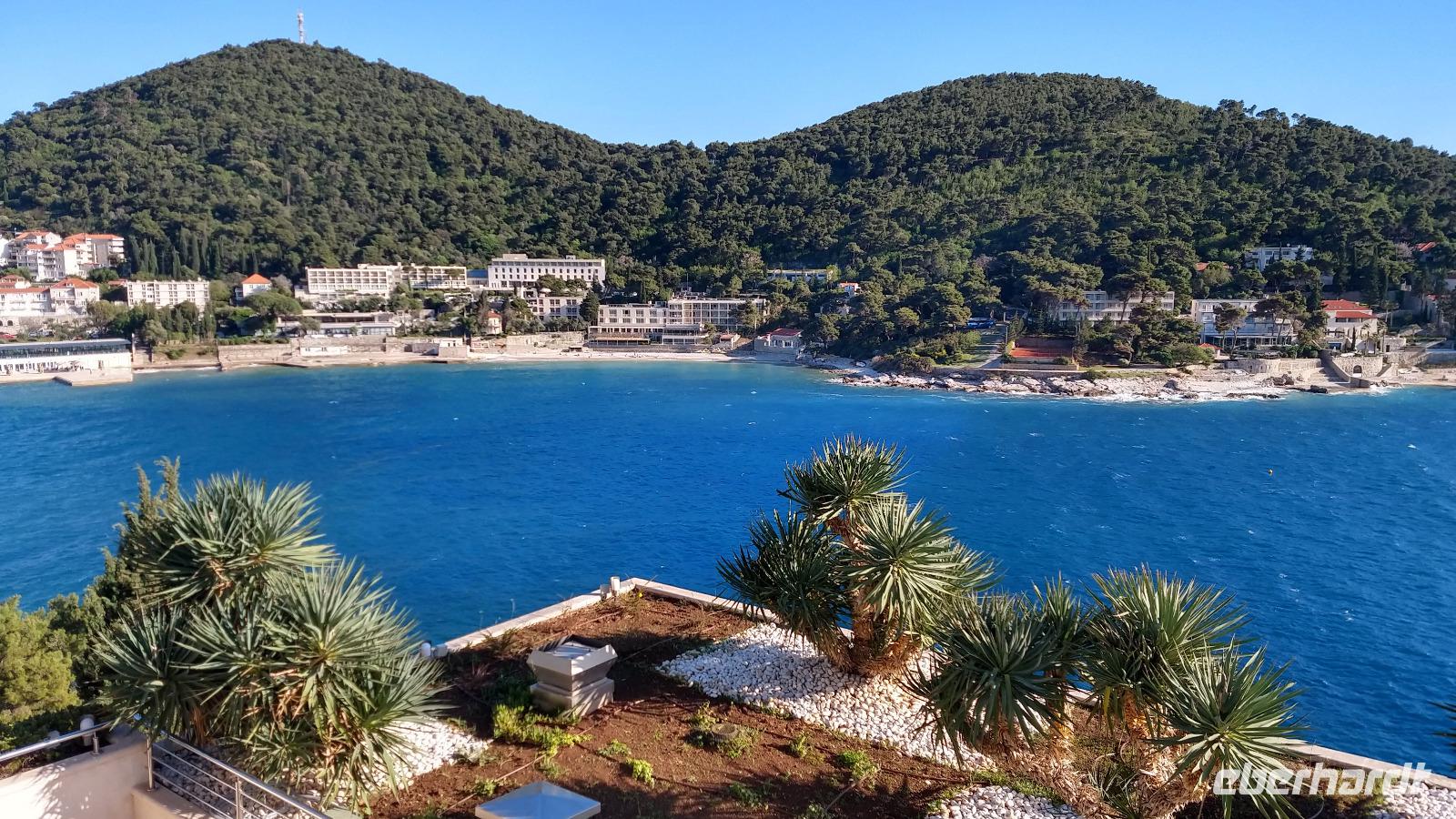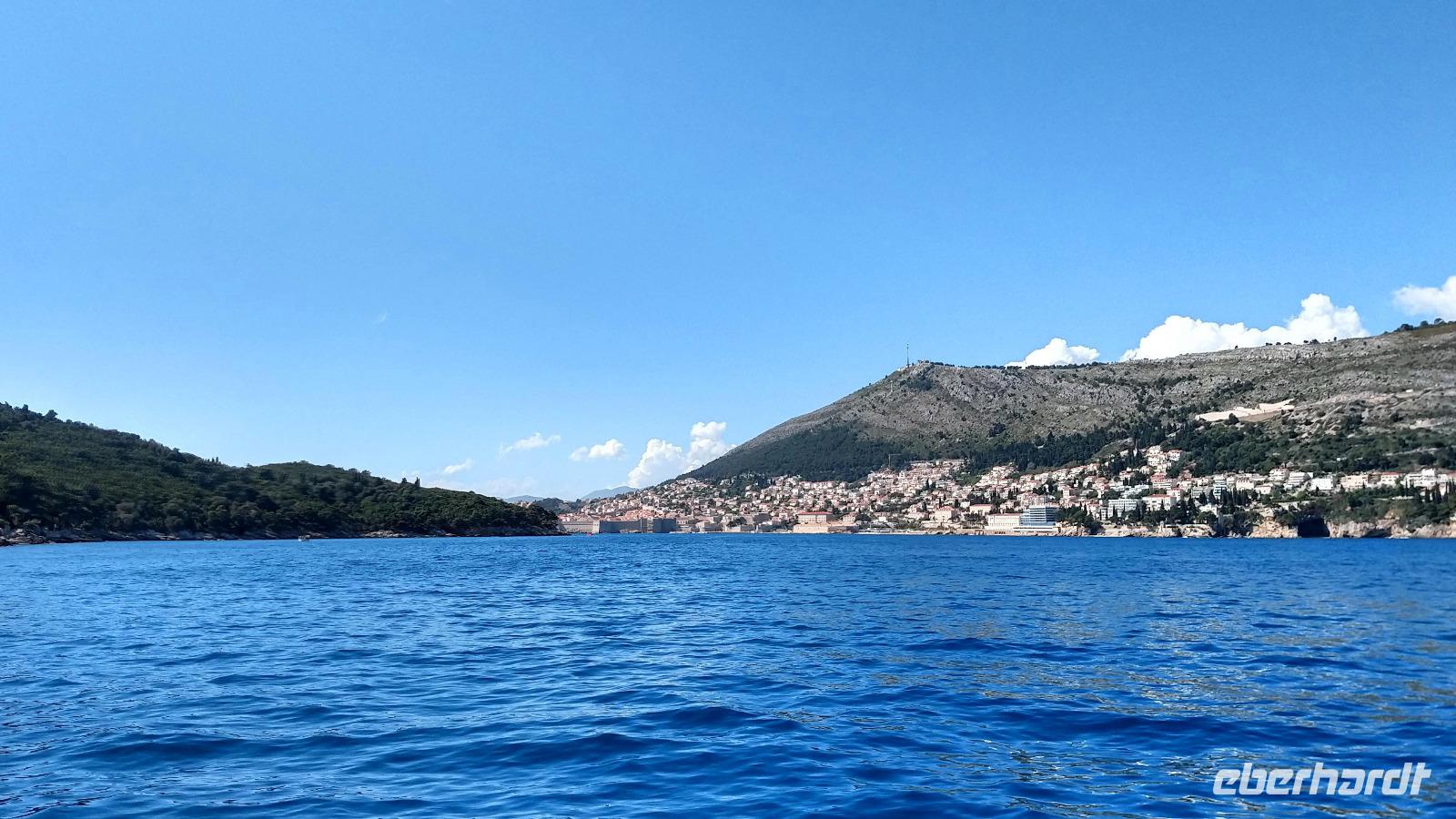 14:15 Uhr erfolgt die Abholung durch den Transferbus. Von der Küstenstraße sehen wir nochmals die Altstadt, die Insel Lokrum und die Landschaft von Kornavle.