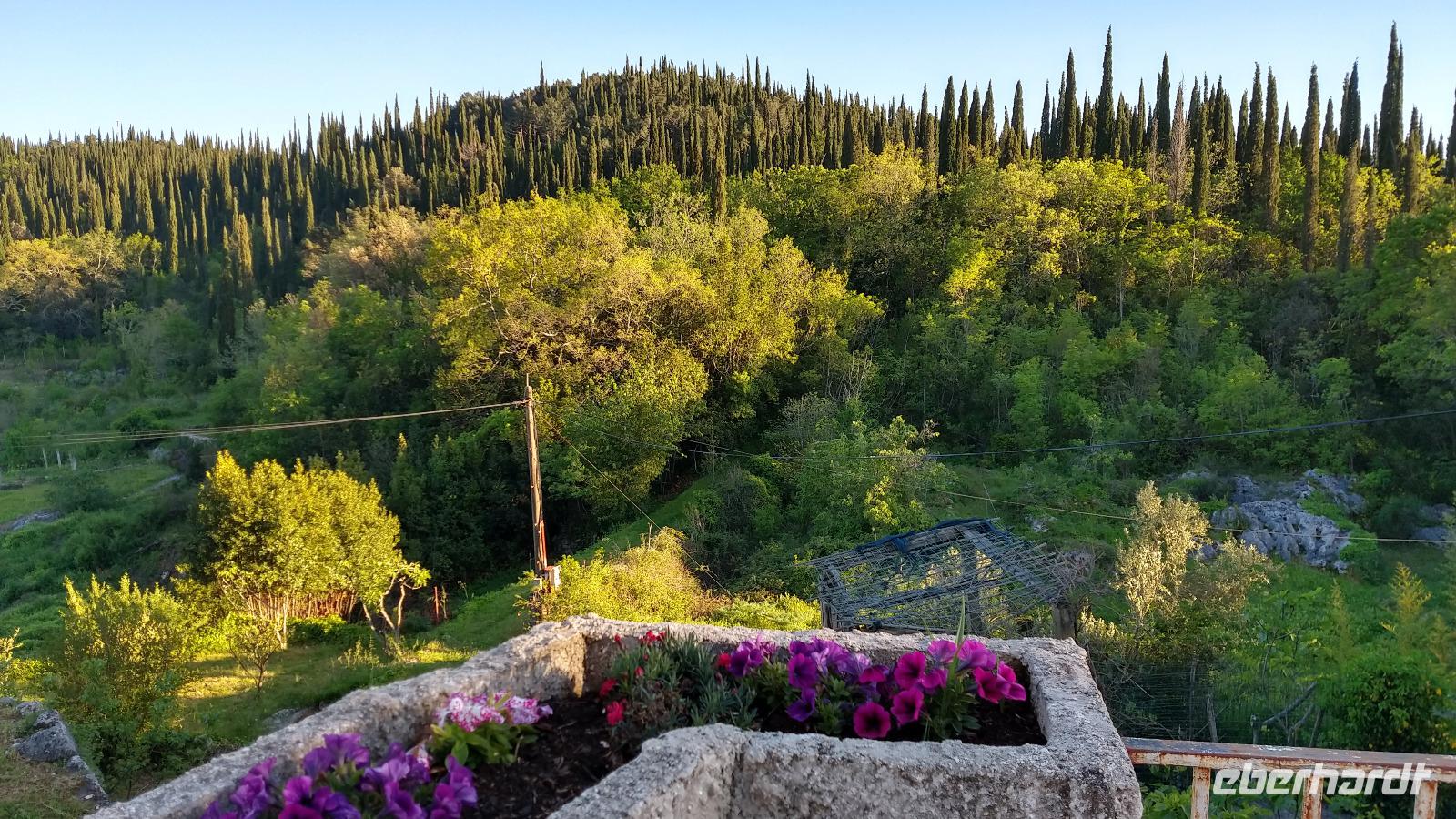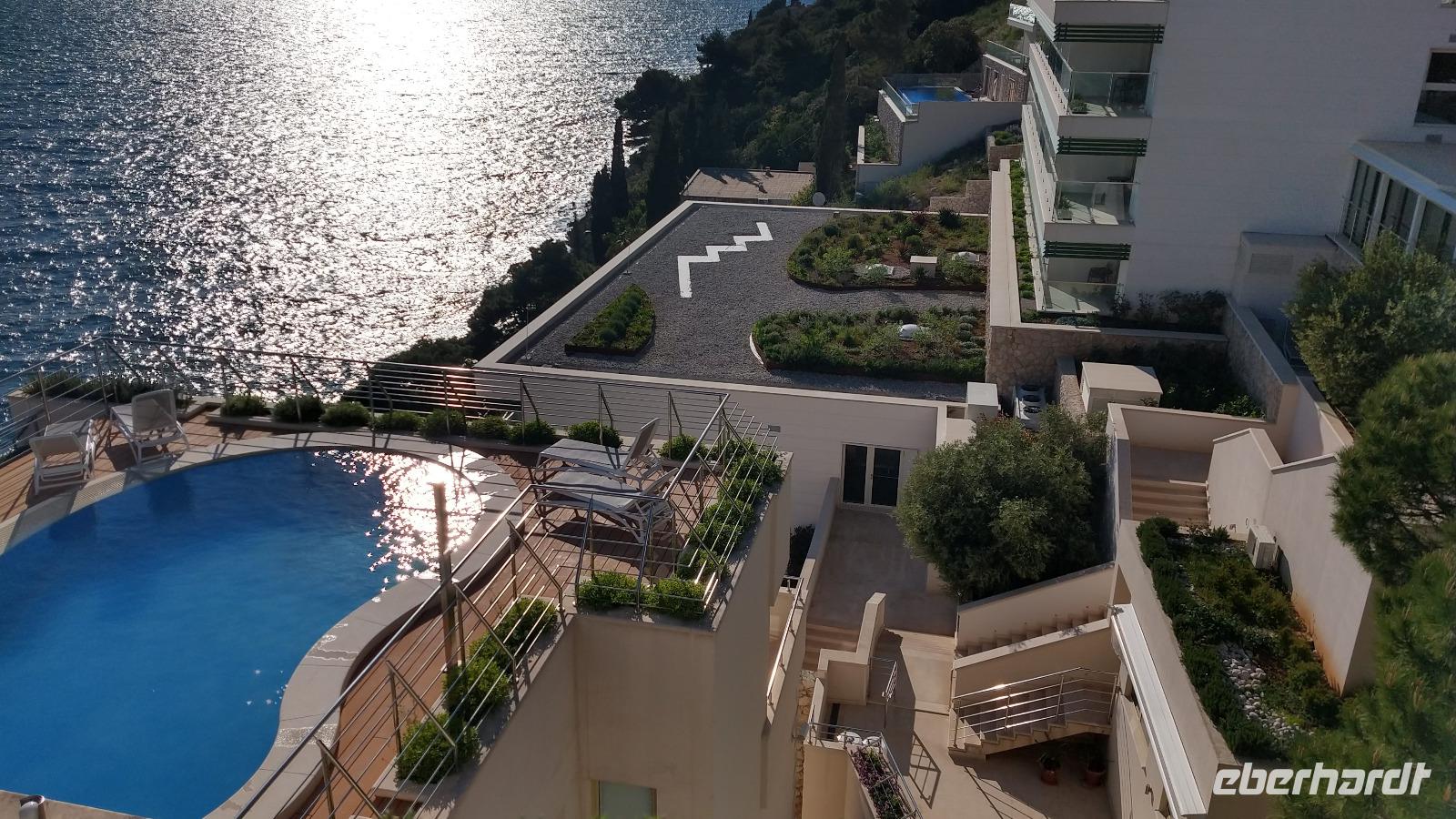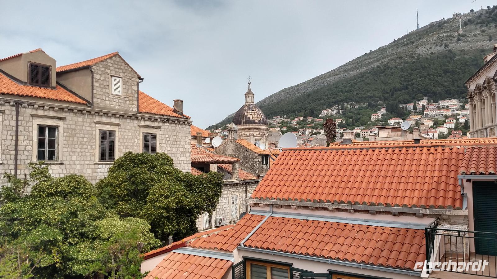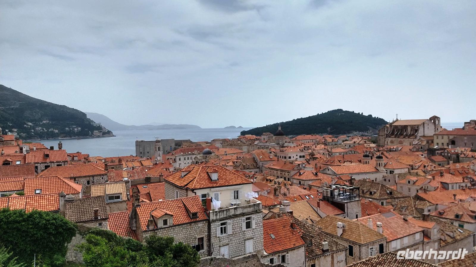14:15 Uhr erfolgt die Abholung durch den Transferbus. Von der Küstenstraße sehen wir nochmals die Altstadt, die Insel Lokrum und die Landschaft von Kornavle.