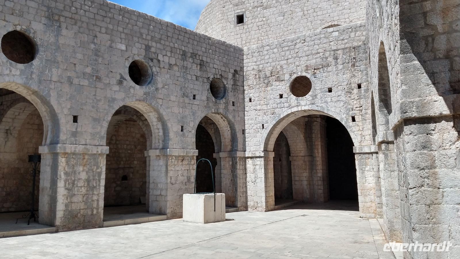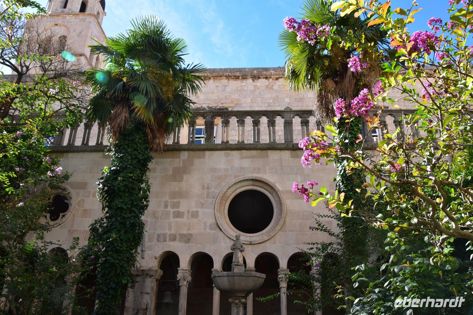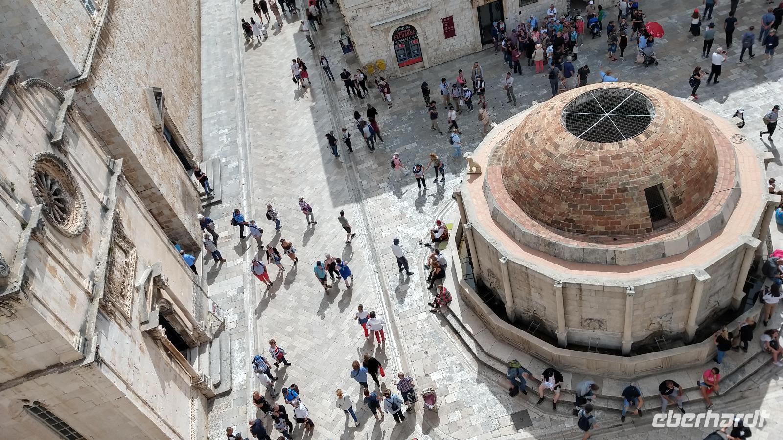 Am Onofriobrunnen, der der Trinkwasserversorgung der Stadt diente, neben dem Pile-Tor, erwartet uns am Mittag unsere örtliche Stadtführerin Antea. Gut gelaunt begrüßt sie uns herzlich und wir beginnen mit ihr den Stadtrundgang durch die Altstadt von Dubrovnik - über den Stradun in das Franziskanerkloster, mit seinem schönen Kreuzgang und der Apotheke. Dann zum Platz vor der Kirche des Heiligen Blasius mit dem Roland, dem Sponza-Palast und dem Uhrturm. Weiter zum Marktplatz und der Spanischen Treppe unter dem Jesuitenkloster. Am Altstadthafen
