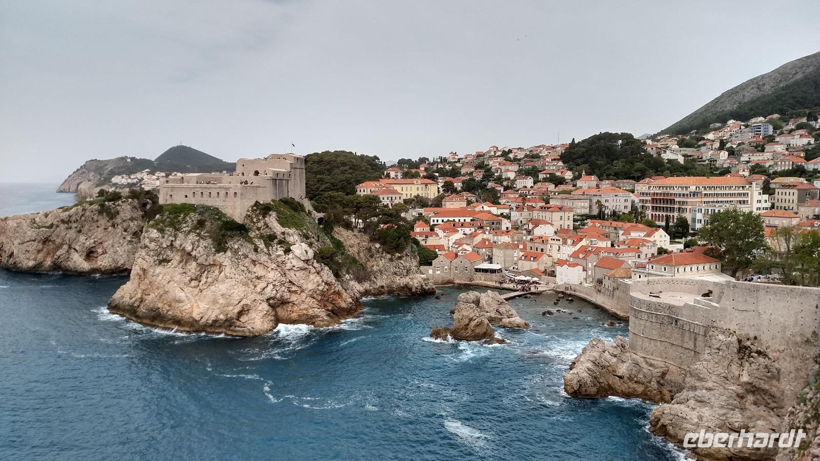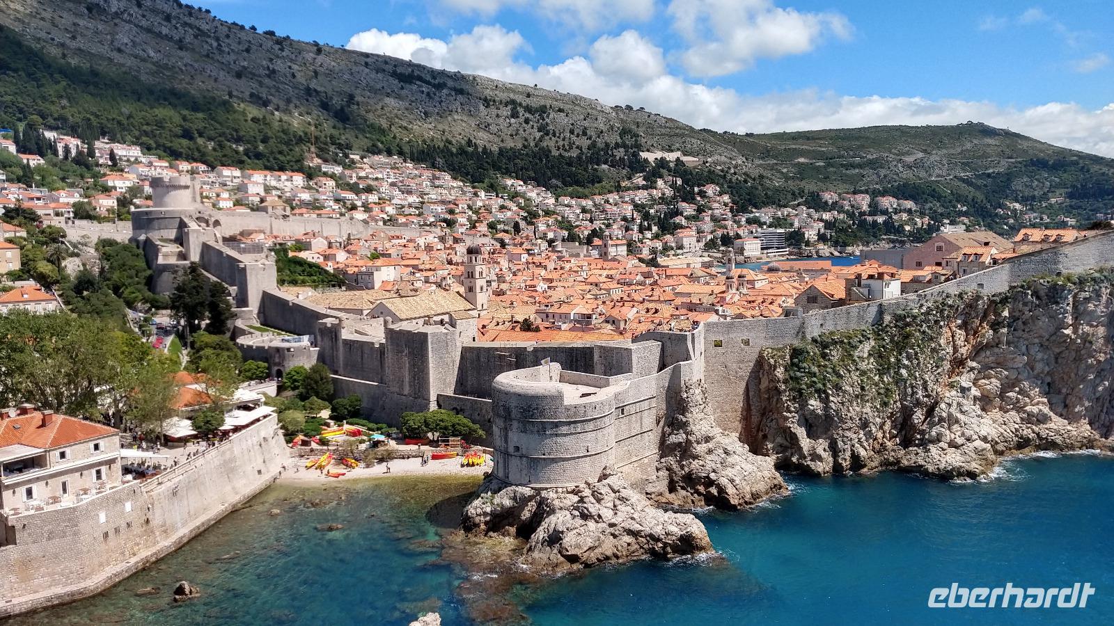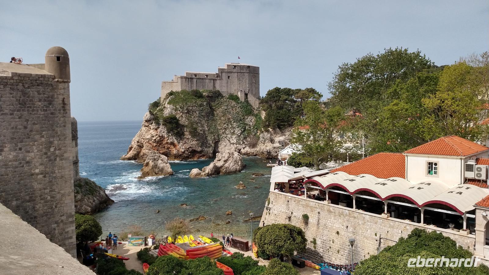 den Pool, den Strand oder das Wellnessangebot im Hotel zu nutzen. In der Stadt ist heute internationaler Dubrovnik-Marathon. Dadurch sind die Hauptstraßen gesperrt und der Busverkehr eingeschränkt. Die mächtige Festung Fort Lovrijenac vor der Altstadt erklimmen wir später trotzdem. Nicht nur weil sie Kulisse für die Game of Thrones Saga war und der Thronsitz von Kingdom Landing, sondern weil man von hier einen herrlichen Ausblick auf die Altstadt und die bergige Küstenlandschaft mit ihren Inseln hat.
