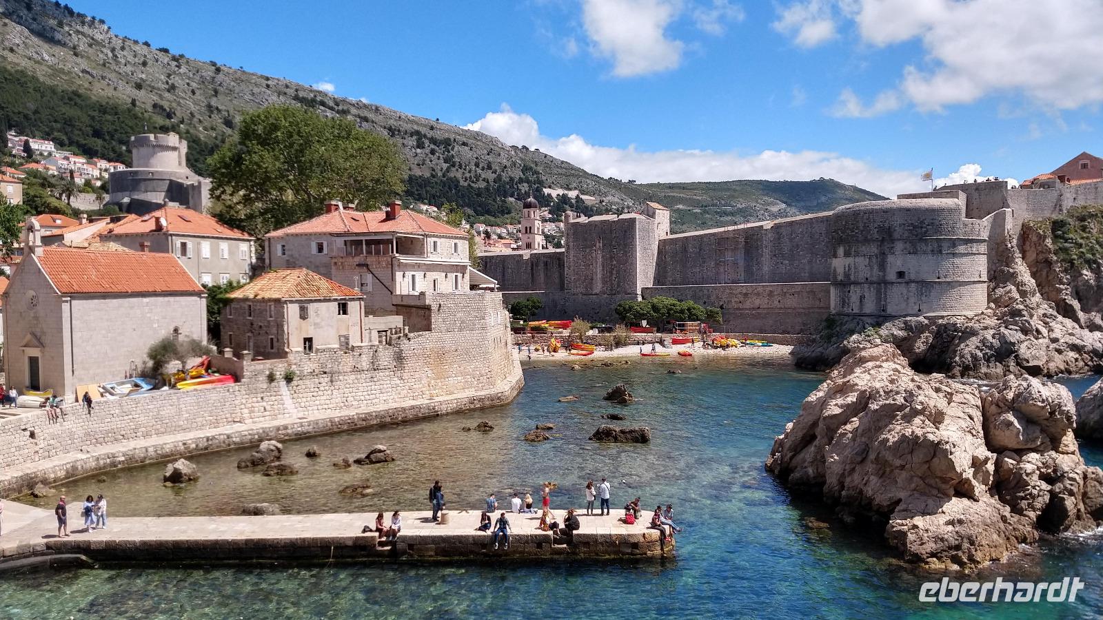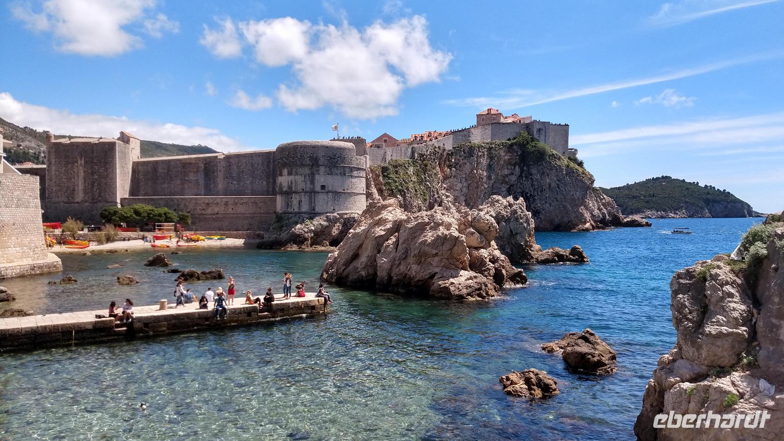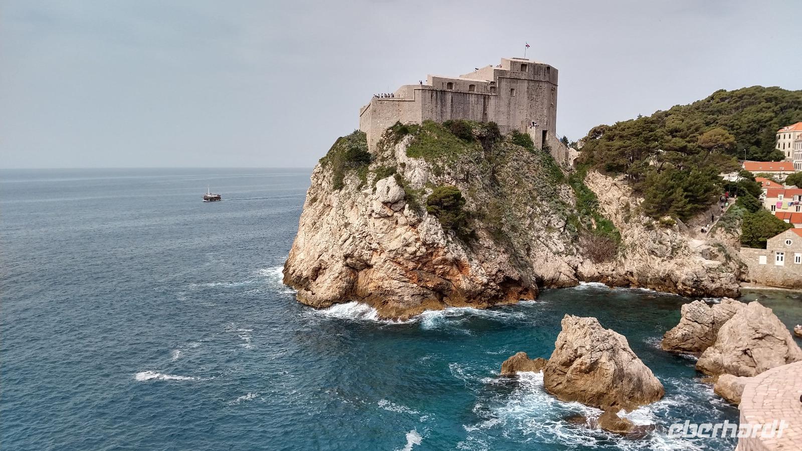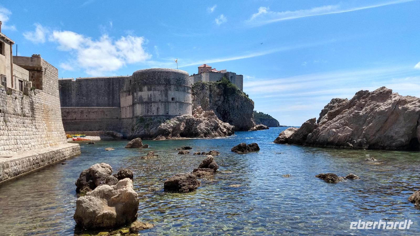 den Pool, den Strand oder das Wellnessangebot im Hotel zu nutzen. In der Stadt ist heute internationaler Dubrovnik-Marathon. Dadurch sind die Hauptstraßen gesperrt und der Busverkehr eingeschränkt. Die mächtige Festung Fort Lovrijenac vor der Altstadt erklimmen wir später trotzdem. Nicht nur weil sie Kulisse für die Game of Thrones Saga war und der Thronsitz von Kingdom Landing, sondern weil man von hier einen herrlichen Ausblick auf die Altstadt und die bergige Küstenlandschaft mit ihren Inseln hat.