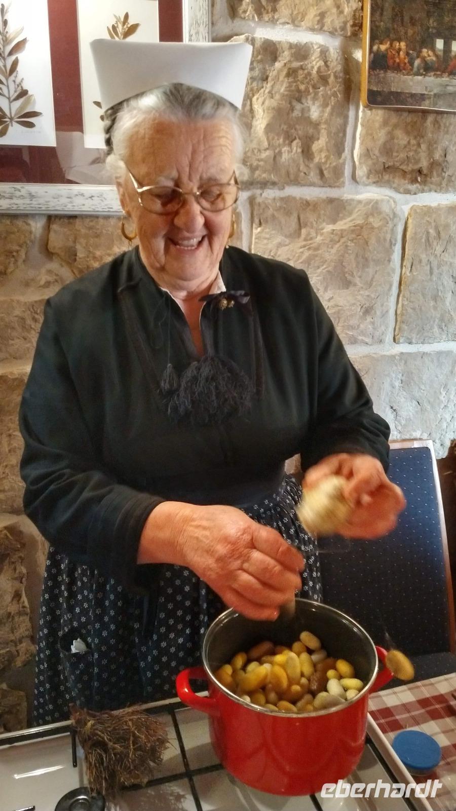 Am Abend holt uns der Transfer am Hotel zu einem Ausflug in das Dorf Komaj-Cilipi ab. Der Ort liegt malerisch in den Zypressenwäldern der Region Konavle. Hier begrüßt uns die kroatische Gastgeberfamilie in ihrem Haus. Wir bewundern den schönen Garten, blühendes Löwenmaul an den Mauern. Mit Getränken und landestypischen Köstlichkeiten werden wir herzlich willkommen geheißen. Wir erfahren viel Neues über verschiedene landwirtschaftliche Produkte der Region, können natürlich auch viele regionale Produkte und Liköre probieren und erhalten schließlich noch einen hochinteressanten Vortrag inklusive einer Vorführung der traditionellen Seidenherstellung und Stickerei der Region Kornavle.