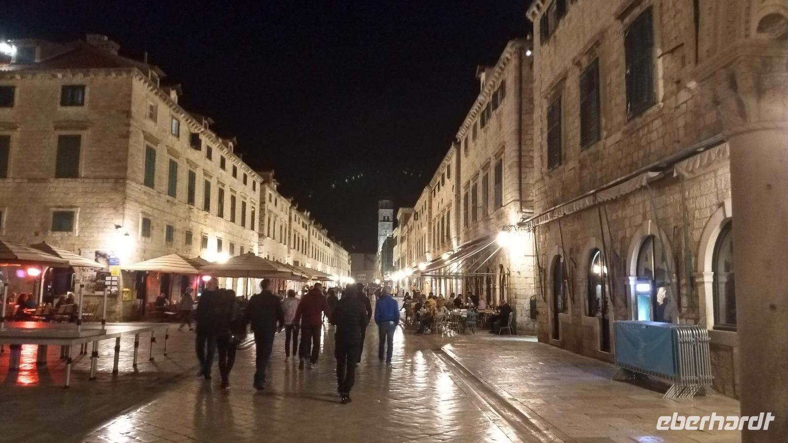 spazieren wir hinunter zum Stradun, nehmen nochmals der Flair der abendlichen Stadt in uns auf. Durch das Plocetor gelangen wir zurück und unser Transferbus bringt uns sicher zu unserer letzen Übernachtung ins Hotel.