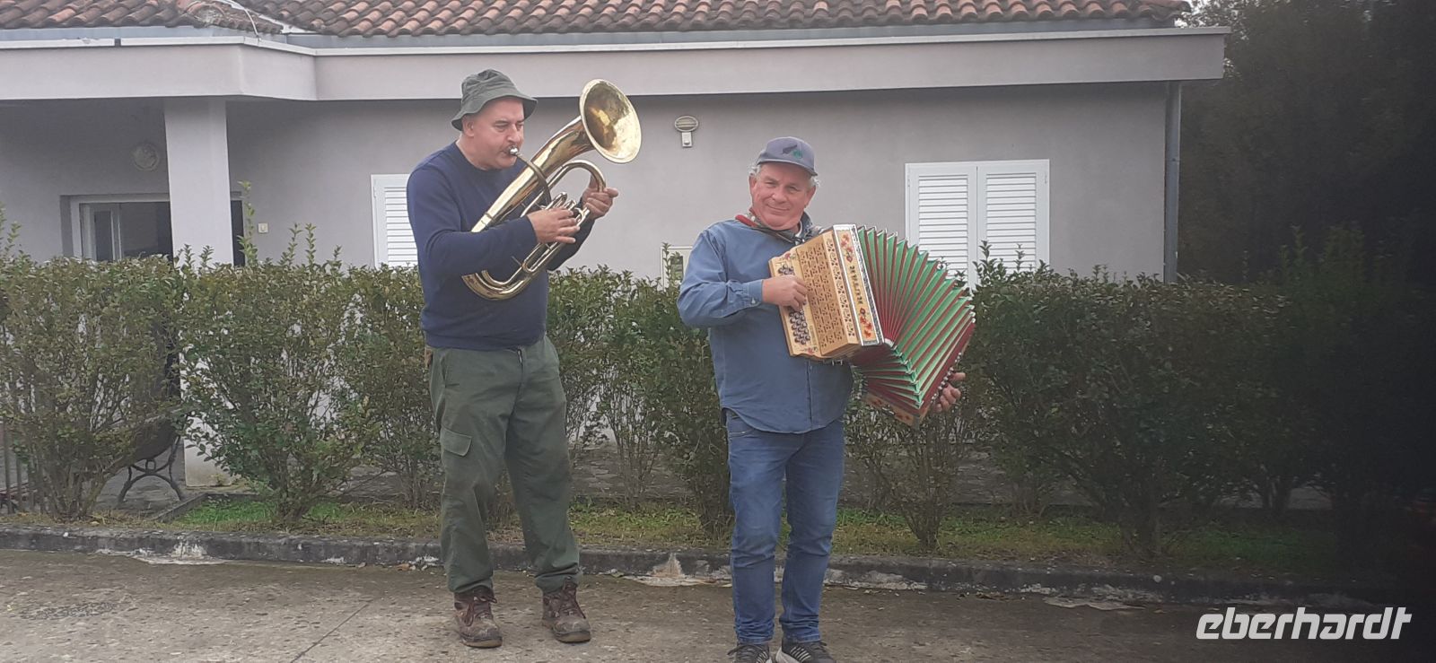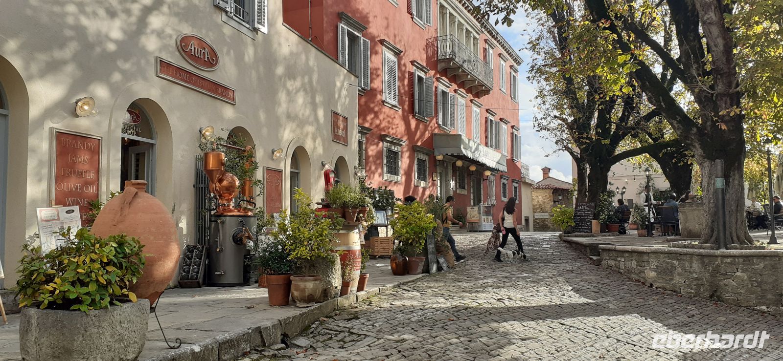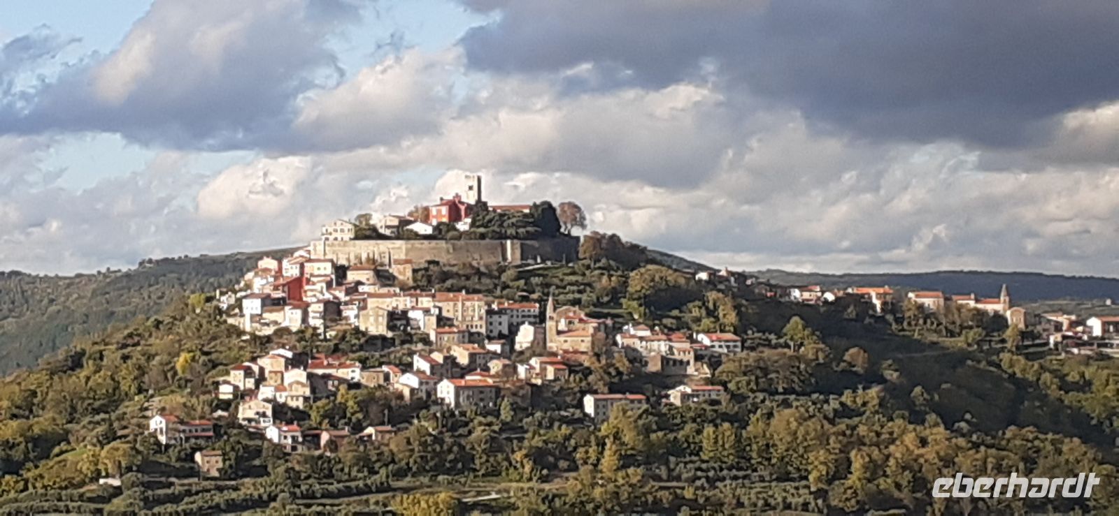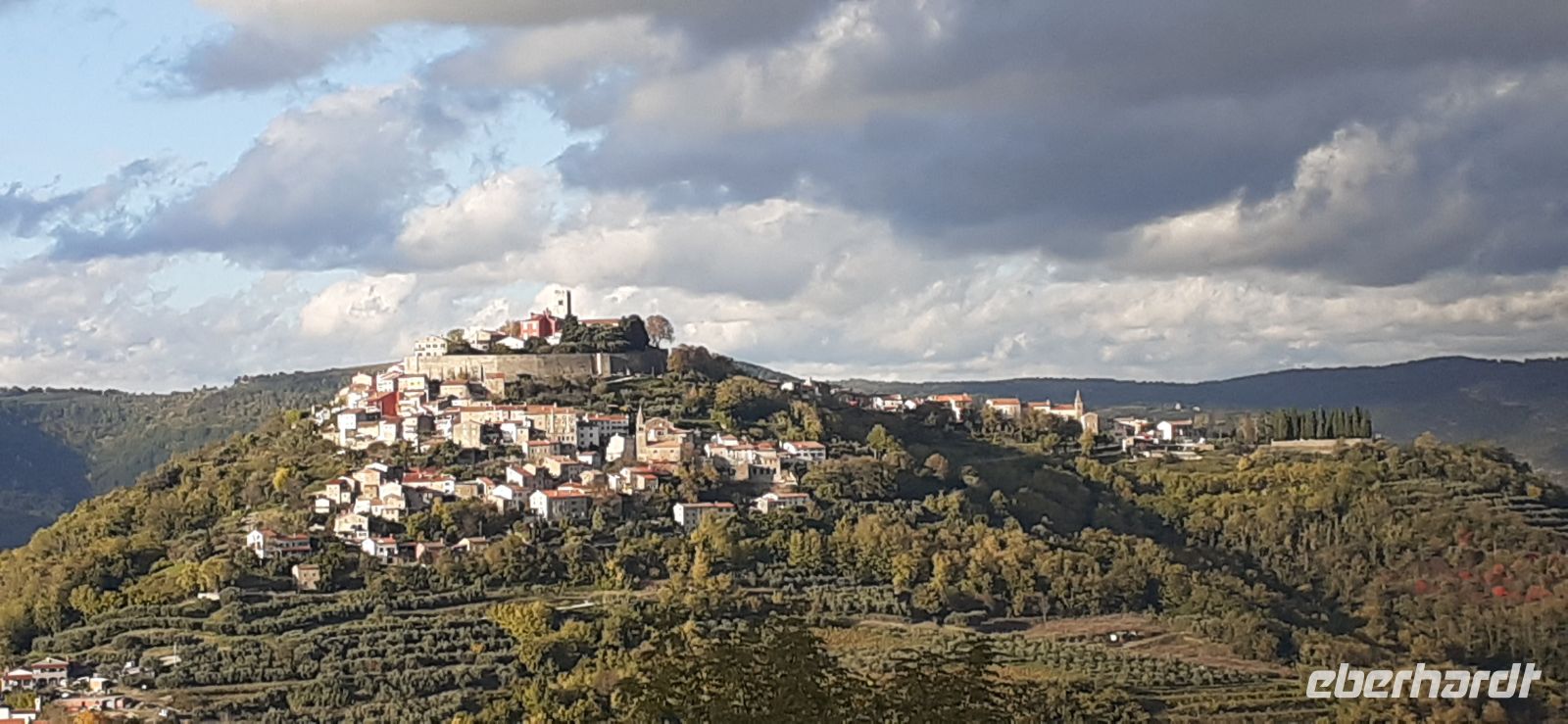 Am Morgen starteten wir nach Buzet. Durch die Berge mit schönen Blicken über die Täler erreichten wir Buzet wo wir mit Musik und Schnaps begrüßt wurden. Miro erklärte einiges über die schwarzen und weißen Trüffel. Für die Trüffelsuche benötigt man eine Lizenz. Dafür werden auch spezielle Hunde ausgebildet. Gemeinsam ging es in den Wald, um Trüffel zu suchen. Anschließend probierten wir einen Brotaufstrich mit Trüffel und Kekse. Natürlich wurden wir wieder Musik verabschiedet. Auf der Rückfahrt legten wir noch einen Stopp in Motovun. Ein kleiner Bus brachte uns in die kleine Altstadt. Uns erwartete ein schöner Blick in die Umgebung. Wir bummelten durch den Ort, setzten uns in Restaurant oder liefen entlang der alten Stadtmauer. Nach einem gemeinsamen Rundgang fuhren wir wieder nach unten.