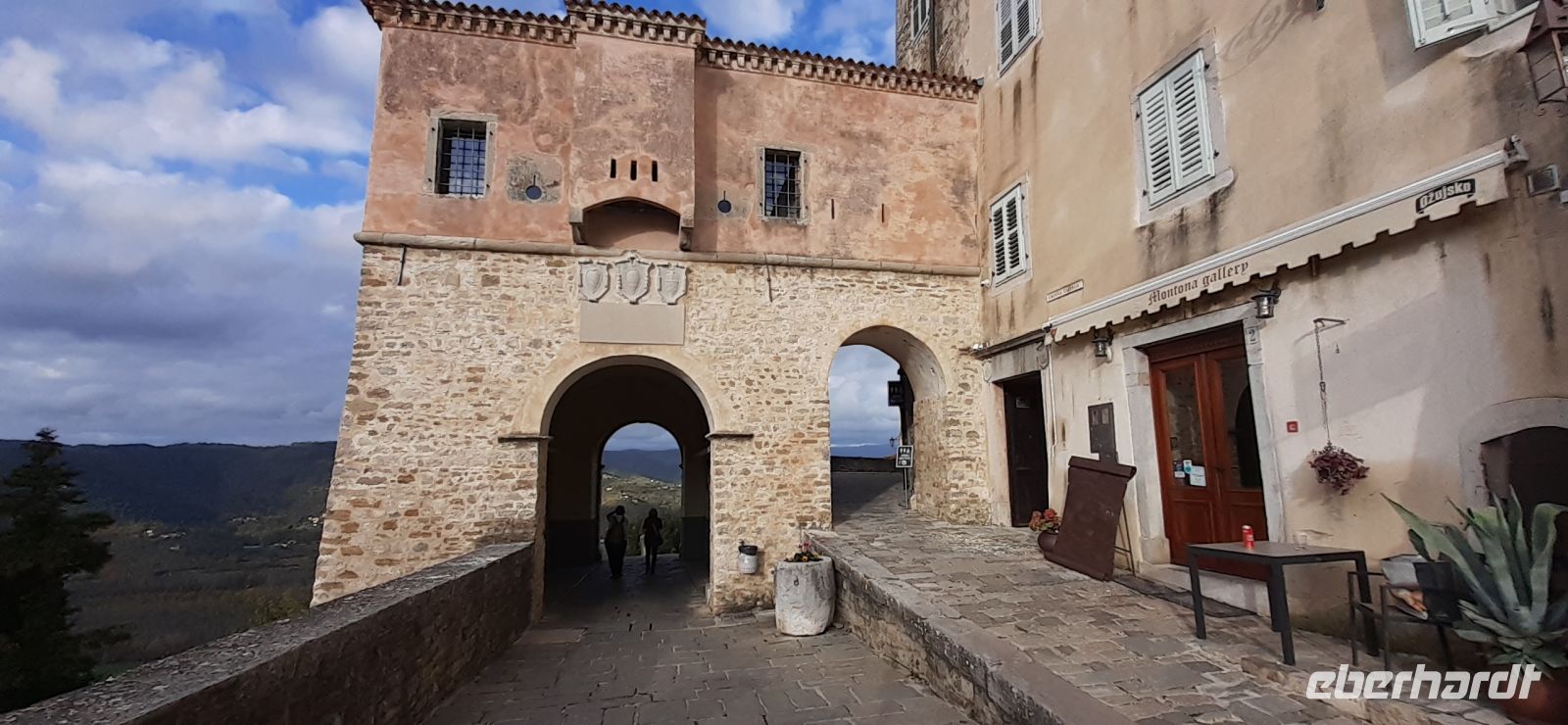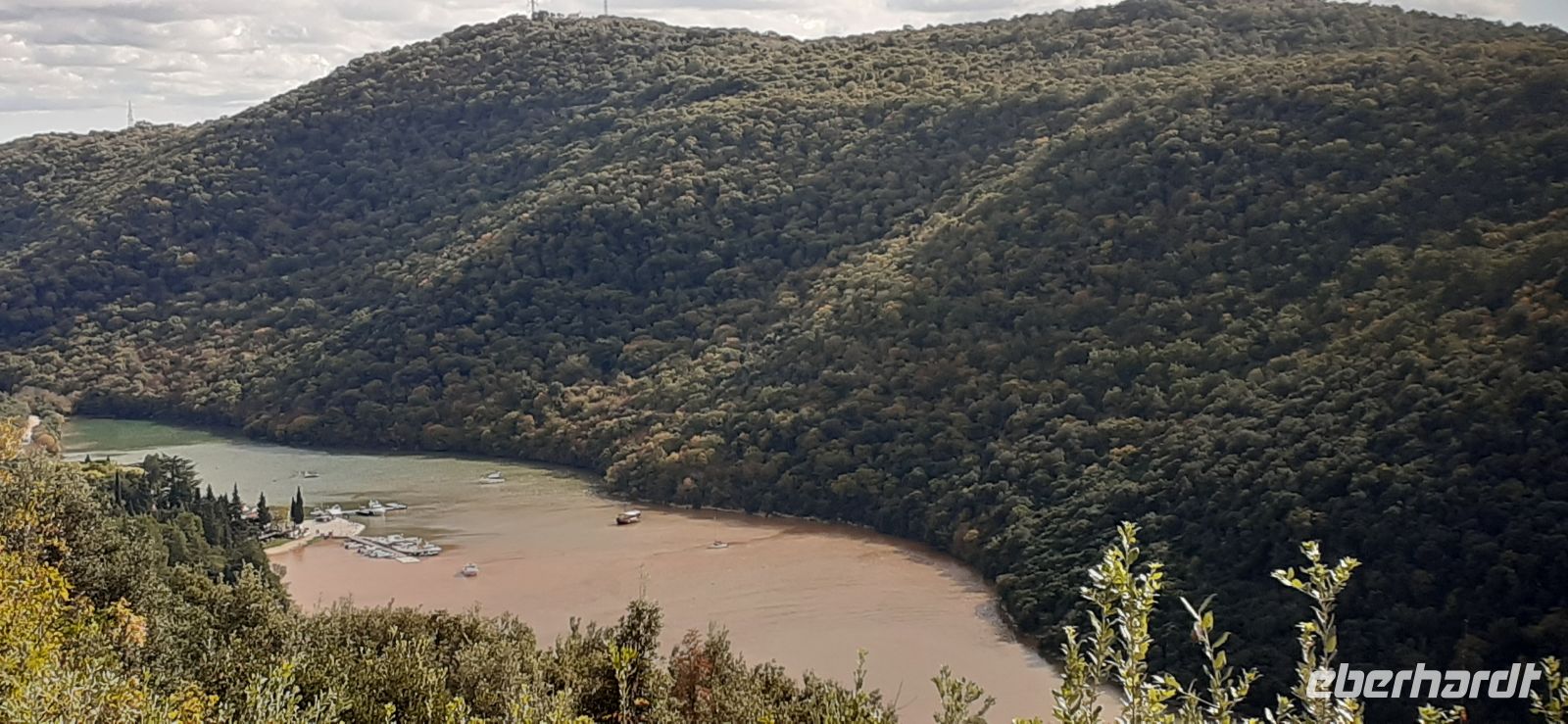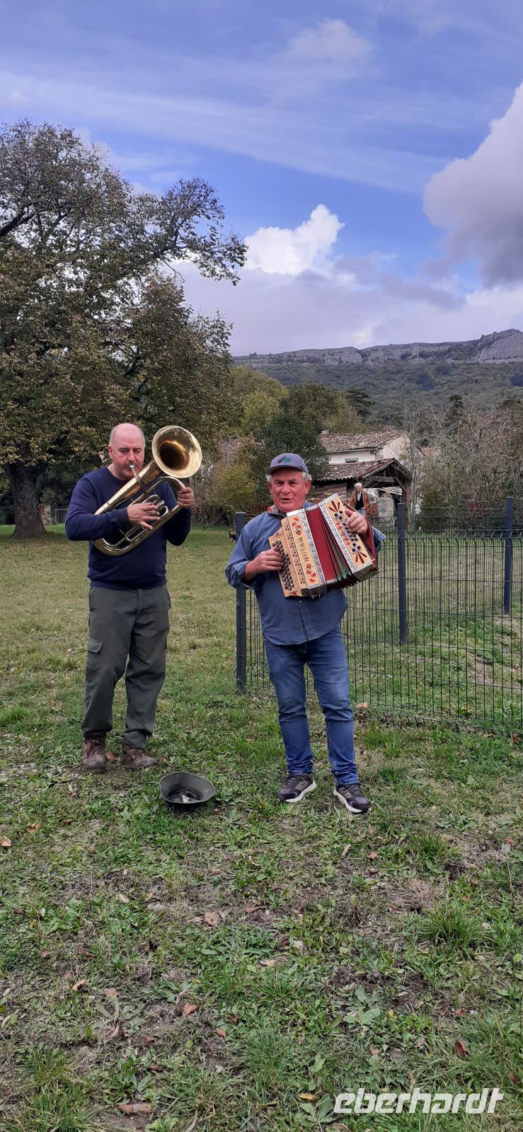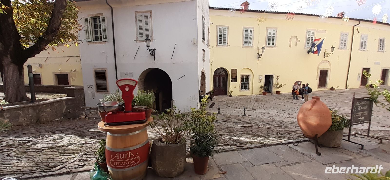Am Morgen starteten wir nach Buzet. Durch die Berge mit schönen Blicken über die Täler erreichten wir Buzet wo wir mit Musik und Schnaps begrüßt wurden. Miro erklärte einiges über die schwarzen und weißen Trüffel. Für die Trüffelsuche benötigt man eine Lizenz. Dafür werden auch spezielle Hunde ausgebildet. Gemeinsam ging es in den Wald, um Trüffel zu suchen. Anschließend probierten wir einen Brotaufstrich mit Trüffel und Kekse. Natürlich wurden wir wieder Musik verabschiedet. Auf der Rückfahrt legten wir noch einen Stopp in Motovun. Ein kleiner Bus brachte uns in die kleine Altstadt. Uns erwartete ein schöner Blick in die Umgebung. Wir bummelten durch den Ort, setzten uns in Restaurant oder liefen entlang der alten Stadtmauer. Nach einem gemeinsamen Rundgang fuhren wir wieder nach unten.