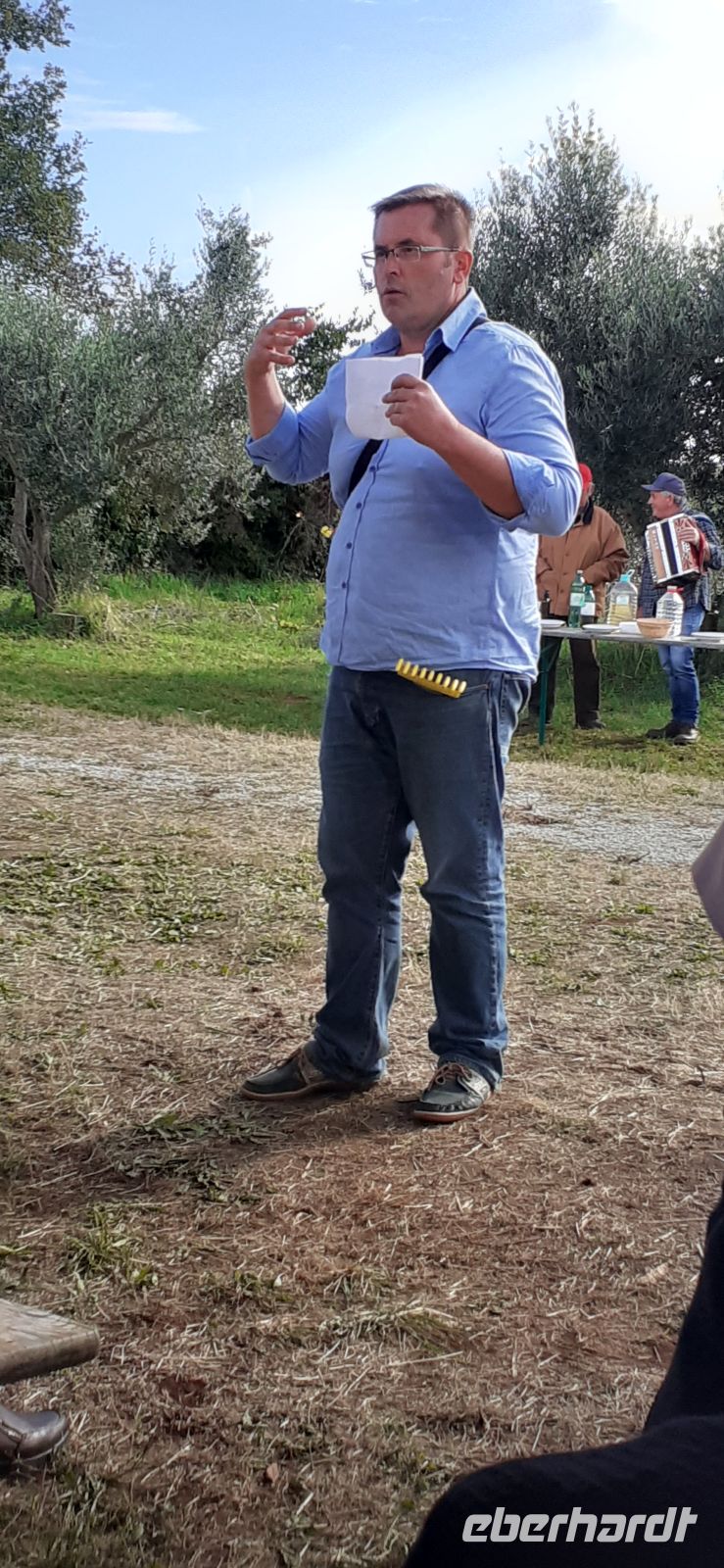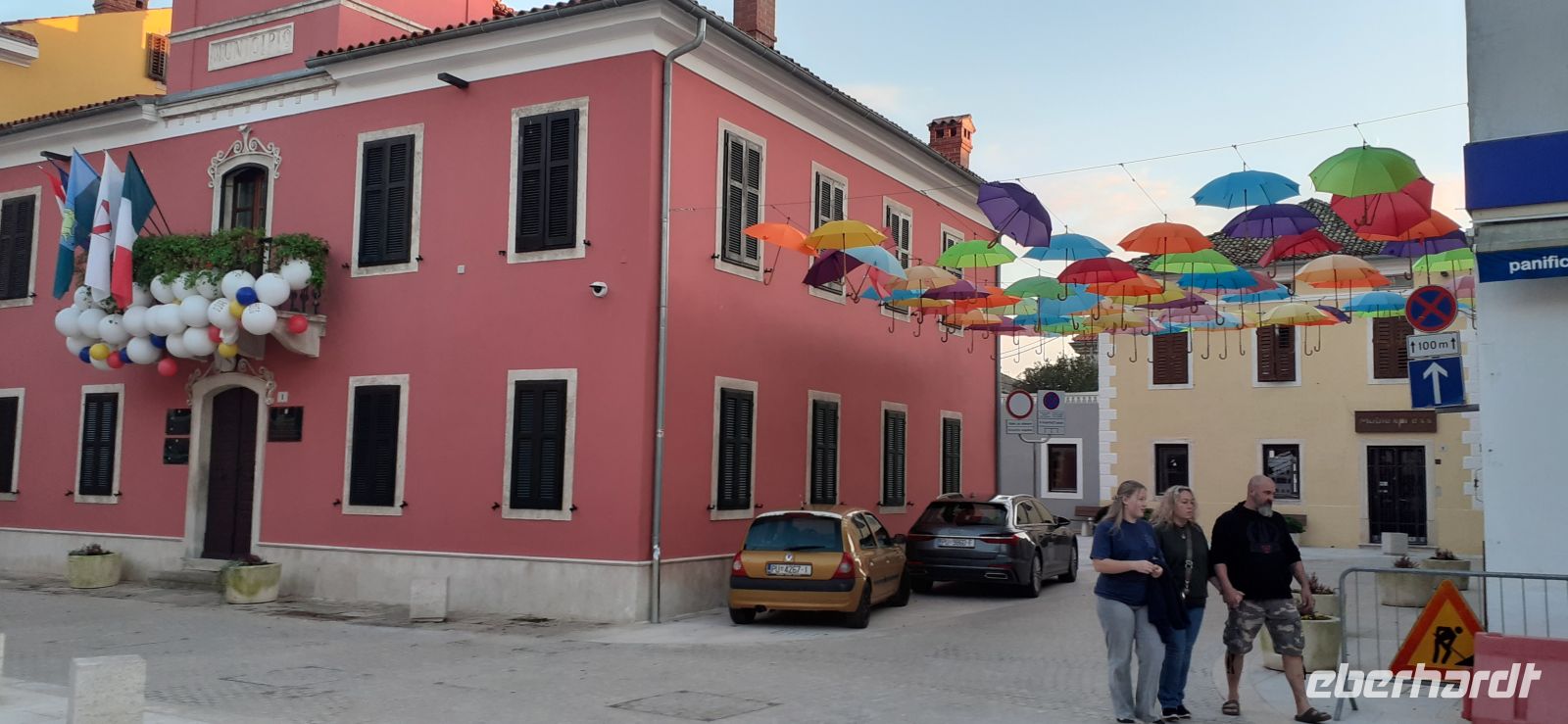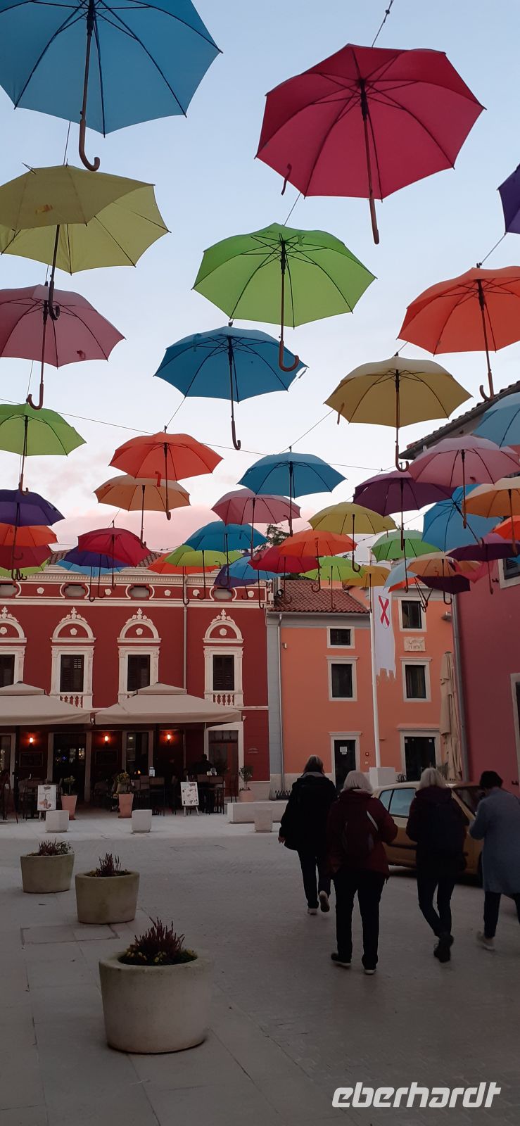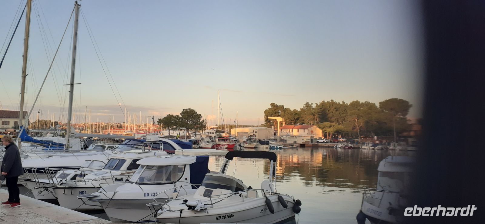Auf zur Olivenernte. Wieder fuhren wir Landstraße, um mehr von der Landschaft zu sehen, zu einer Olivenölmühle. Miro erklärte uns die Abläufe der Ölgewinnung. In diese Mühle bringen die Bauern ihre Oliven dort werden sie verarbeitet und in Kanister abgefüllt. Anschließend fuhren wir in einen Olivenhain wo wir mit Musik und Schnaps begrüßt wurden. Wir erfuhren wissenswertes über die Olivenbäume und die Ernte. Dann durften wir selbst handanlegen. Mit einem Rechen machten wir uns an die Arbeit. Anschließend wurde eine Oliven Königin und ein Oliven König gewählt. Es war lustig. Zum Mittagessen in einem Restaurant wurden typische Gerichte gereicht. Zum Abschluss des Tages schauten wir uns Novigrad an. Wir bummelten durch das Fischerdorf das mit bunten Schirmen gespickt ist. Ein schöner Sonnenuntergang beschloss den Tag. Entlang der Küste erreichten wir unser Hotel.