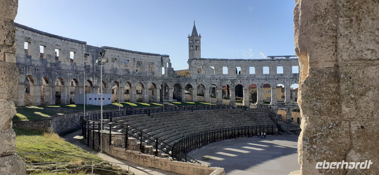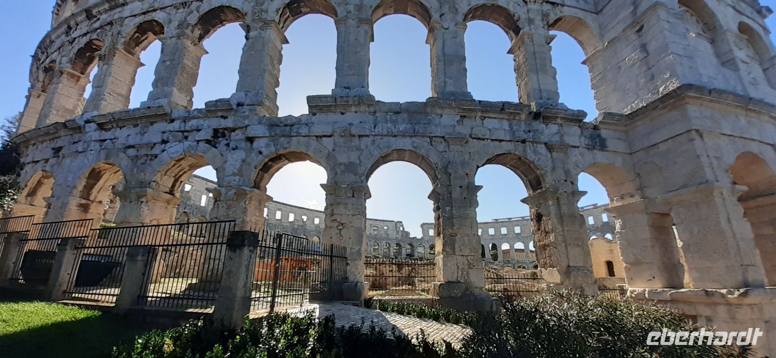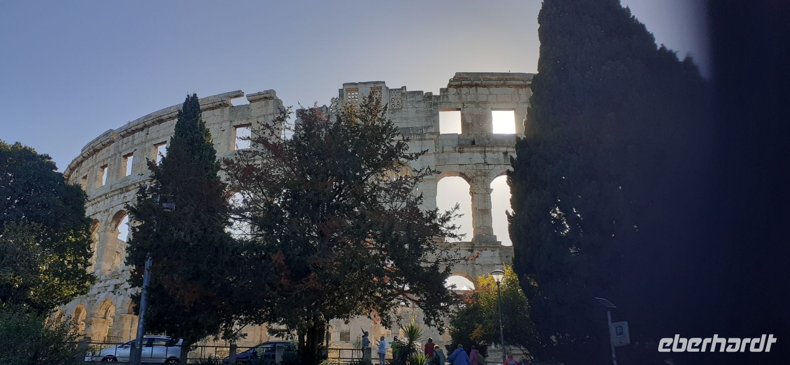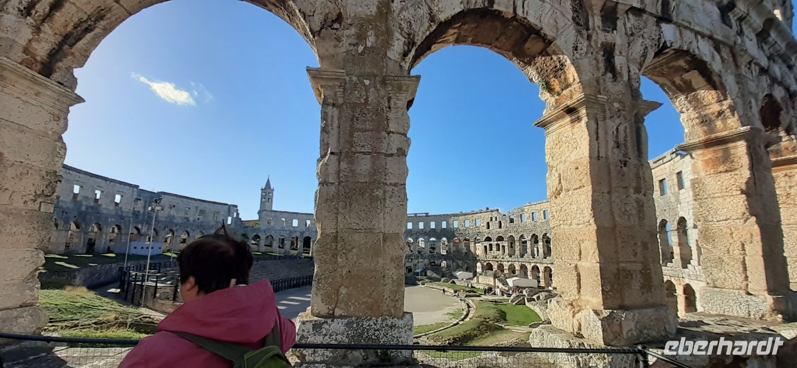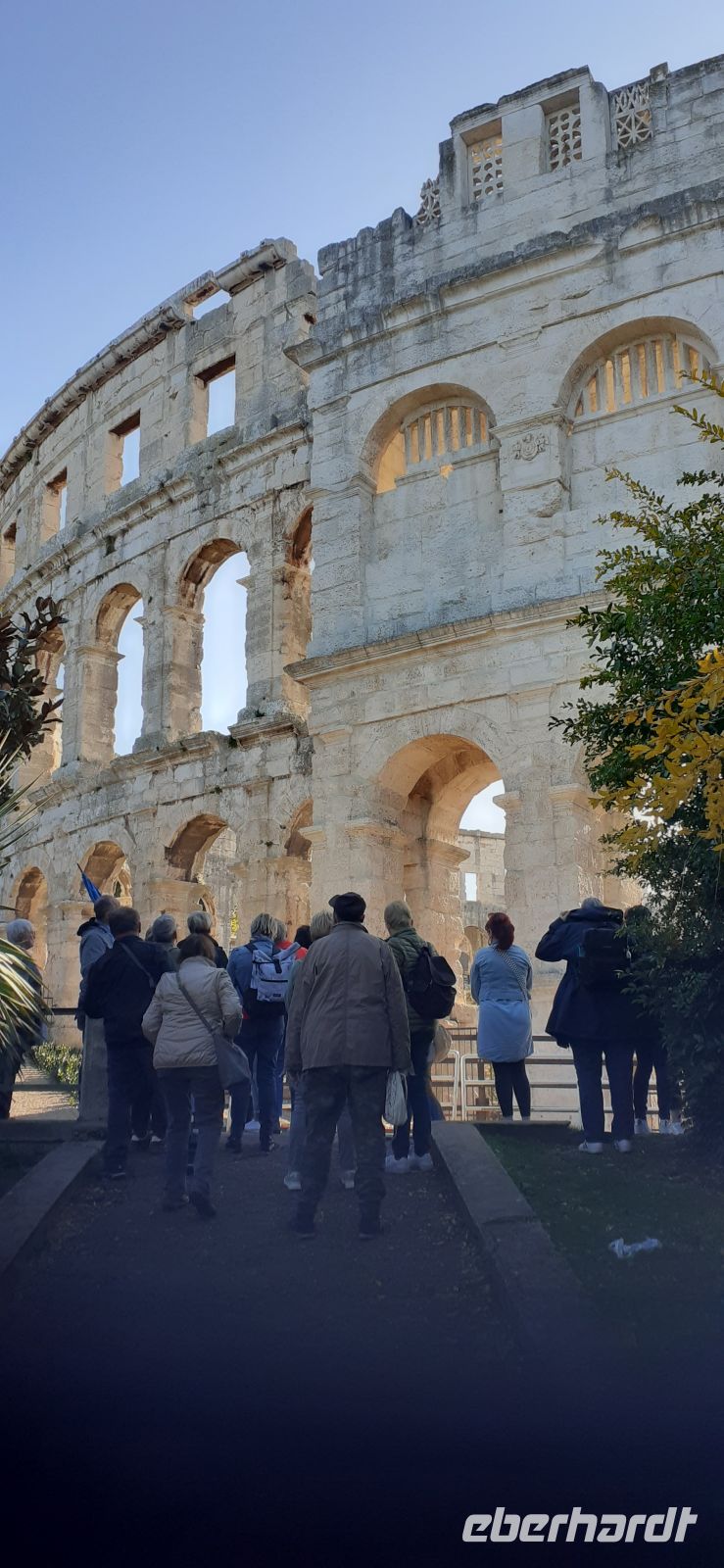Unser Ausflug führte uns zuerst nach Pula. Bei Sonnenschein unternahmen wir einen Stadtrundgang, der am römischen Amphitheater begann. Neben der Arena sahen wir auch das antike Forum, der Triumphbogen, das Goldene Tor und die Befestigungsanlage. nach der Freizeit brachte uns der Bus nach Rovinj auch das kroatische Venedig bezeichnet. Die Stadt befindet sich auf einer Halbinsel. Darüber thront das Wahrzeichen der Stadt - die Kirche der heiligen Euphemia mit ihrem Glockenturm. Die Altstadt besticht mit Ihren verwinkelten Gassen und Ihren Bauten. Am Hafen ließen wir den Tag ausklingen.