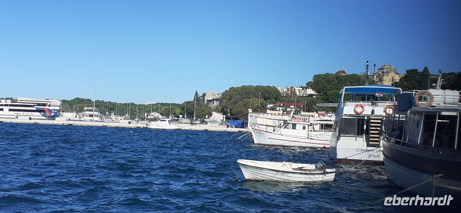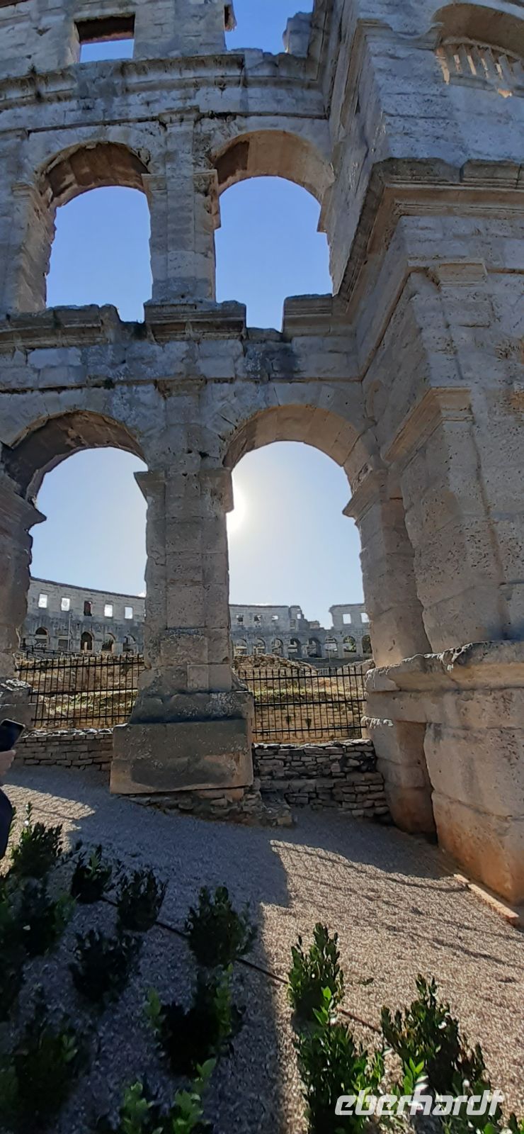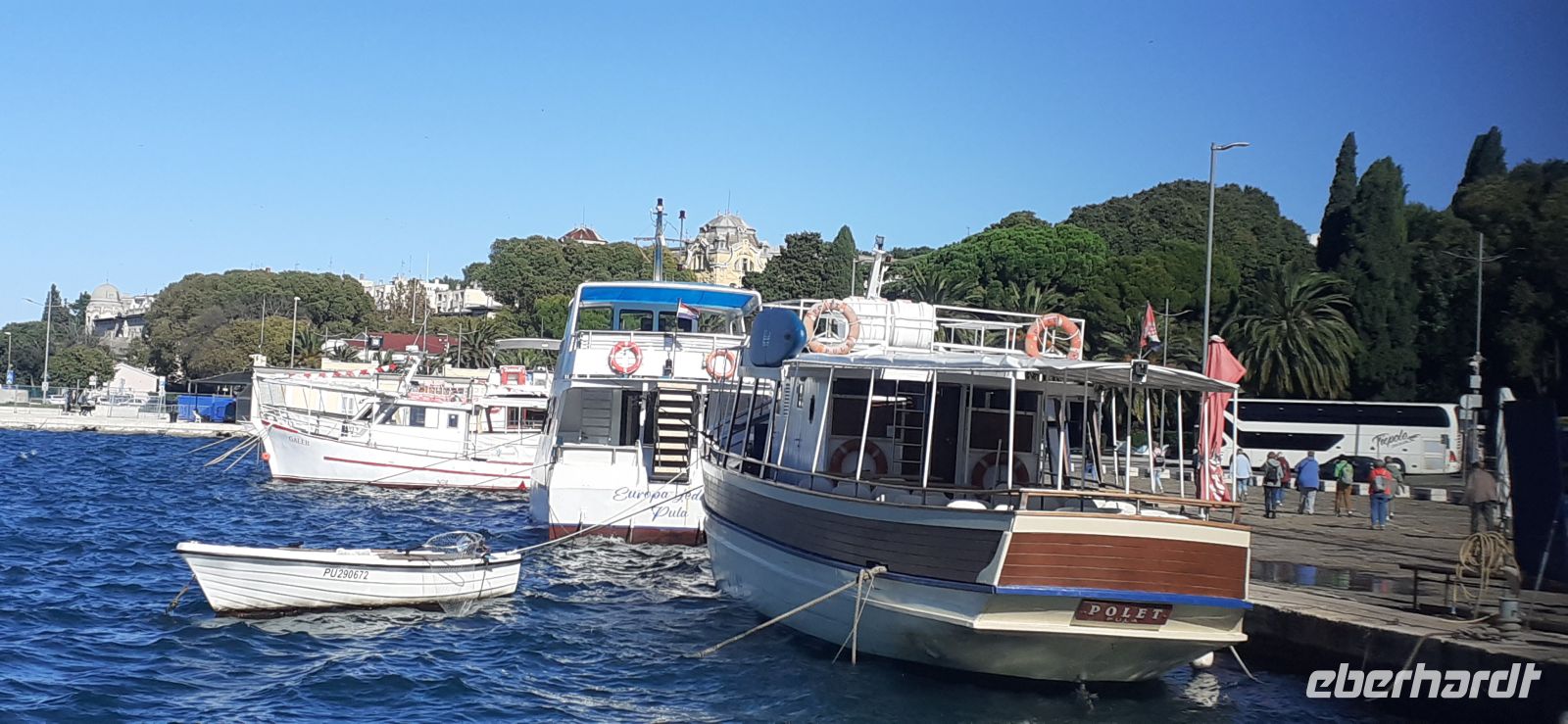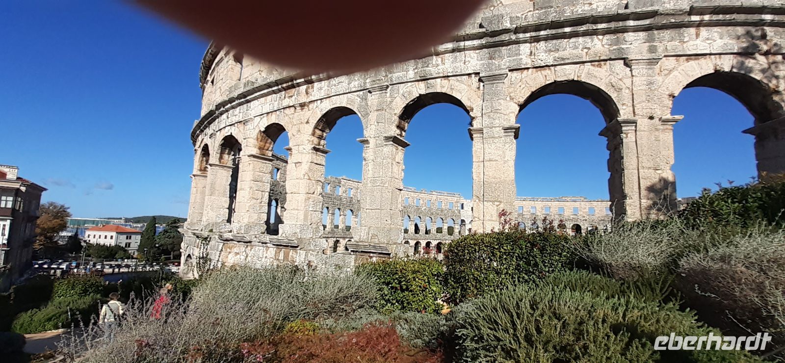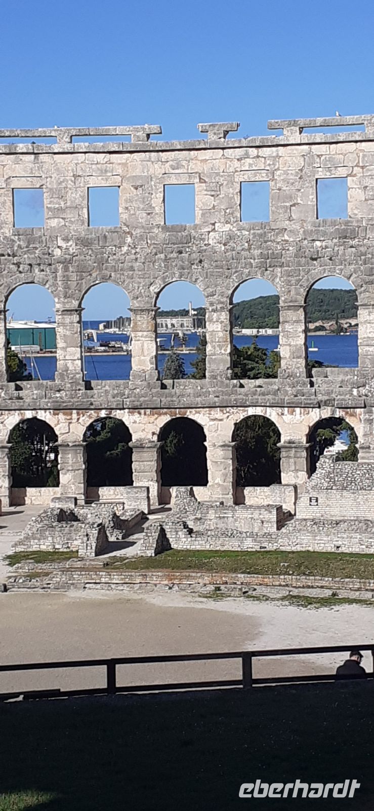 Unser Ausflug führte uns zuerst nach Pula. Bei Sonnenschein unternahmen wir einen Stadtrundgang, der am römischen Amphitheater begann. Neben der Arena sahen wir auch das antike Forum, der Triumphbogen, das Goldene Tor und die Befestigungsanlage. nach der Freizeit brachte uns der Bus nach Rovinj auch das kroatische Venedig bezeichnet. Die Stadt befindet sich auf einer Halbinsel. Darüber thront das Wahrzeichen der Stadt - die Kirche der heiligen Euphemia mit ihrem Glockenturm. Die Altstadt besticht mit Ihren verwinkelten Gassen und Ihren Bauten. Am Hafen ließen wir den Tag ausklingen.