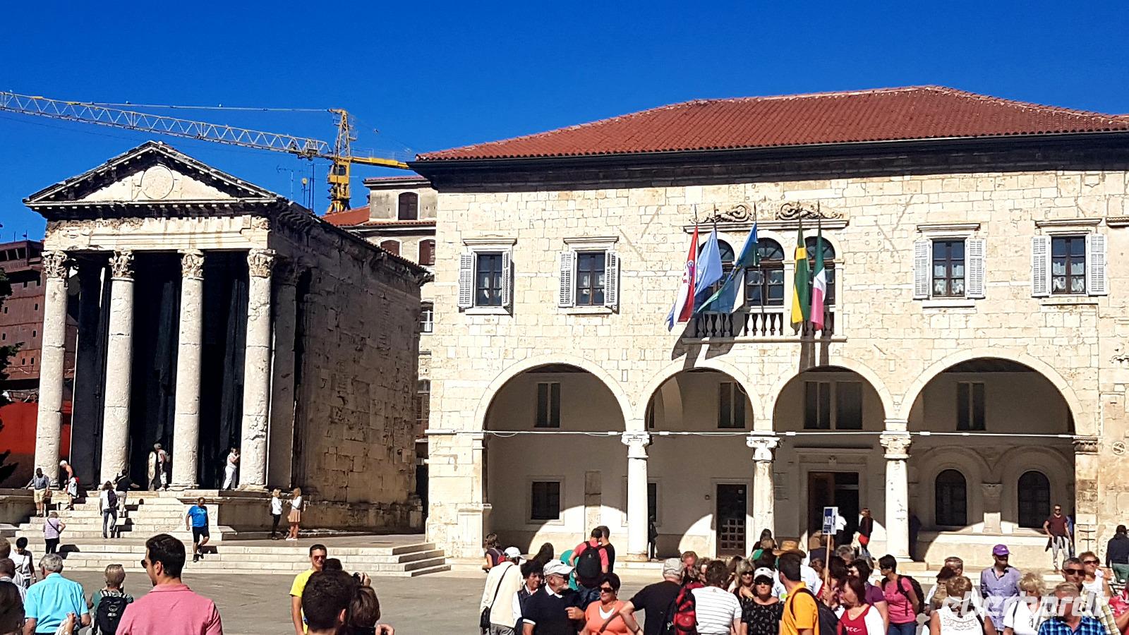 Nun geht es gemeinsam nach Pula, der größten Stadt auf der istrischen Halbinsel Kroatiens. Dort werden wir von unserem Wanderreiseleiter Veljko und Busfahrer Rino in Empfang genommen. Nach einstündiger fährt erreichen wir unser Hotel „Valamar Diamant" in Porec.