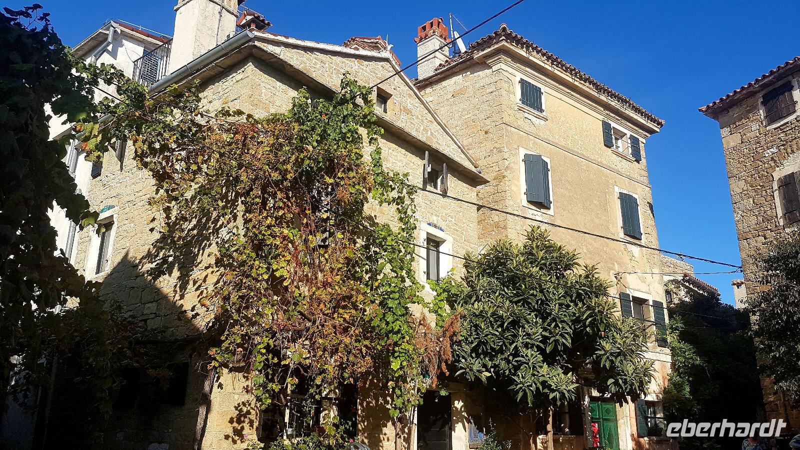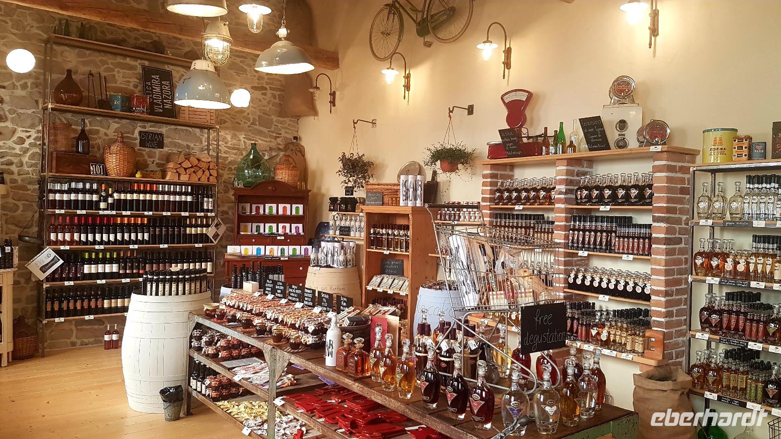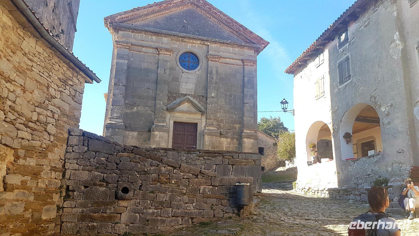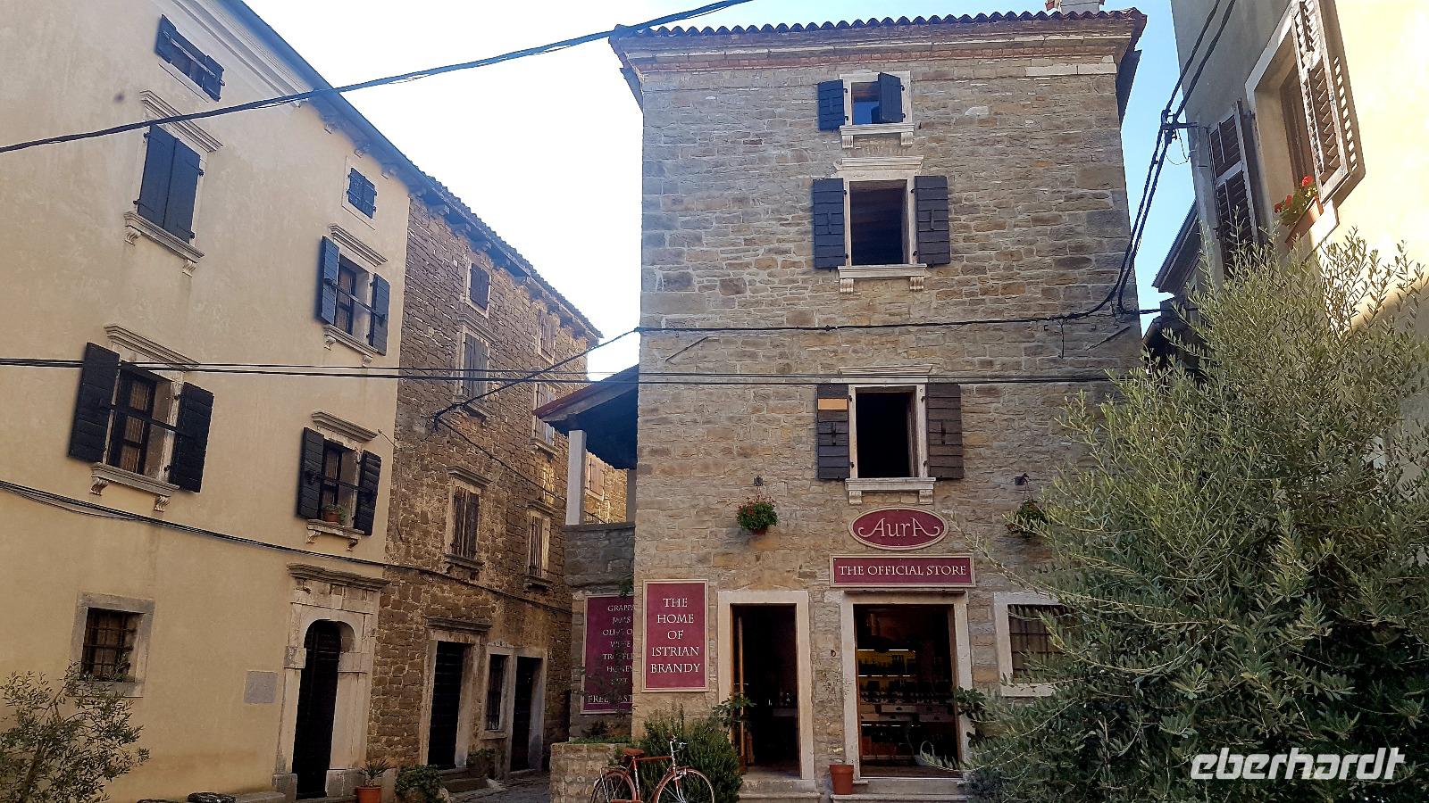 Weiter geht es in Richtung Hum, der kleinsten „Stadt" mit 30 Einwohnern. Dort angekommen wartet schon unser Busfahrer Rino mit einem Mistel Schnaps auf uns. Den haben wir uns redlich nach 12 km Wanderung verdient. Im Ort schauen wir uns um und kaufen gleich die ersten Mitbringsel für die Daheimgebliebenen. Trüffelpaste und verschiedene Schnaps- und Weinsorten sind dabei. Beschaulich geht es hier zu.