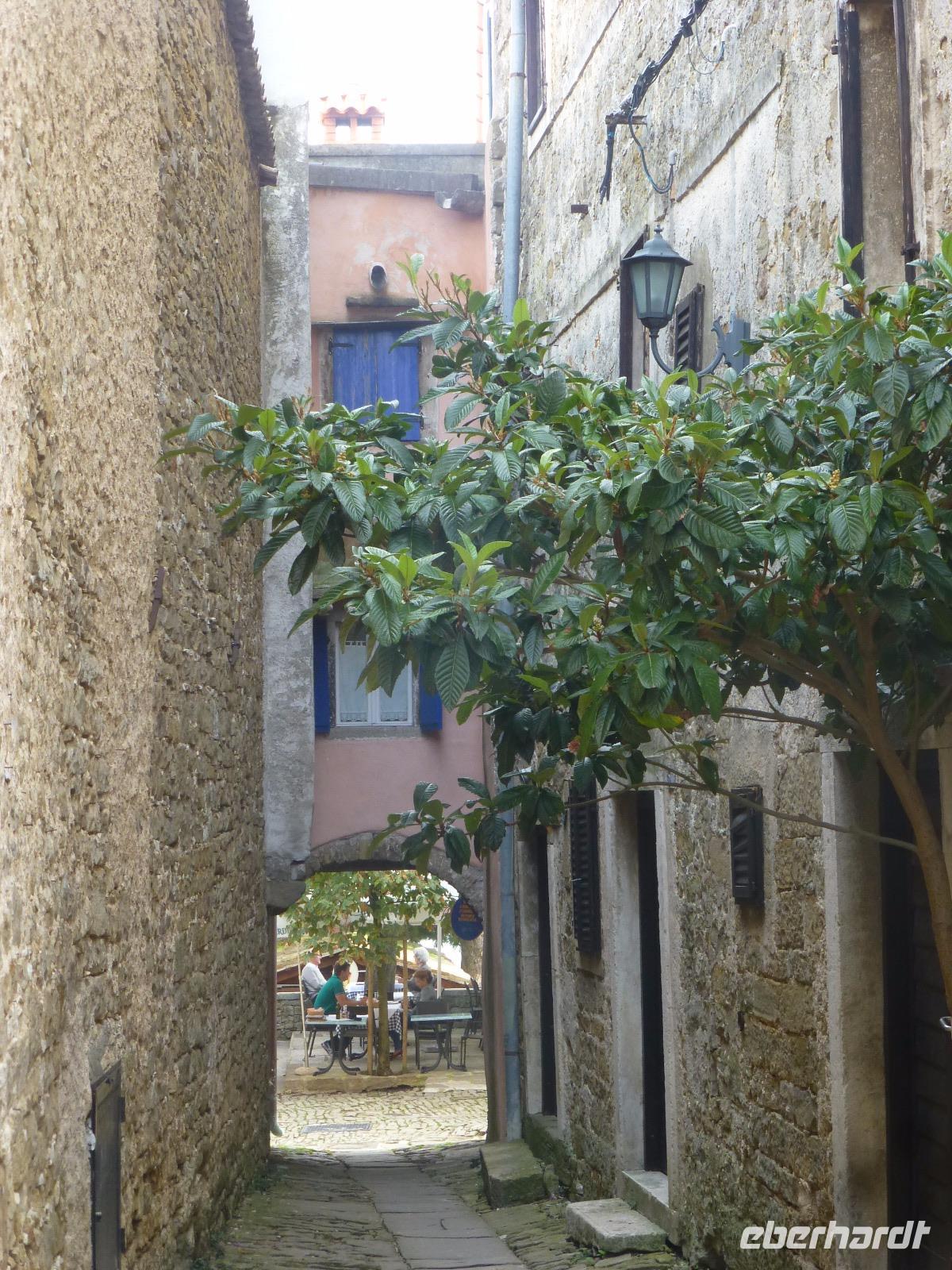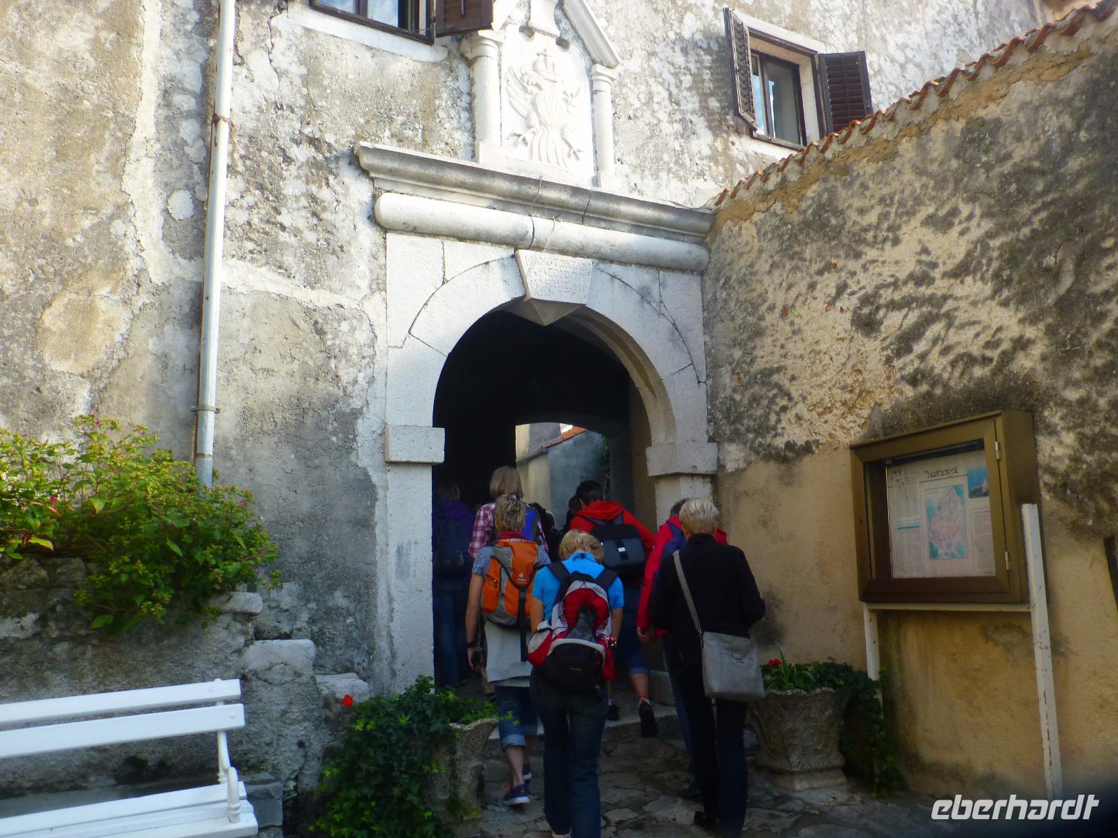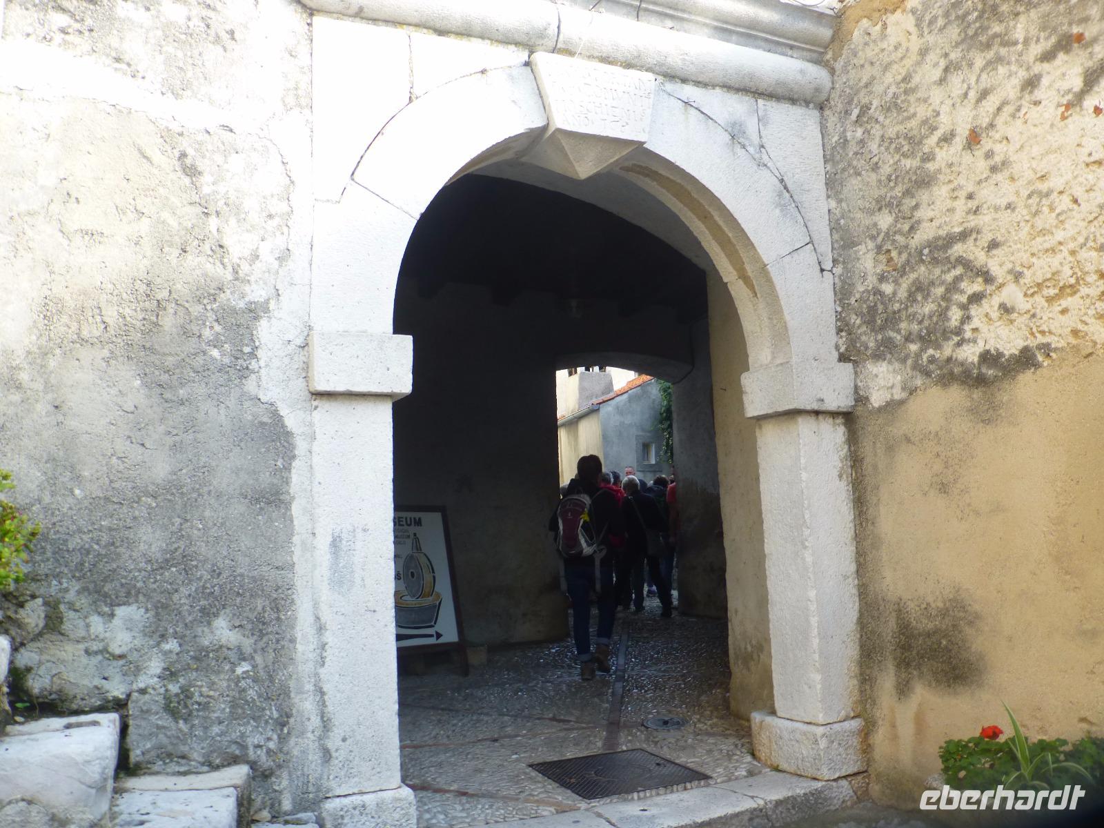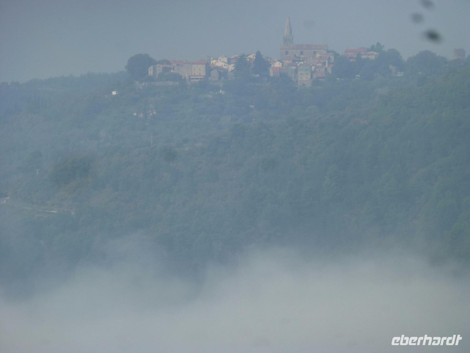 Heute führte uns die Wanderung von Oprtalj - Groznjan. Die Stadt Oprtalj ist bekannt für sein Kastanienfest dass jedes Jahr Mitte Oktober stattfindet. Dabei werden verschiedene Gerichte angeboten. Unterhalb der Stadt begann der Wanderweg auf der Strecke des ehemaligen Parenzana Eisenbahnstrecke die Triest mit Porec verband. Schon 1935 fuhr der letzte Zug auf dieser Strecke. Entlang des Schotterweges und durch einige Tunnel, hatten wir nach dem sich der Nebel verzogen hatte, einen schönen Blick in das Tal. Weinhänge und Olivenhaine begleiteten unseren Weg. Schon von weitem war die malerische Stadt Groznjan zu sehen. Die kleine Künstlerstadt besticht mit ihren vielen Galerien und kleinen Geschäften. Die engen Gassen der Altstadt luden zum Bummeln ein. Auf dem Weg in das Hotel legten wir noch einen Stopp ein. Wir besuchten das Weingut Degassi. Nach einer Führung durch den Keller verkosteten wir 5 verschiedene Weinsorten. Dabei verkosteten wir auch istrische Spezialitäten, Salami, Schinken und Käse. Ein schöner Abschluss des Tages.