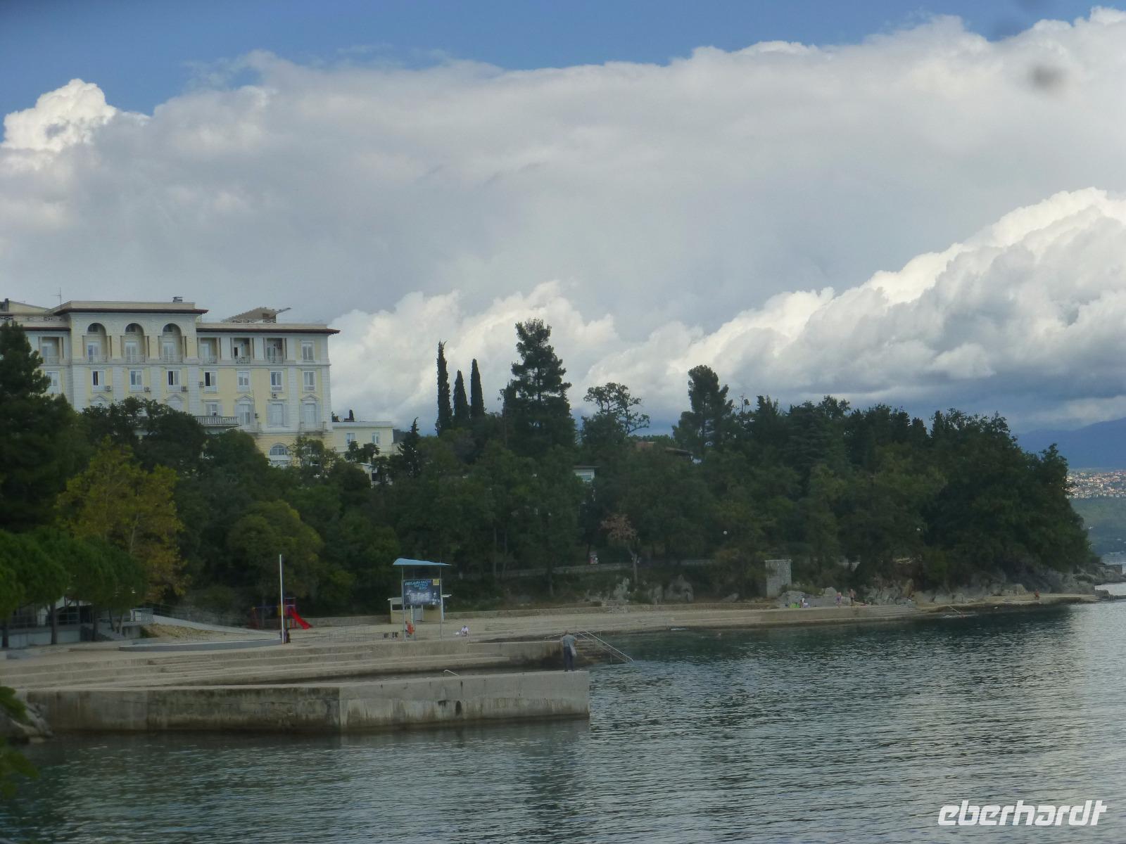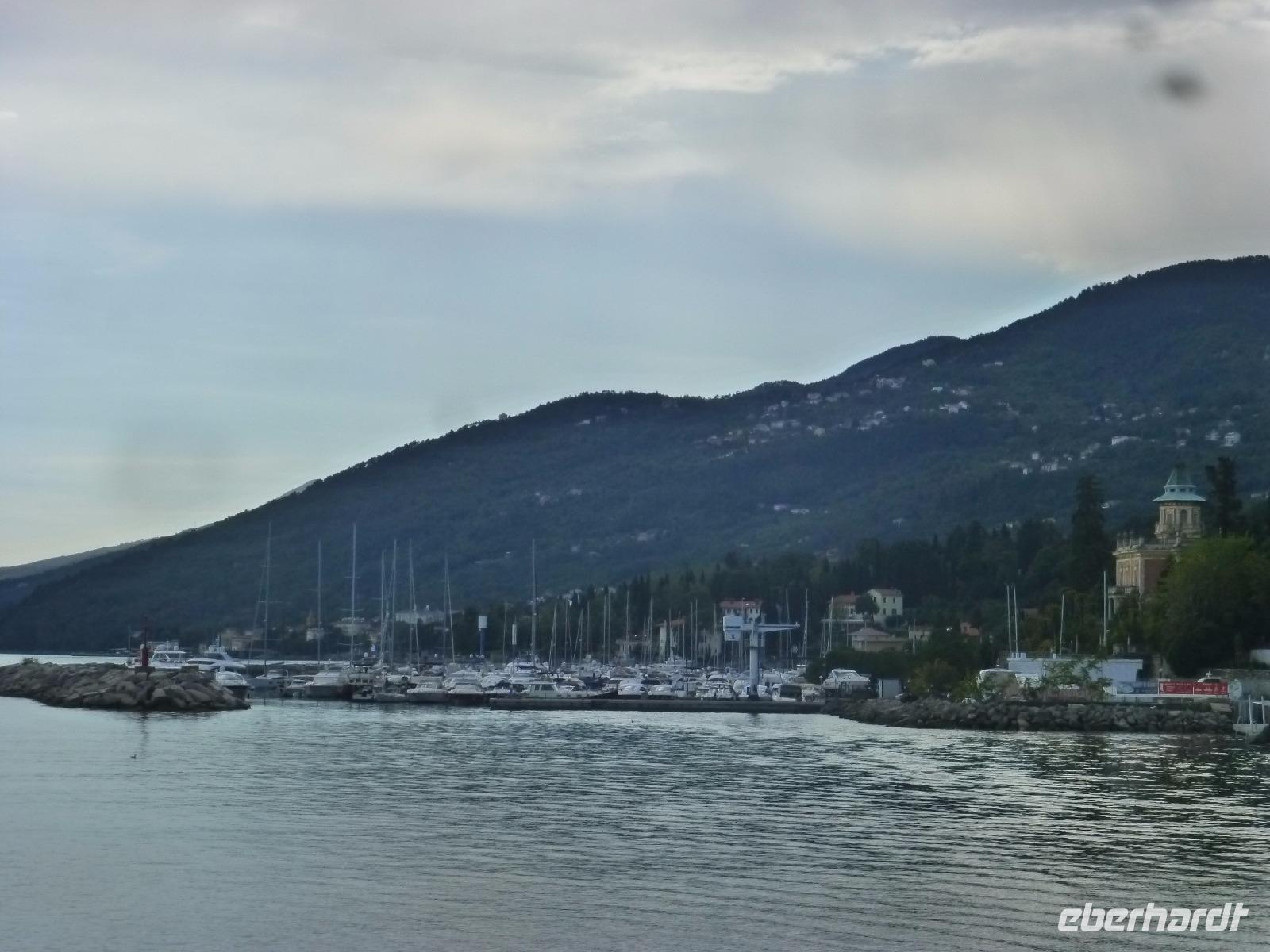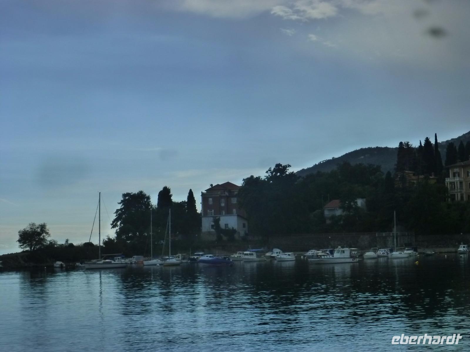 Heute unternahmen wir einen Ausflug in die Kvaner Bucht. Unser erstes Ziel war der kleine Ort Moscenice. Er liegt auf einem kleinen Hügel hoch über der Bucht. Ducan der Bürgermeister des Ortes erwartete uns bereits. In seiner lustigen und unterhaltsamen Weise brachte er uns seinen Ort näher. Es leben da nur 120 Einwohner. Wir besuchten die schön restaurierte Kirche und hatten einen tollen Blick auf Opatija und die Kvarner Bucht. In der ehemaligen Ölmühle lud er uns zu einem Schnaps ein und erklärte uns die Verfahrensweise zur Herstellung des Olivenöls. Anschließend fuhren wir nach Lovran. Im Hafen kehrten wir zum Mittagessen ein. Immer entlang der Promenade mit immer wieder schönen Ausblicken erreichten wir nach 8 km die schöne Stadt Opatija. Geprägt wurde sie als Kurort und Residenz der K&K Monarchie. Dies sieht man an den schönen Villen und alten Hotels. Es herrscht mediterranes Klima und überall sieht man Palmen und verschiedene exotische Pflanzen. Der Ort versprüht südländisches Flair. Bei Sonnenschein genossen wir einen Kaffee oder einen Eisbecher an der Adria.