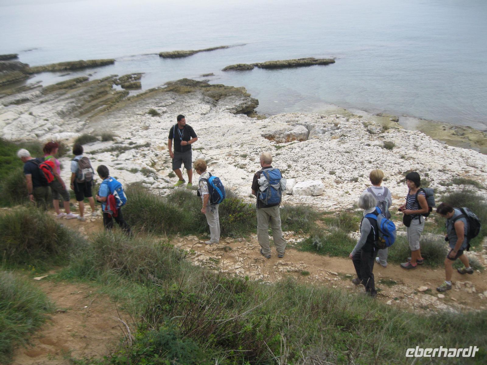 Nach langer Wartezeit in München und kurzer Flugzeit landeten wir pünktlich in Triest.Unser örtlicher Wanderleiter und der Bus warteten schon auf uns.Einen ersten Stopp legten wir am Schloß Miramar ein.Hier residierte Maximilian von Österreich,mit seiner belgischen Frau,bevor er Kaiser von Mexiko wurde.Eine wunderschöne weiße Anlage ,direkt am Meer gelegen ,mit angeschlossenen botanischen Garten.Er lud zum Bummeln oder einen Kaffee im Park ein.Weiter ging es durch Slowenien nach Kroatien und wir erreichten unser tolles Hotel in Umag .Vor dem Abendessen hatten wir Zeit die Anlage zu erkunden und uns bei einem Begrüßungsdrink kennen zu lernen.Die Köche überraschten uns mit einem vielfältigen Buffet.