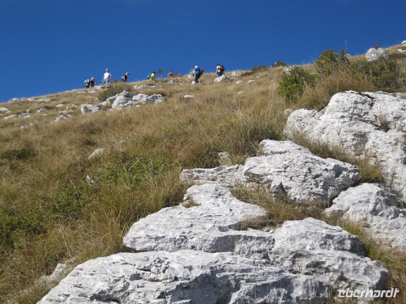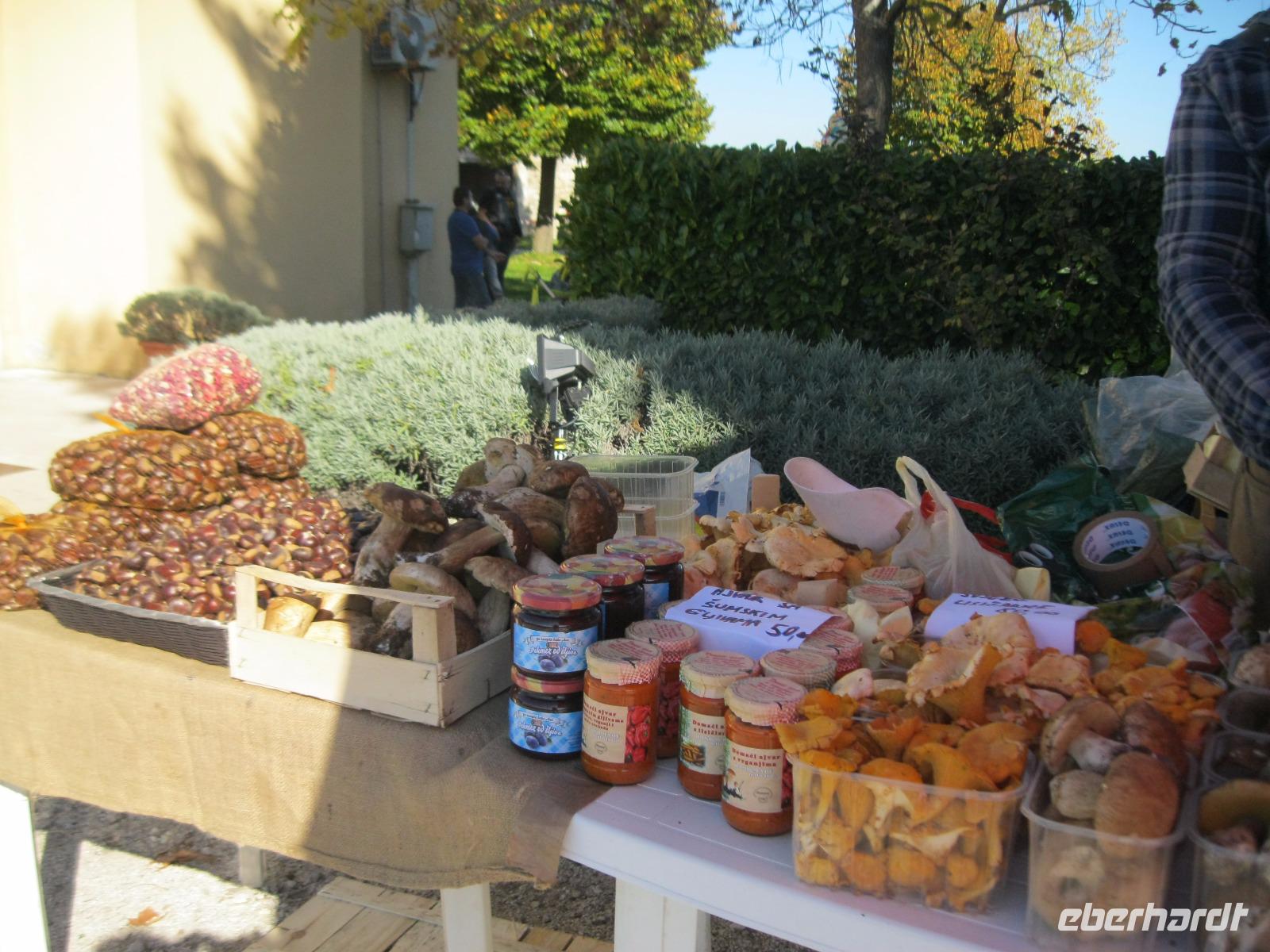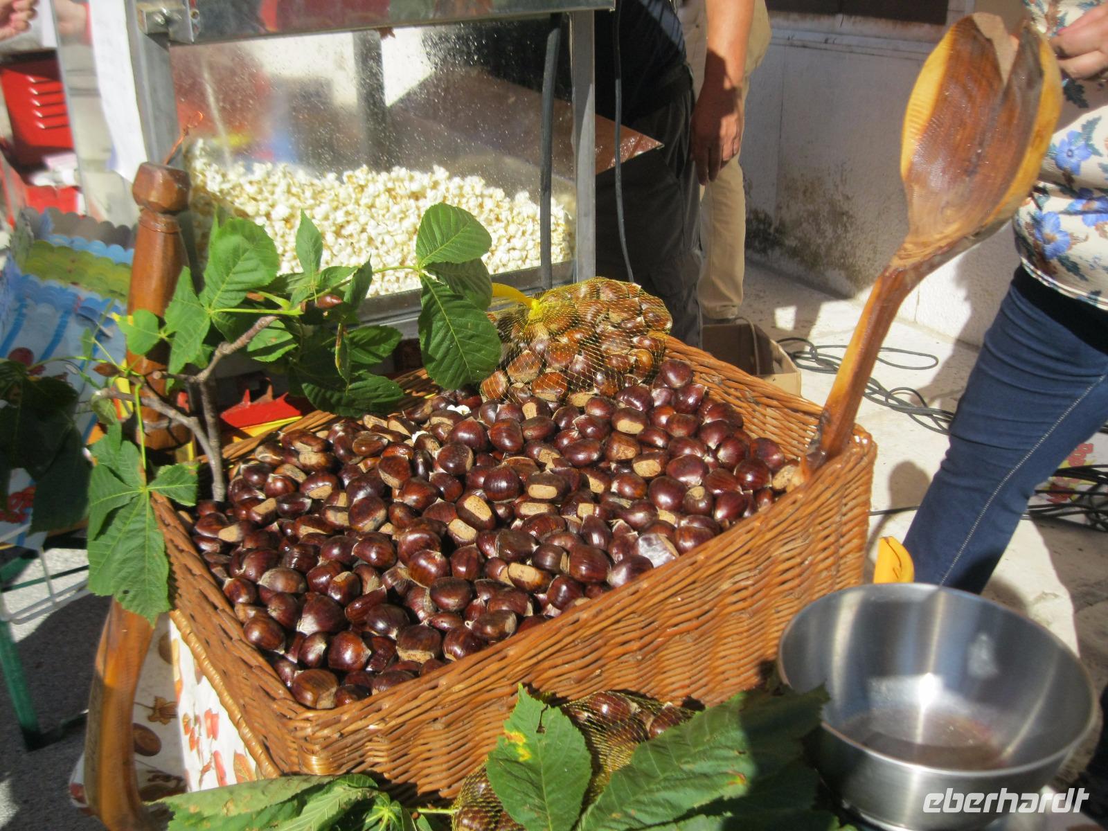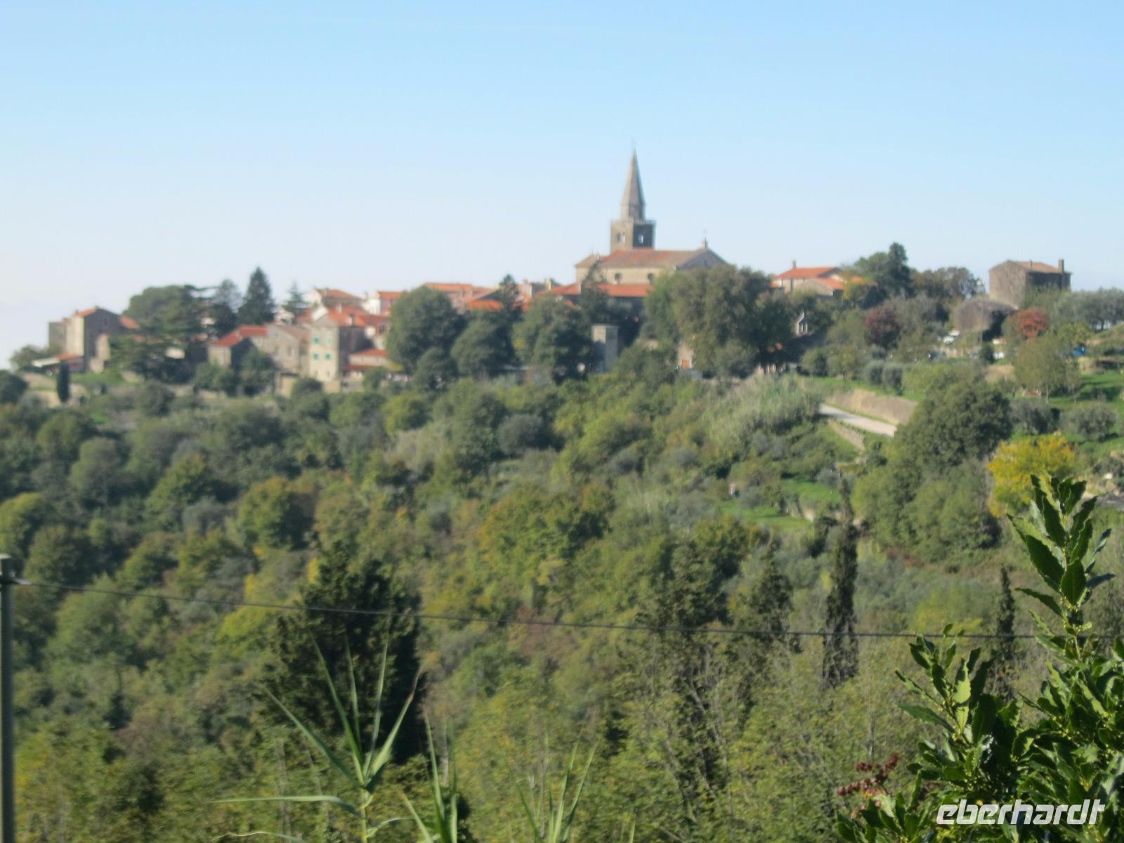 In der Region werden an diesem Wochenende die Kastanien- Feste gefeiert. Für uns ein Grund ,die Wanderungen so zu tauschen, damit wir mitfeiern können.An der Wein-Stadt Buje (bekannt für den Rotwein Teran)vorbei ,erreichten wir ,auf einem Hügel gelegen,das Bergstädtchen Groznjan. Wir spazierten durch ein Labyrinth von kleinen ,versteckten Gassen und entdeckten an jeder Ecke ein neues Fotomotiv.Vom Aussichtspunkt hatten wir schon einen Blick auf unsere heutige Wanderroute, entlang der ehemaligen Bahntrasse - Parenzana - von Triest nach Porec. Wir schlugen uns tapfer durch einen zugewachsenen Weg und kamen in dem fast verlassenen kleinen Ort Zavrsje an.Dort erwartete uns der Bus, der uns zum Kastanien-Fest nach Sveti Lucia brachte.Überall roch es nach gerösteten Kastanien ,Schinken und erstem Wein.Jung und Alt saßen gemütlich beieinander ,ließen es sich schmecken und lauschten den Straßenmusikern.Leider gab es auch Chaos, auf der viel zu kleinen Zufahrtsstraße ,das aber souverän von „Vele"gelöst wurde.Im Hotel angelangt,hatten wir noch Zeit das Meerwasser zu testen.