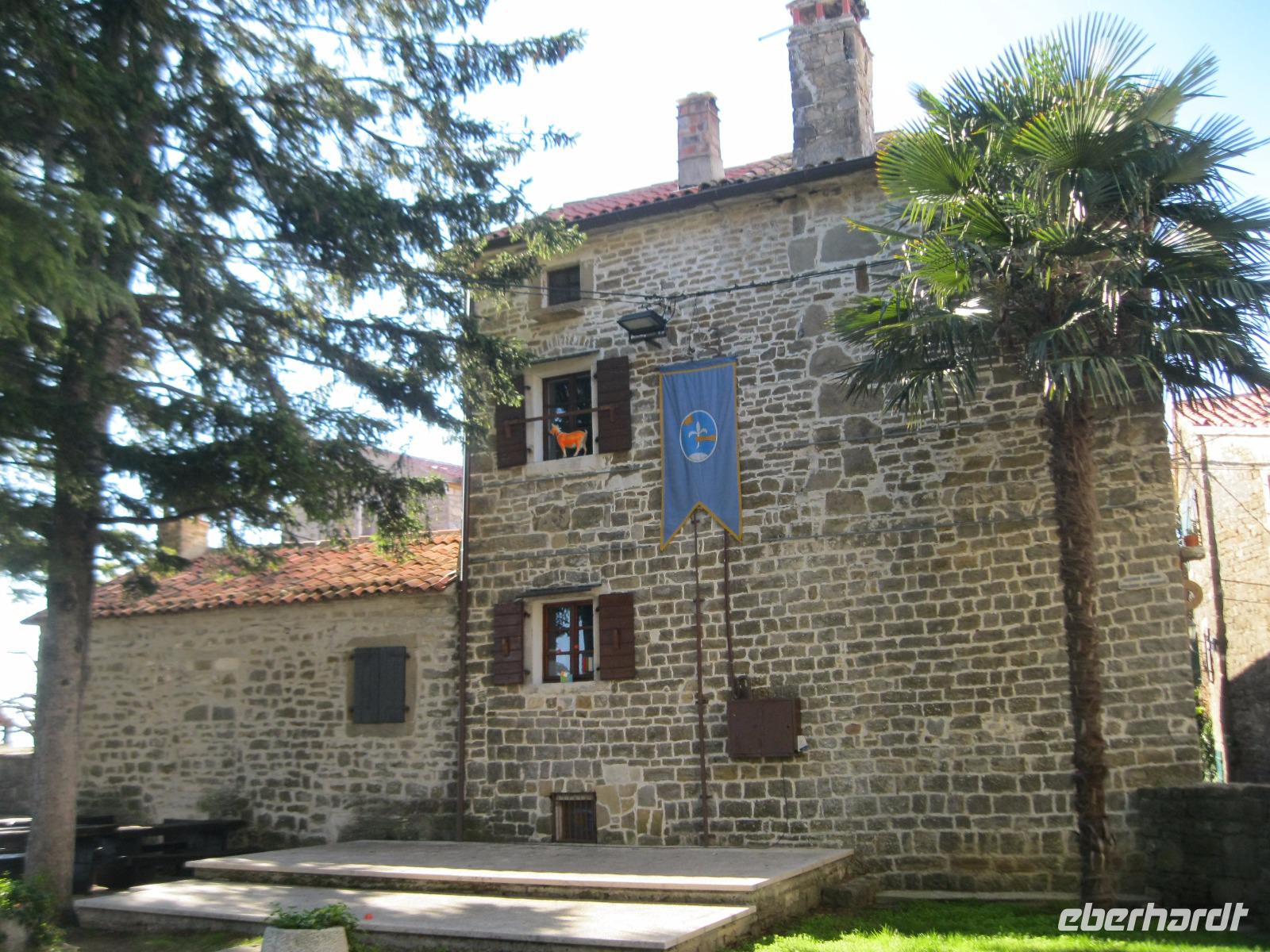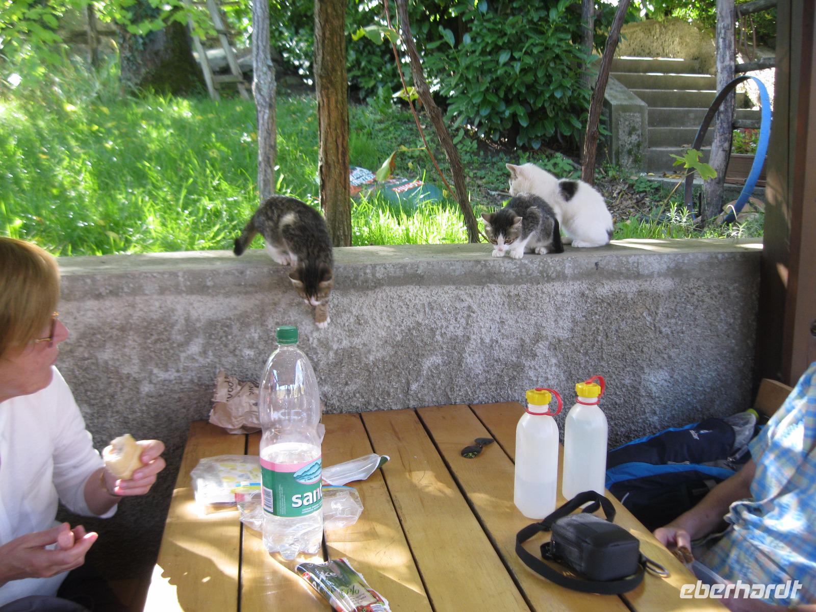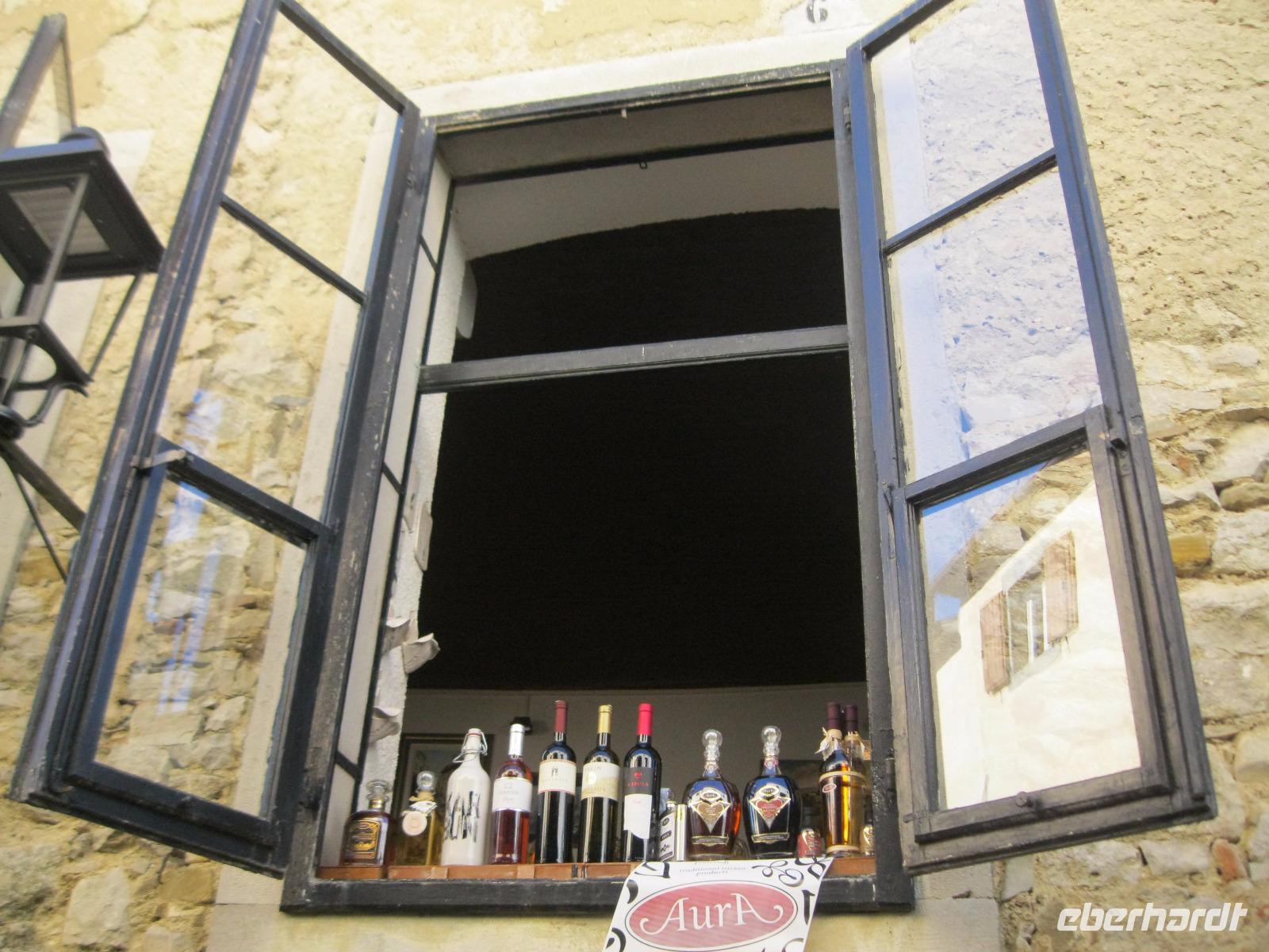 Die heutige Wanderung führt uns in die Heimat unseres Busfahrers Rino. In Buzet deckten wir uns mit Proviant ein und unweit der Stadt starteten wir.Der Mirna Fluß hat sich hier in ein Kalkstein Massiv seinen Weg gebahnt.Lange Zeit verlief hier der Hauthandelsweg Istriens. Der Waldweg war von den letzten Regengüssen noch sehr getränkt und unsere Stiefel wurden durch den Schlamm immer schwerer.In Kotli ,an der alten Mühle ,machten wir Rast .Sofort waren wir von hübschen ,hungrigen Kätzchen umringt ,die sich mit uns die Mahlzeit teilen wollten.Nun, wir konnten sie nicht betteln sehen. Leider war vom Wasserfall,auf Grund der Trockenheit des Flußbettes ,nicht zu sehen.Auf einer Lichtung ,nahe der Stadt Brnobici, erwartete uns Rino mit Mistel- Brandy.Wir naschten dazu Schmalzgebäck und hatten wieder neuen Antrieb.So erreichten wir die kleinste Stadt der Welt- Hum und sahen uns in Hum um.Jedes Jahr wird an einem alten Steintisch ,vor der Kirche,ein neuer Bürgermeister gewählt.Nach dem wir im Ort vom Olivenöl ,Trüffel Paste und Kräuterlikör probiert hatten ,fanden wir uns zu einem Glas Wein am Bürgermeistertisch ein.Wir machten unsere Vorschläge und zogen mit dem Bus weiter.Unterwegs hielten wir an der Straße der „Glagoliten",einer Gedenkallee zu Ehren der Slawenapostel Kyrill und Method, mit Schriftzeichen der alten Sprache.Auf der Rückfahrt kam es zur Nebelbildung vor der Bucht von Umag.Wir nahmen trotzdem ein erfrischendes Bad im Meer. Es hatte schon etwas unheimliches an sich :die Nebelbänke ,darüber die silbern scheinende Sonne und das dunkle Wasser.