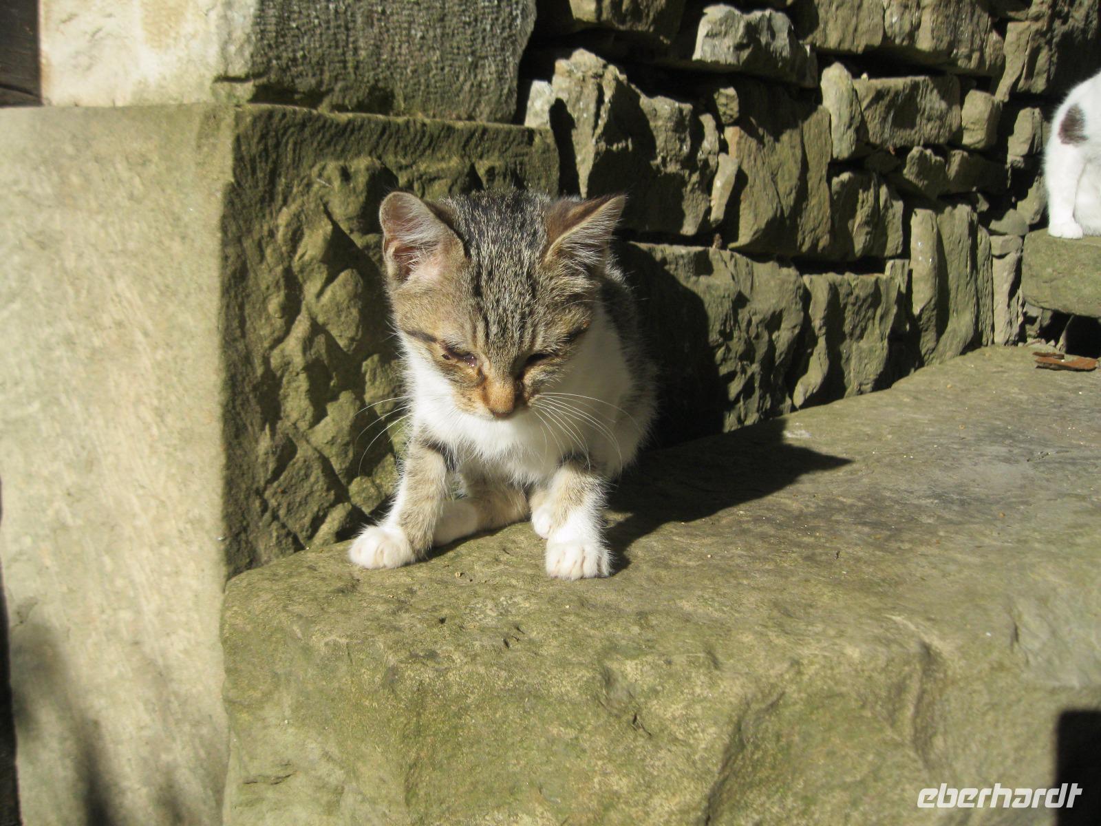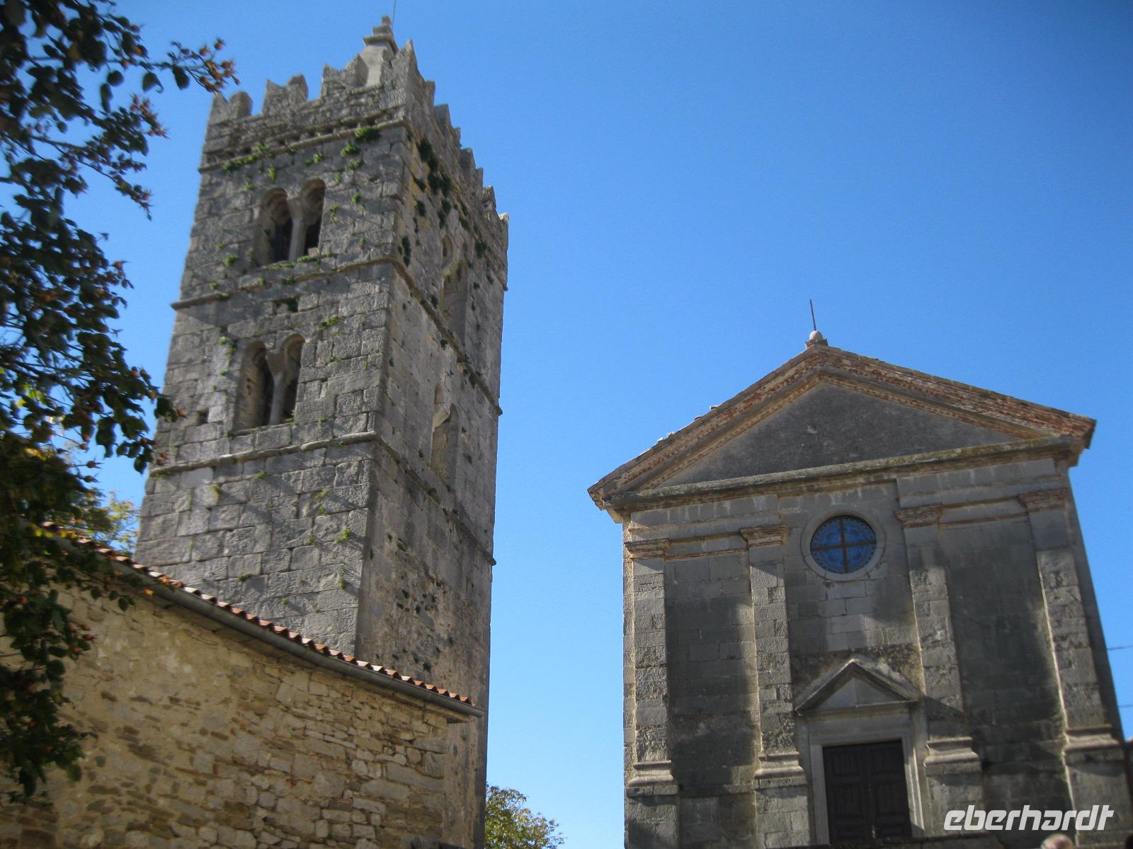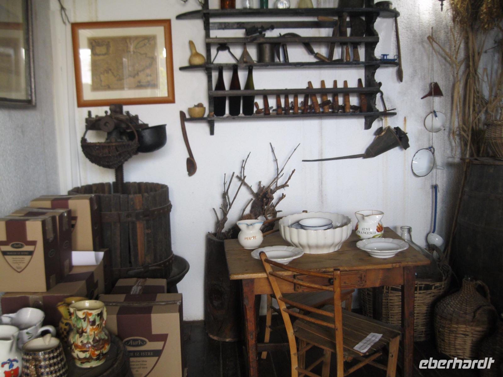 Die heutige Wanderung führt uns in die Heimat unseres Busfahrers Rino. In Buzet deckten wir uns mit Proviant ein und unweit der Stadt starteten wir.Der Mirna Fluß hat sich hier in ein Kalkstein Massiv seinen Weg gebahnt.Lange Zeit verlief hier der Hauthandelsweg Istriens. Der Waldweg war von den letzten Regengüssen noch sehr getränkt und unsere Stiefel wurden durch den Schlamm immer schwerer.In Kotli ,an der alten Mühle ,machten wir Rast .Sofort waren wir von hübschen ,hungrigen Kätzchen umringt ,die sich mit uns die Mahlzeit teilen wollten.Nun, wir konnten sie nicht betteln sehen. Leider war vom Wasserfall,auf Grund der Trockenheit des Flußbettes ,nicht zu sehen.Auf einer Lichtung ,nahe der Stadt Brnobici, erwartete uns Rino mit Mistel- Brandy.Wir naschten dazu Schmalzgebäck und hatten wieder neuen Antrieb.So erreichten wir die kleinste Stadt der Welt- Hum und sahen uns in Hum um.Jedes Jahr wird an einem alten Steintisch ,vor der Kirche,ein neuer Bürgermeister gewählt.Nach dem wir im Ort vom Olivenöl ,Trüffel Paste und Kräuterlikör probiert hatten ,fanden wir uns zu einem Glas Wein am Bürgermeistertisch ein.Wir machten unsere Vorschläge und zogen mit dem Bus weiter.Unterwegs hielten wir an der Straße der „Glagoliten",einer Gedenkallee zu Ehren der Slawenapostel Kyrill und Method, mit Schriftzeichen der alten Sprache.Auf der Rückfahrt kam es zur Nebelbildung vor der Bucht von Umag.Wir nahmen trotzdem ein erfrischendes Bad im Meer. Es hatte schon etwas unheimliches an sich :die Nebelbänke ,darüber die silbern scheinende Sonne und das dunkle Wasser.