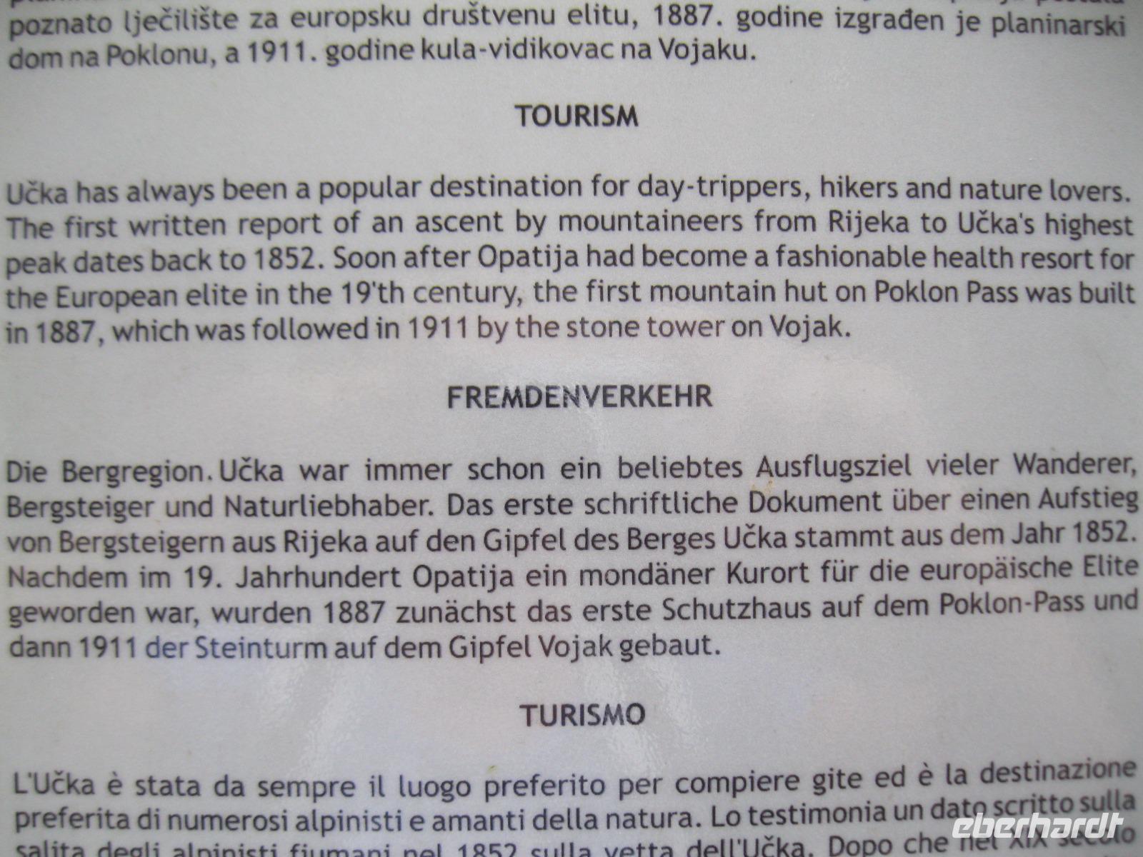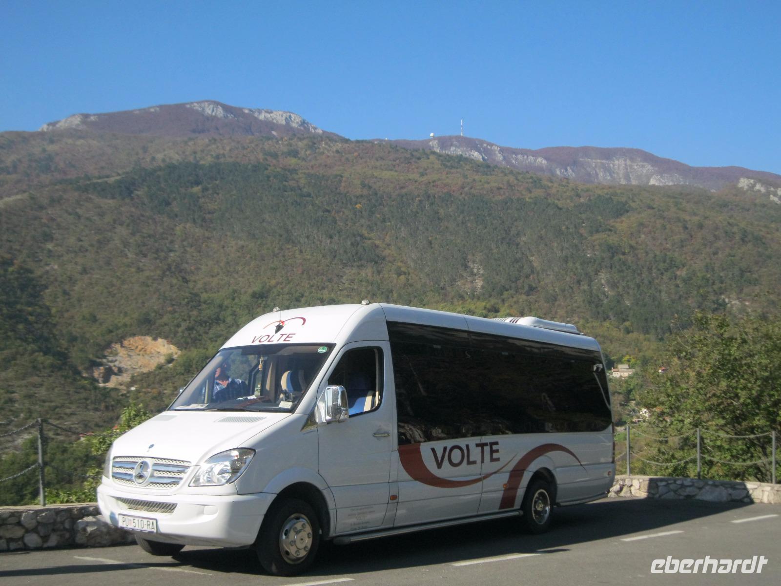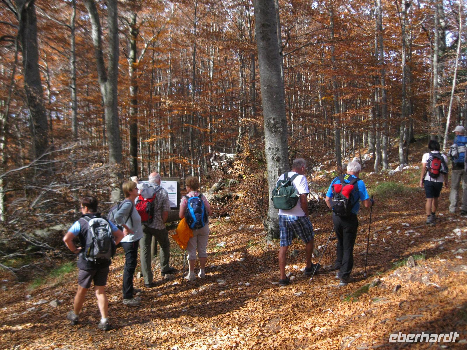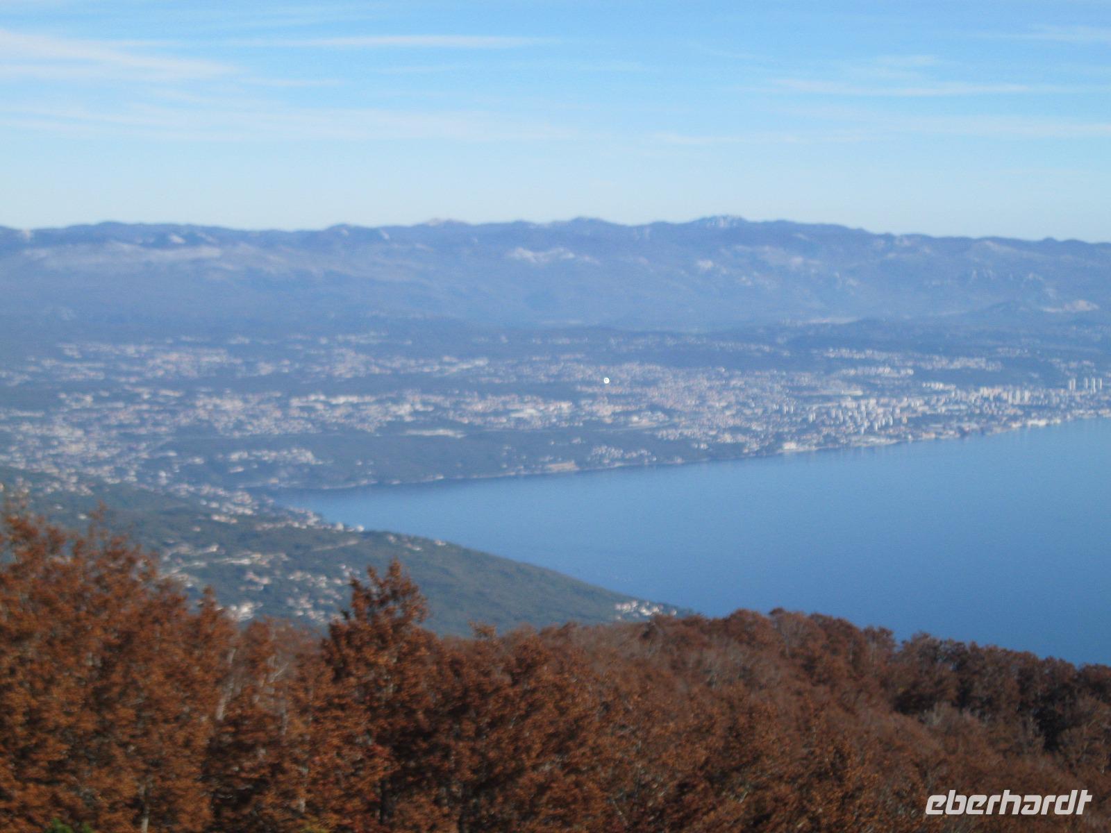 Wir starteten in einer Geisterlandschaft aus Frühnebel um in Richtung Ucka Tunnel zu fahren.Die Strecke kannten wir schon,auch unseren „Konzum „zur Proviant Aufnahme .Wir passierten wieder die uralten Wälder in denen die „Diamanten der Küche" gefunden werden.Vor dem Ucka Tunnel fuhren wir in die Berge des Nationalparkes Ucka.Die Tour führte uns von Velko Ucka, in 950 m Höhe, durch herrlich kupfern gefärbte Buchenwälder immer bergan.Ganz im Zeichen des Ucka Gebirges bewegten wir uns hinauf zum Berg Vojak (1401 m).Belohnt wurden wir mit der fantastischen Aussicht auf die Kvarner Bucht mit der Hafenstadt Rijeka.Über den Poklon -Pass erreichten wir die Penzion Ucka und kehrten auf ein Bier und Suppe ein.Bevor es heimwärts ging tat die kleine Stärkung, in mitten der Natur, gut.