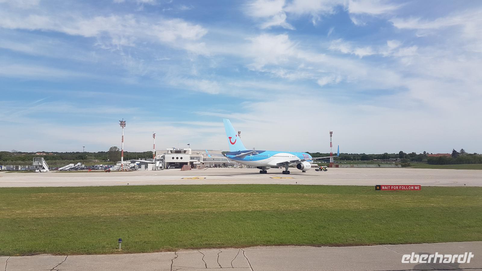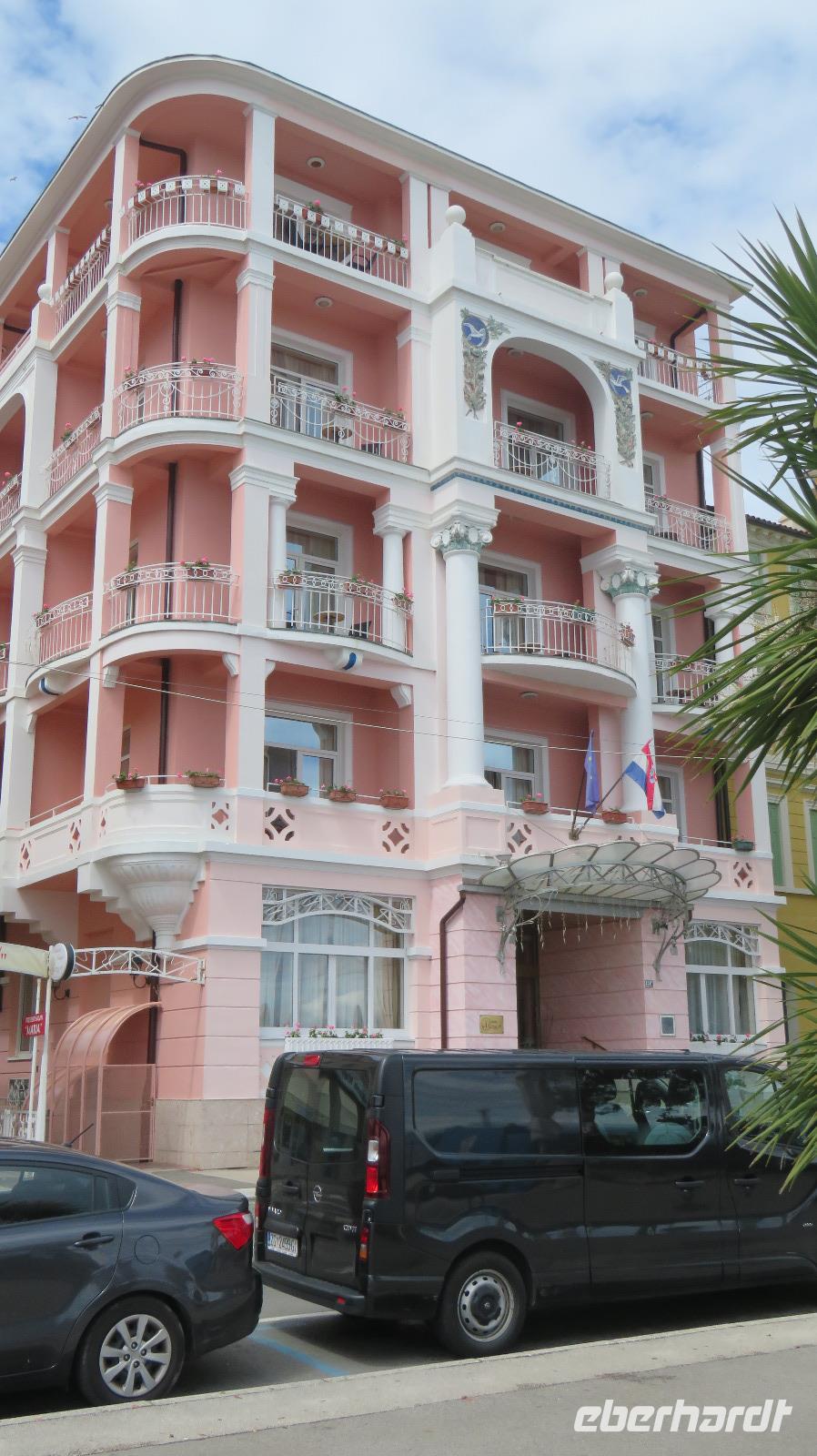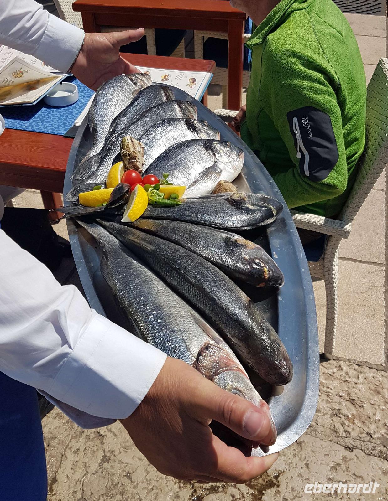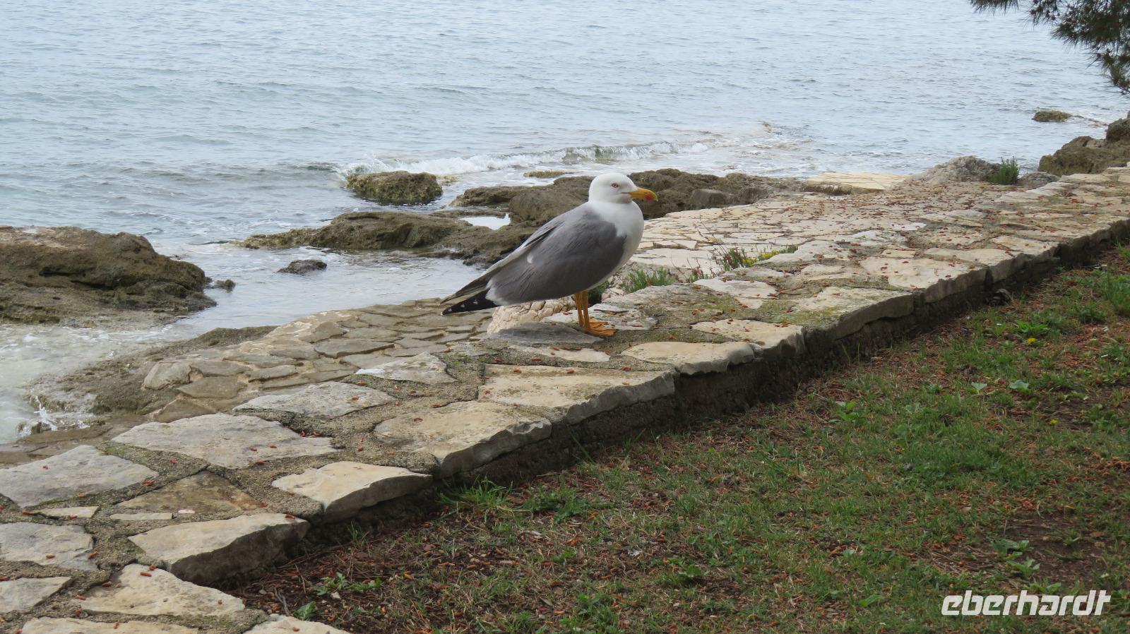 Am zeitigen Samstagmorgen traf ich auf die ersten Gäste am Dresdner Flughafen und gemeinsam meisterten wir den Check-In am Automaten, bevor wir unser Gepäck aufgaben. Die Sicherheitskontrolle war schnell erledigt und so warteten wir noch am Gate, bis das Boarding begann. Nach einem kurzen Flug nach München trafen wir auf eine weitere Mitreisende, die von Hannover nach München geflogen war. Zusammen ging es dann im Flieger nach Pula, wo uns unser Reiseleiter Velle in Empfang nahm und begrüßte. Unser Busfahrer Rajko packte das Gepäck in den Bus und schon startete die 50-minütige Fahrt zum Hotel. Velle erklärte uns kurz die anstehenden Wanderungen während der Fahrt und dass er diese umplanen musste, da die Wetteraussichten sich nicht mit den Wanderungen ergänzten. Daher stand für den ersten Tag die Küstenwanderung von Lovren nach Opatija an. Wir verabredeten uns für den nächsten Morgen um 8:30 Uhr. Da die Zimmer noch nicht bezugsfertig waren, ließen wir unser Gepäck im Hotel, spazierten nach Porec und aßen in einem Lokal am Hafen zu Mittag. Der Kellner spendierte uns am Ende noch einen Schnaps oder Espresso und so waren wir bester Laune, als wir wieder zurück zum Hotel gingen. Am Nachmittag bezogen wir dann unsere Zimmer, ruhten uns aus und trafen uns am Abend um 19:00 Uhr zum ersten gemeinsamen Abendessen im Speisesaal. Das Servicepersonal reservierte uns für die gesamte Woche einen Tisch, so hatten wir immer einen festen Treffpunkt. Da zwei Gäste später aus Düsseldorf und Frankfurt direkt nach Pula geflogen sind, wartete ich noch in der Lobby auf die beiden. Sie wurden pünktlich von Velle zum Hotel gebracht und konnten noch in Ruhe das Buffet genießen. Nach dem Abendessen checkten die beiden dann ein und konnten schließlich auch ihr Zimmer beziehen.