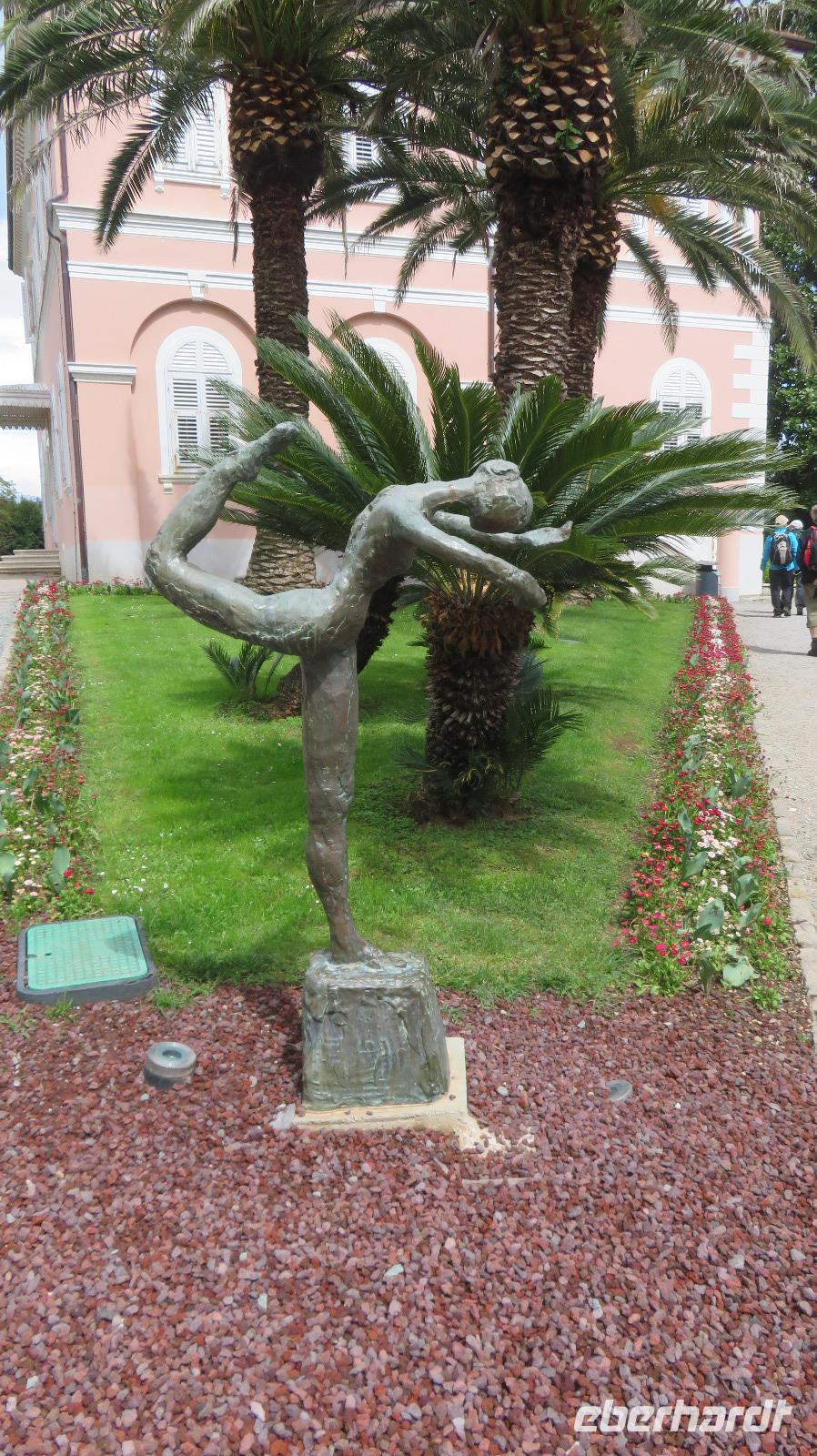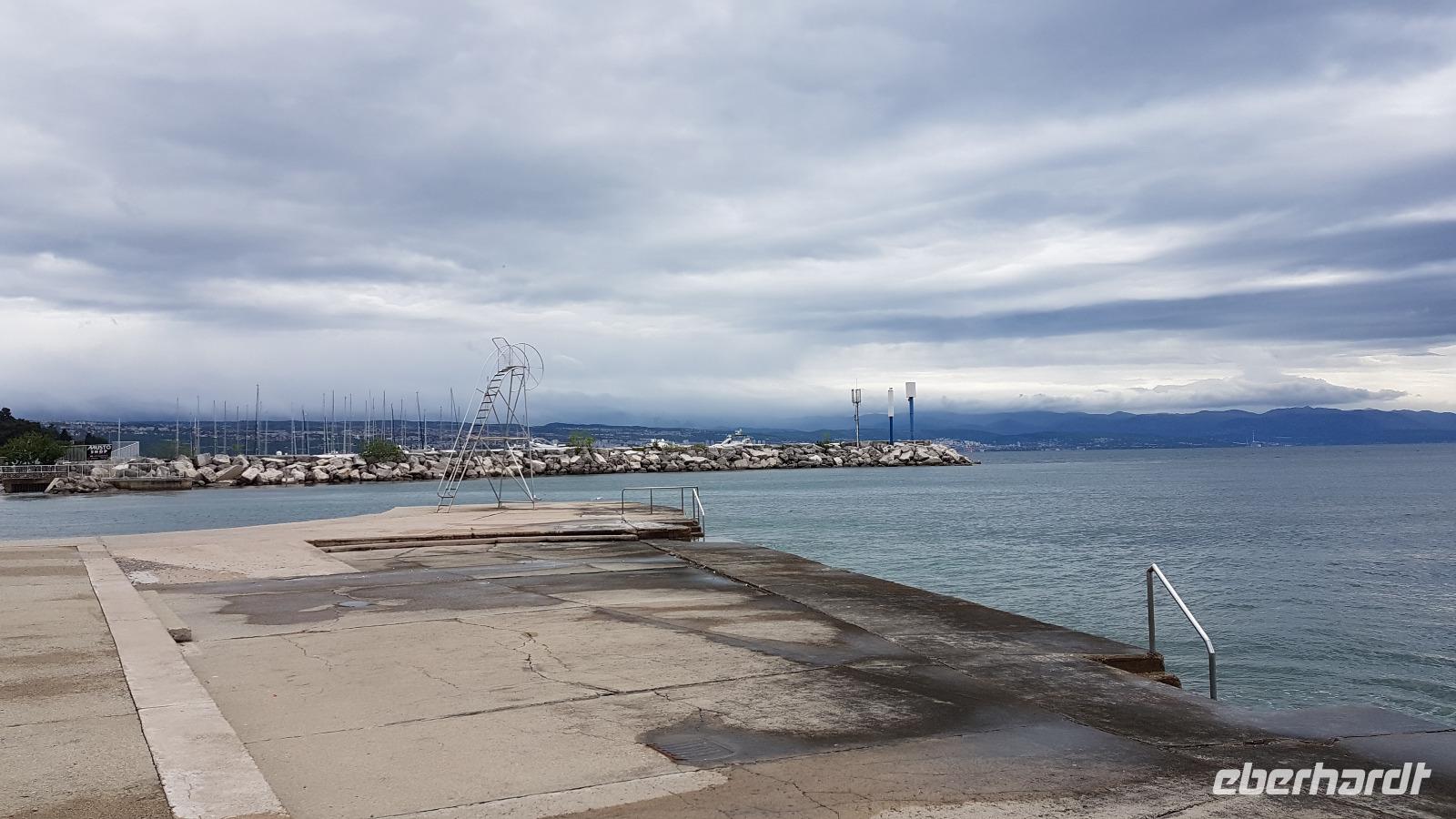 Am Morgen fand sich unsere Gruppe zum ersten Mal komplett am Frühstückstisch ein und alle freuten sich auf die gemeinsame Woche. Aufgrund der schlechten Wettervorhersage mit starkem Regen und kaltem Wind wurde die geplante Wanderung getauscht. Dies war eine sehr gute Entscheidung, denn, wie sich später herausstellte, fiel im Gebirge an dem Tag tatsächlich etwas Schnee. Dies ist die Folge des Bora Windes, der sehr gefährlich und einzigartig in Kroatien ist. An diesem Tag hätte es uns auf dem Gipfel eiskalt erwischen können. Den ersten Stopp machten wir an einem Supermarkt um Wasser und Snacks zu kaufen. In Lovren kamen wir zufällig zusammen mit einer Wandergruppe aus Österreich an und wanderten gemeinsam los. Ich bat Velle jedoch die Gruppen zu trennen, und so ließen wir die Österreicher passieren und konnten dann wieder in unserer kleinen Wandergruppe die Wanderung genießen. Der Küstenweg von Lovren nach Opatija schlängelt sich herrlich am Meer entlang, wir gingen vorbei an verschiedenen Pflanzen und genossen die Aussicht auf das Meer und die Küste. Die Luft hier soll sehr rein sein, so sagt Velle. Im Ort Icici haben wir pausiert und uns mit unserem mit gebrachten Snacks gestärkt. Weiter ging es an falschen und echten Feigenbäumen, deren beider Früchte man essen kann, die von der falschen Feige aber nicht schmecken. Trotz bewölktem Himmel konnte man bis zur Krk-Brücke schauen. Im Winter ist sie ab und zu gesperrt, wenn die besagten Bora-Winde zu stark wehen. Dann freuen sich die Kinder, da sie dann ein paar Tage schulfrei haben, weil der Schulbus nicht bis zur Schule fahren kann. Wir bewunderten auch die schönen Villen, wie das „Hotel Mozart" und das erste Hotel Kroatiens „Hotel Kvarner". Der Ort Opatija heißt übersetzt Abtei. Der Name geht darauf zurück, dass das erste Gebäude in Opatija eine Abtei war. Diese Abtei steht noch heute. Auf der Wanderung kamen wir außerdem am 1. Hafen Kroatiens vorbei. Dieser ist noch komplett in seiner ursprünglichen Form erhalten. Besichtigt haben wir noch einen sehr schönen Park, mit verschiedenen Pflanzen, wie die Kamelie. Auch andere Pflanzen, wie zum Beispiel Bambus, wachsen in diesem Park. Bambus wird in Kroatien zur Ernte der Marone verwendet, so erklärte uns Velle. Zum Abschluss erholten wir uns in einem kleinen Café ein wenig, bevor es auf den Rückweg ging. Wir trafen uns zum gemeinsamen Abendessen und ein paar von uns spazierten später noch nach Porec, um den Abend in einer gemütlichen Bar ausklingen zu lassen.