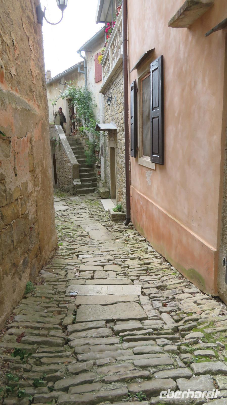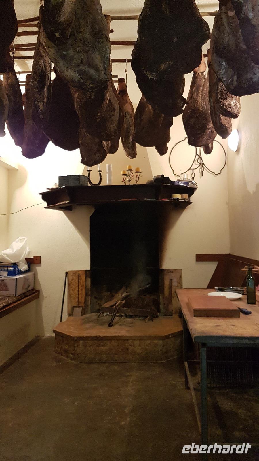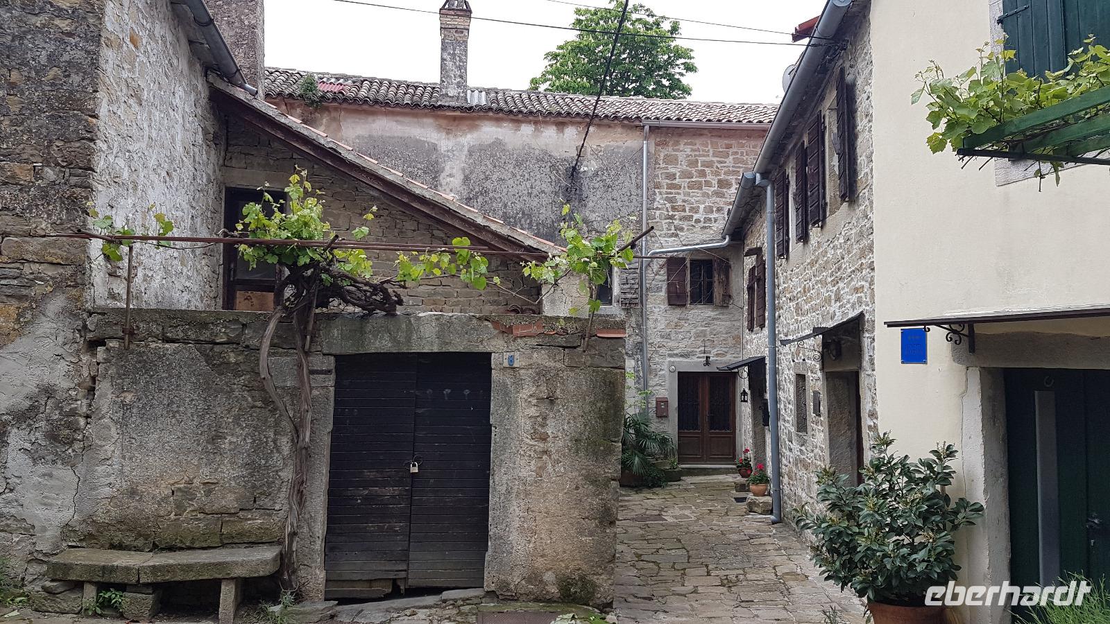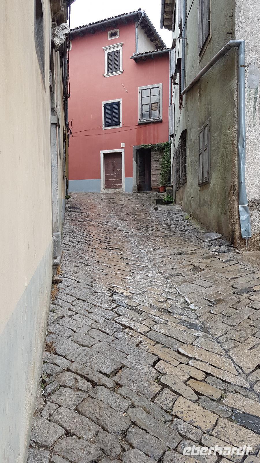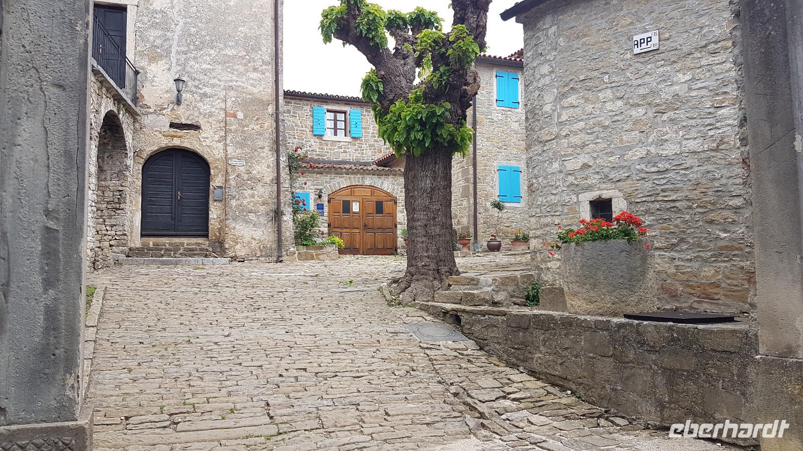 Unsere Wanderung sollte uns ins Mirnatal führen, aber es regnete bereits am Morgen in Strömen, sodass die Wanderung ausfallen musste. Anstelle derer schlug Velle vor, dass wir die Orte Buzet und Hum mit dem Bus anfahren und jeweils einen Spaziergang in den Orten machen könnten. Alle waren einverstanden und so fuhr uns Rajko zuerst nah Buzet. In dem kleinen Örtchen spazierten wir bei immer noch strömenden Regen durch die Gassen. Danach hielten wir kurz am Fluss Mirna und beobachteten die immense Strömung des eigentlich schmalen Flusses. In der kleinsten Stadt der Welt, Hum, angekommen, besichtigten wir zuerst einen schönen Laden, in dem der eine oder andere noch ein schönes Souvenir mitnahm oder einen lokalen Schnaps probierte. Da Hum wirklich sehr klein ist, waren wir schnell wieder am Ausgangspunkt angelangt und tranken in der örtlichen Konoba, einem kleinen Restaurant, noch einen Kaffee an der innenliegenden Feuerstelle. Danach gab es noch eine Überraschung für alle Gäste. Wir fuhren zu einer kroatischen Familie, die uns in ihrem Keller allerlei Köstlichkeiten servierte, die von ihnen selbst oder den Nachbarn hergestellt wurden. So konnten wir es uns bei Schnaps, Wein, Speck, Salami, Käse, Brot und Olivenöl gut gehen lassen. Zum Abschluss gab es sogar noch Kuchen. Wir ließen uns gern verwöhnen und genossen die Zeit bei der Familie. Wer mochte, konnte sogar etwas kaufen für den Genuss nach der Reise mit den Liebsten zu Hause. Nach rund einer Stunde verabschiedeten wir uns und wurden von Rajko zurück zum Hotel gefahren. Auf der Fahrt kam die Sonne raus und wir hatten noch einen schönen Nachmittag am Meer, im Schwimmbad oder der Sauna. Nach dem gemeinsamen Abendessen gingen ein paar von uns noch zum Strand um den Sonnenuntergang zu beobachten.