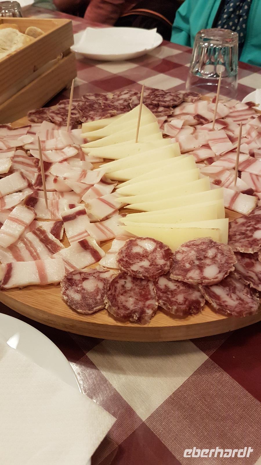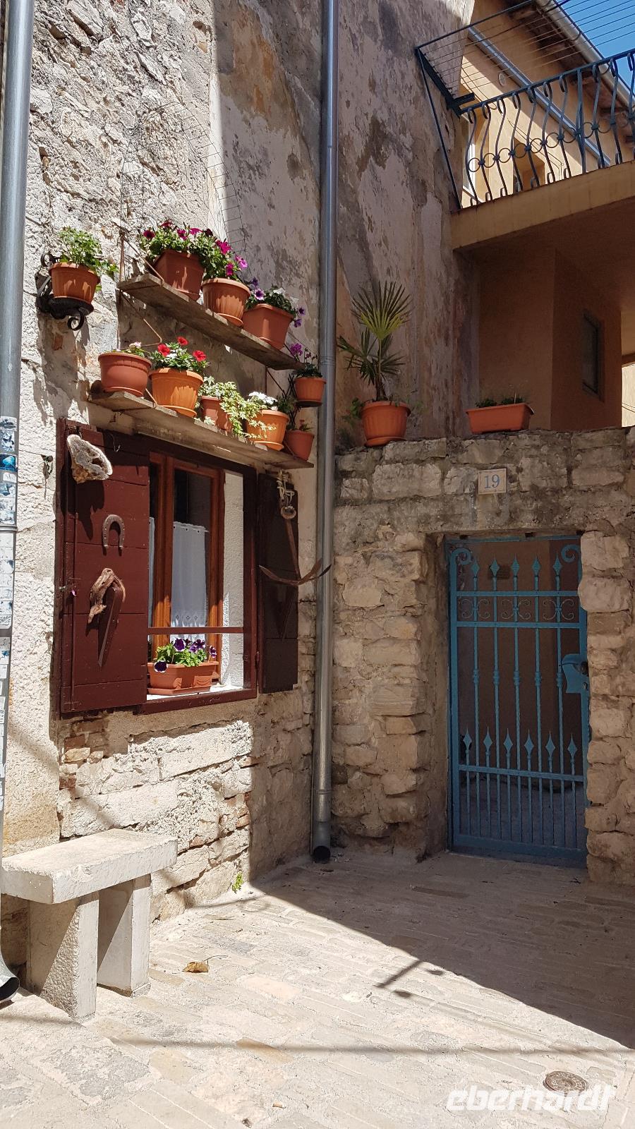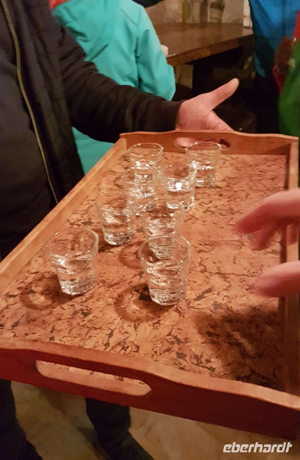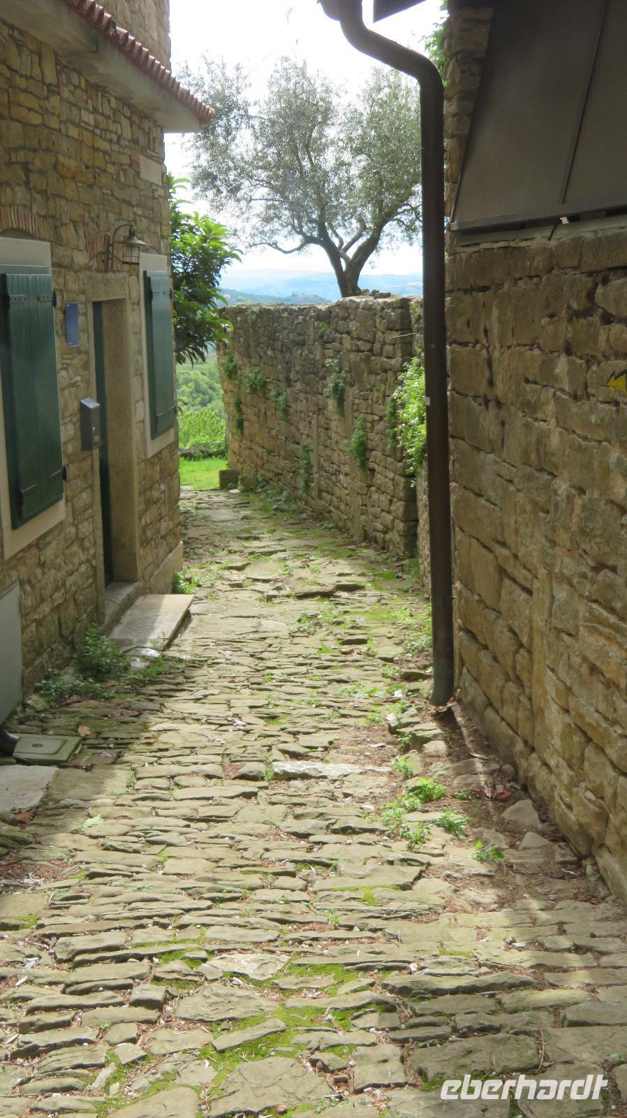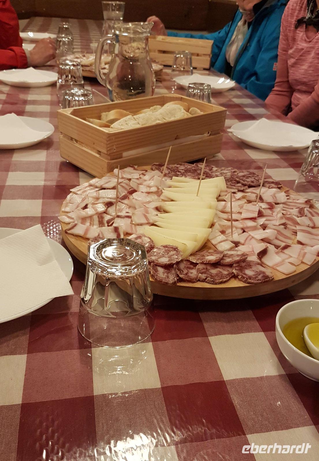 Unsere Wanderung sollte uns ins Mirnatal führen, aber es regnete bereits am Morgen in Strömen, sodass die Wanderung ausfallen musste. Anstelle derer schlug Velle vor, dass wir die Orte Buzet und Hum mit dem Bus anfahren und jeweils einen Spaziergang in den Orten machen könnten. Alle waren einverstanden und so fuhr uns Rajko zuerst nah Buzet. In dem kleinen Örtchen spazierten wir bei immer noch strömenden Regen durch die Gassen. Danach hielten wir kurz am Fluss Mirna und beobachteten die immense Strömung des eigentlich schmalen Flusses. In der kleinsten Stadt der Welt, Hum, angekommen, besichtigten wir zuerst einen schönen Laden, in dem der eine oder andere noch ein schönes Souvenir mitnahm oder einen lokalen Schnaps probierte. Da Hum wirklich sehr klein ist, waren wir schnell wieder am Ausgangspunkt angelangt und tranken in der örtlichen Konoba, einem kleinen Restaurant, noch einen Kaffee an der innenliegenden Feuerstelle. Danach gab es noch eine Überraschung für alle Gäste. Wir fuhren zu einer kroatischen Familie, die uns in ihrem Keller allerlei Köstlichkeiten servierte, die von ihnen selbst oder den Nachbarn hergestellt wurden. So konnten wir es uns bei Schnaps, Wein, Speck, Salami, Käse, Brot und Olivenöl gut gehen lassen. Zum Abschluss gab es sogar noch Kuchen. Wir ließen uns gern verwöhnen und genossen die Zeit bei der Familie. Wer mochte, konnte sogar etwas kaufen für den Genuss nach der Reise mit den Liebsten zu Hause. Nach rund einer Stunde verabschiedeten wir uns und wurden von Rajko zurück zum Hotel gefahren. Auf der Fahrt kam die Sonne raus und wir hatten noch einen schönen Nachmittag am Meer, im Schwimmbad oder der Sauna. Nach dem gemeinsamen Abendessen gingen ein paar von uns noch zum Strand um den Sonnenuntergang zu beobachten.