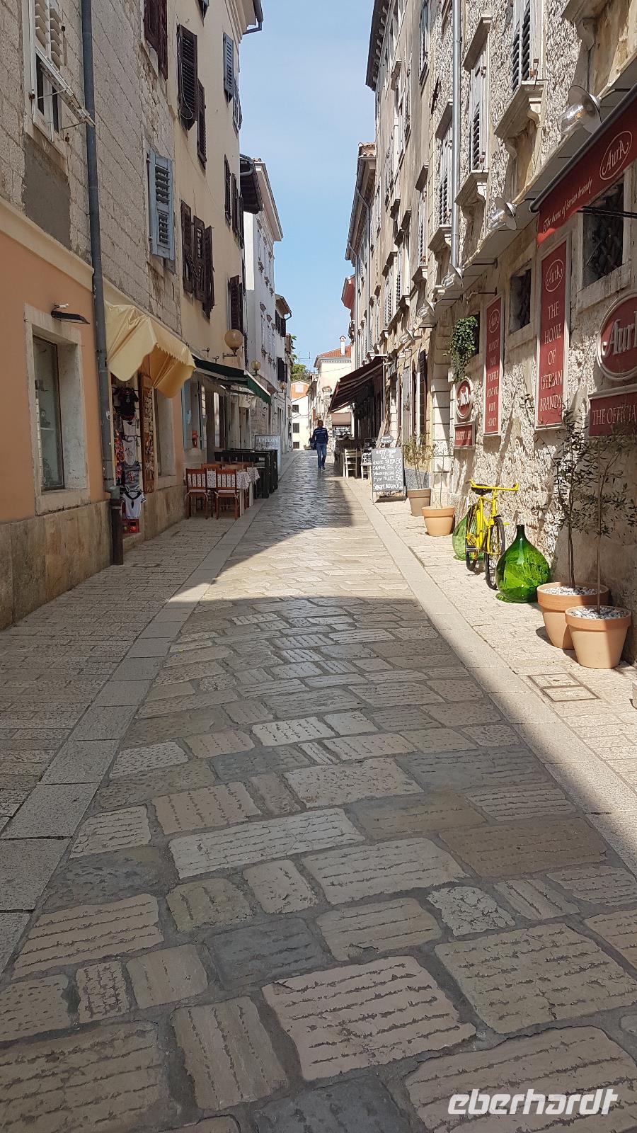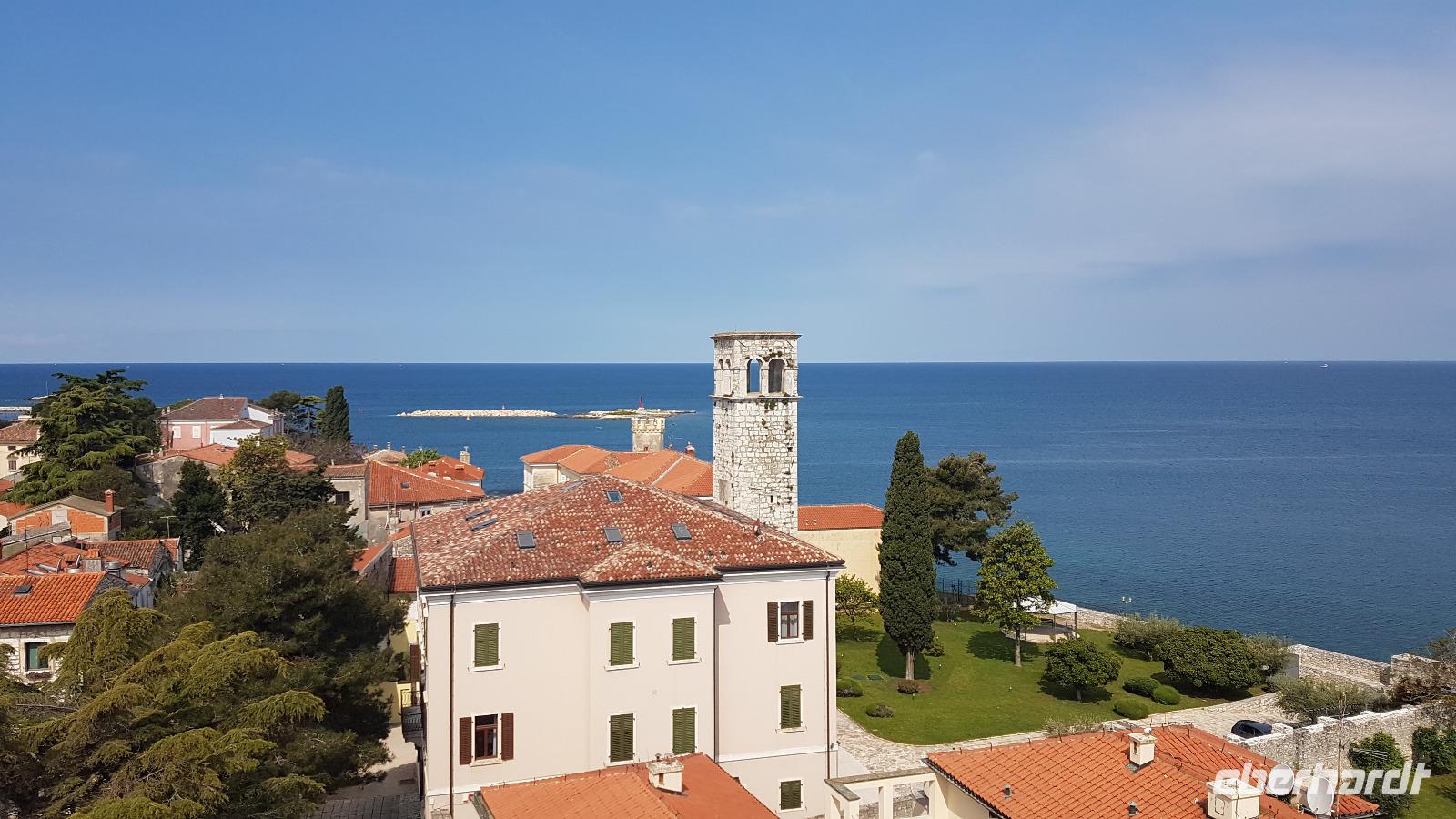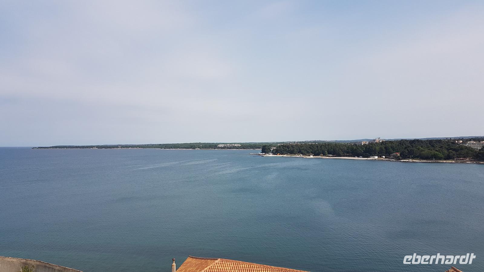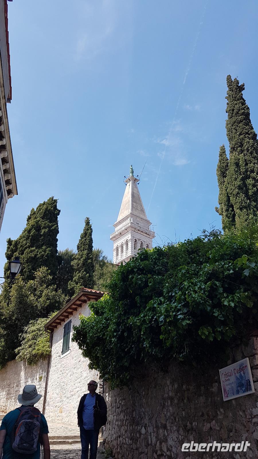 Für unseren freien Tag hat Velle für alle Interessierten eine Schifffahrt nach Rovinj organisiert. Ein Teil der Gäste hat sich für die Schifffahrt angemeldet, andere Teil fuhr lieber mit dem Bus nach Rovinj. Der größeren Busgruppe schloss ich mich an. An der Hotel-Rezeption erhielten wir einen Busfahrplan. Wir trafen uns nach dem gemeinsamen Frühstück um 9:00 Uhr in der Lobby des Hotels und liefen nach Porec, um die Bustickets zu kaufen. Da wir noch Zeit bis zur Abfahrt hatten, besichtigten wir erst noch die Euphrasius-Basilika. Diese Basilika wurde im 6. Jahrhundert errichtet. Vom Glockenturm aus hat man einen wunderbaren Blick in alle Richtungen. Die Busfahrt nach Rovinj dauerte eine knappe Stunde. Dort angekommen, kauften wir uns direkt das Ticket für die Rückfahrt und hatten dann rund vier Stunden Zeit für die Besichtigung dieses schönen Städtchens. Wir schlenderten durch die Gassen in Richtung der Kirche der Heiligen Euphemia. Diese Kirche wurde im 18. Jahrhundert errichtet und steht auf einem Hügel der Stadt. Wir besichtigten sie von innen, verzichteten jedoch auf den Turm-Aufstieg, da dieser eher schwierig zu bewältigen ist. Für den Weg zurück nahmen wir eine andere Gasse und schauten auch in das eine oder andere Geschäft hinein. In einem Café machten wir eine Verschnaufpause. Danach schauten wir uns noch ein wenig den Hafen an und gingen zurück zur Bushaltestelle, wo auch nach kurzer Zeit der Bus kam und uns nach Porec zurückbrachte. Beim gemeinsamen Abendessen trafen wir unsere Schiffsfahrer wieder, die uns von einem sehr schönen Ausflug berichteten und so konnten wir den Tag gemeinsam auswerten und uns austauschen.