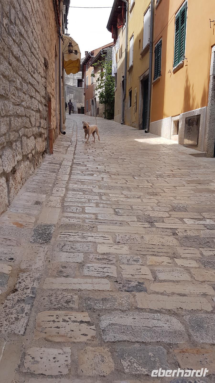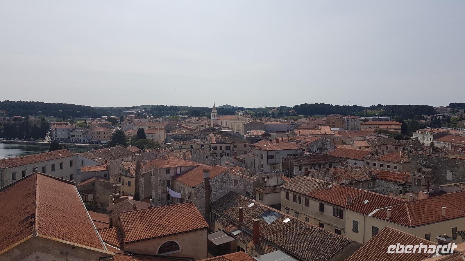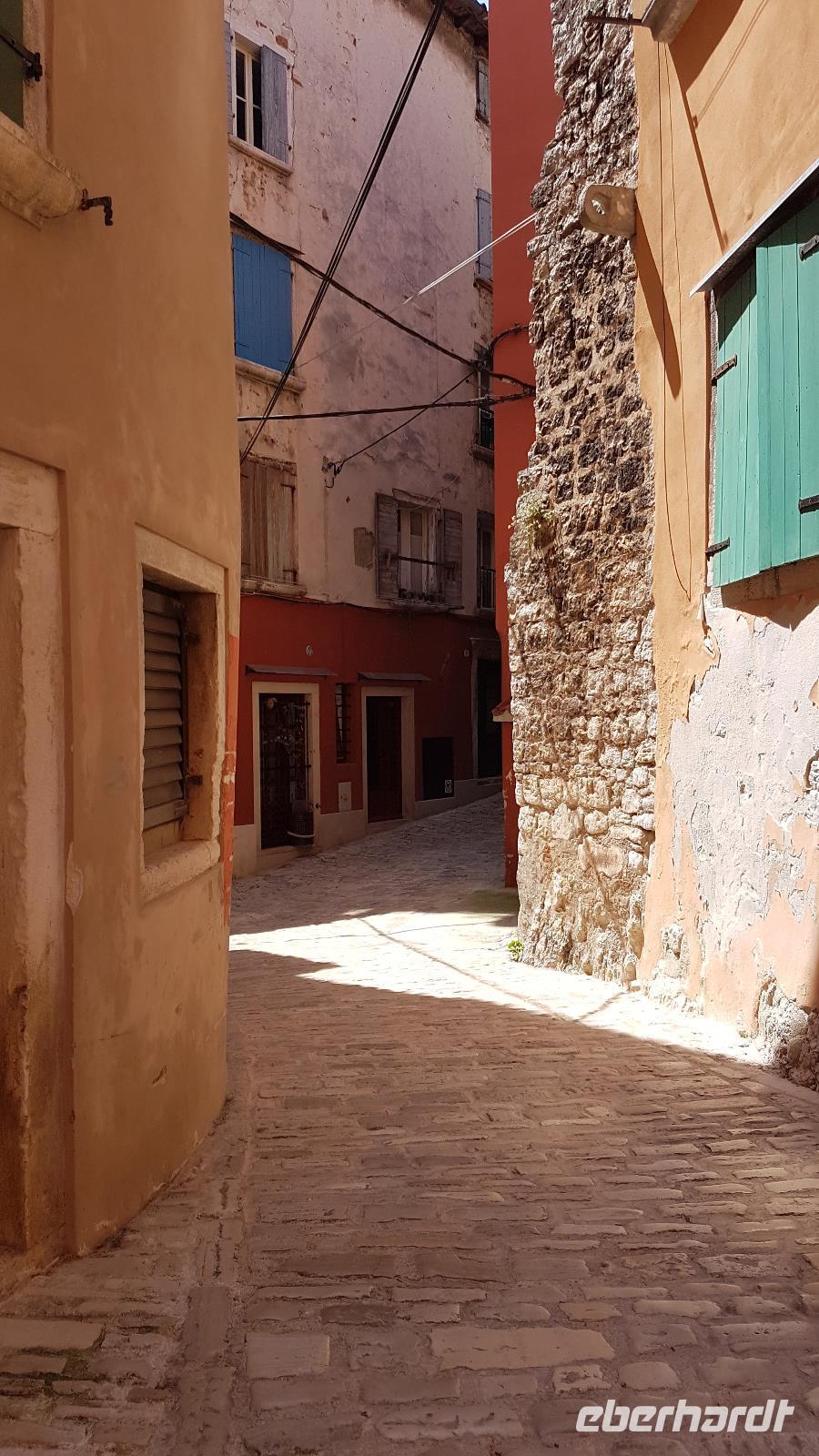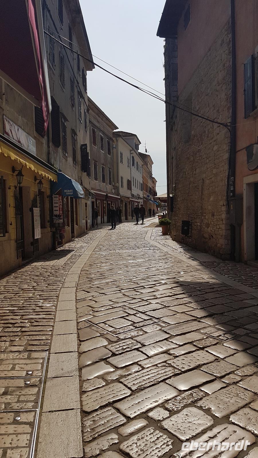 Für unseren freien Tag hat Velle für alle Interessierten eine Schifffahrt nach Rovinj organisiert. Ein Teil der Gäste hat sich für die Schifffahrt angemeldet, andere Teil fuhr lieber mit dem Bus nach Rovinj. Der größeren Busgruppe schloss ich mich an. An der Hotel-Rezeption erhielten wir einen Busfahrplan. Wir trafen uns nach dem gemeinsamen Frühstück um 9:00 Uhr in der Lobby des Hotels und liefen nach Porec, um die Bustickets zu kaufen. Da wir noch Zeit bis zur Abfahrt hatten, besichtigten wir erst noch die Euphrasius-Basilika. Diese Basilika wurde im 6. Jahrhundert errichtet. Vom Glockenturm aus hat man einen wunderbaren Blick in alle Richtungen. Die Busfahrt nach Rovinj dauerte eine knappe Stunde. Dort angekommen, kauften wir uns direkt das Ticket für die Rückfahrt und hatten dann rund vier Stunden Zeit für die Besichtigung dieses schönen Städtchens. Wir schlenderten durch die Gassen in Richtung der Kirche der Heiligen Euphemia. Diese Kirche wurde im 18. Jahrhundert errichtet und steht auf einem Hügel der Stadt. Wir besichtigten sie von innen, verzichteten jedoch auf den Turm-Aufstieg, da dieser eher schwierig zu bewältigen ist. Für den Weg zurück nahmen wir eine andere Gasse und schauten auch in das eine oder andere Geschäft hinein. In einem Café machten wir eine Verschnaufpause. Danach schauten wir uns noch ein wenig den Hafen an und gingen zurück zur Bushaltestelle, wo auch nach kurzer Zeit der Bus kam und uns nach Porec zurückbrachte. Beim gemeinsamen Abendessen trafen wir unsere Schiffsfahrer wieder, die uns von einem sehr schönen Ausflug berichteten und so konnten wir den Tag gemeinsam auswerten und uns austauschen.