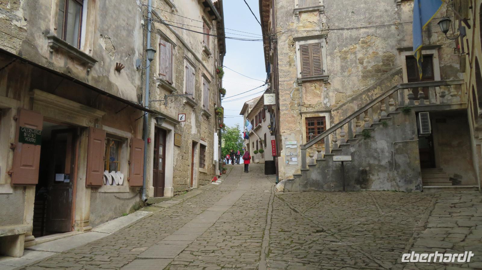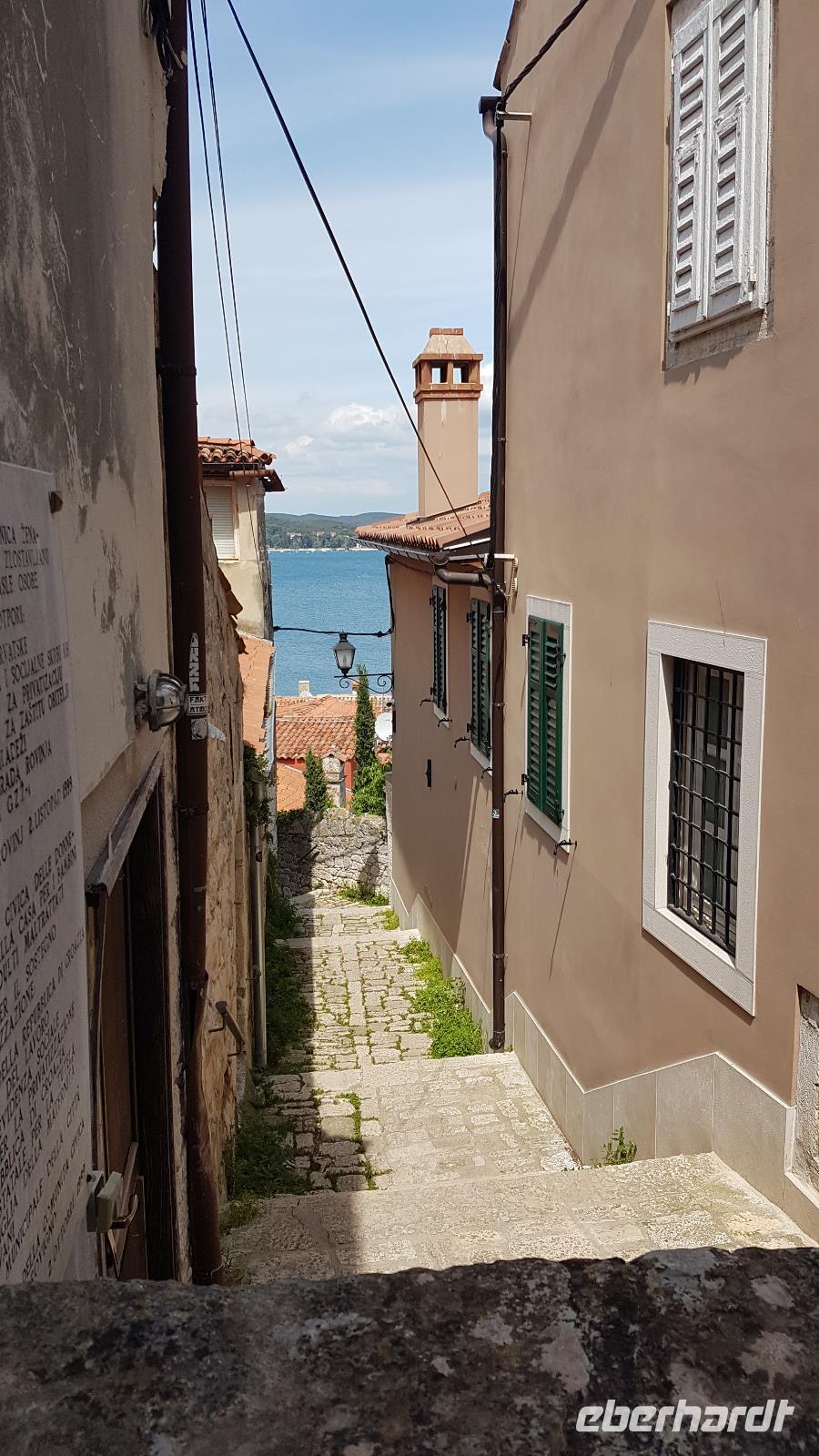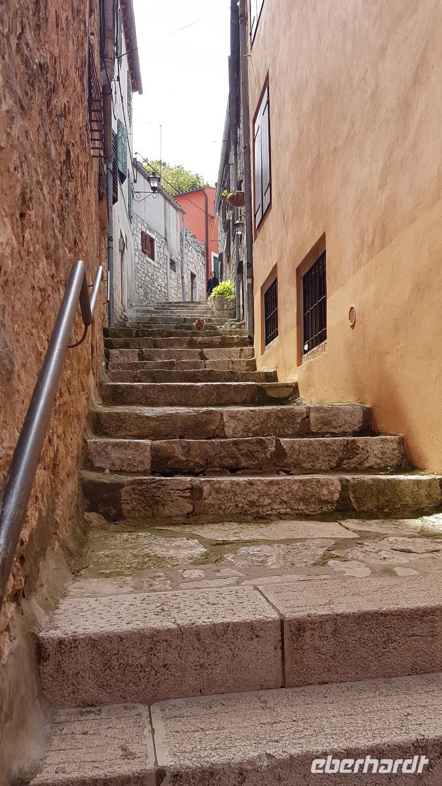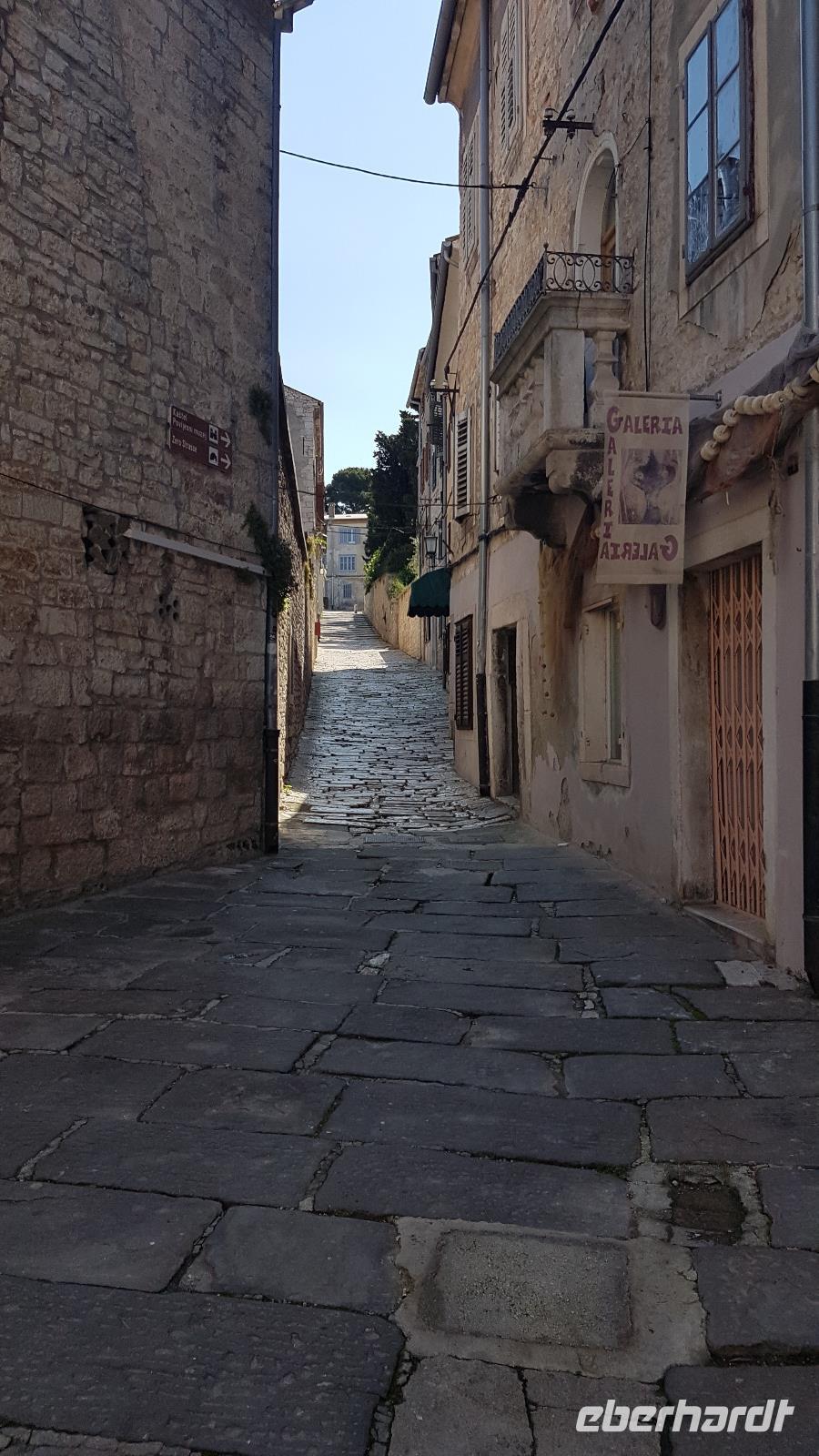 Für unseren freien Tag hat Velle für alle Interessierten eine Schifffahrt nach Rovinj organisiert. Ein Teil der Gäste hat sich für die Schifffahrt angemeldet, andere Teil fuhr lieber mit dem Bus nach Rovinj. Der größeren Busgruppe schloss ich mich an. An der Hotel-Rezeption erhielten wir einen Busfahrplan. Wir trafen uns nach dem gemeinsamen Frühstück um 9:00 Uhr in der Lobby des Hotels und liefen nach Porec, um die Bustickets zu kaufen. Da wir noch Zeit bis zur Abfahrt hatten, besichtigten wir erst noch die Euphrasius-Basilika. Diese Basilika wurde im 6. Jahrhundert errichtet. Vom Glockenturm aus hat man einen wunderbaren Blick in alle Richtungen. Die Busfahrt nach Rovinj dauerte eine knappe Stunde. Dort angekommen, kauften wir uns direkt das Ticket für die Rückfahrt und hatten dann rund vier Stunden Zeit für die Besichtigung dieses schönen Städtchens. Wir schlenderten durch die Gassen in Richtung der Kirche der Heiligen Euphemia. Diese Kirche wurde im 18. Jahrhundert errichtet und steht auf einem Hügel der Stadt. Wir besichtigten sie von innen, verzichteten jedoch auf den Turm-Aufstieg, da dieser eher schwierig zu bewältigen ist. Für den Weg zurück nahmen wir eine andere Gasse und schauten auch in das eine oder andere Geschäft hinein. In einem Café machten wir eine Verschnaufpause. Danach schauten wir uns noch ein wenig den Hafen an und gingen zurück zur Bushaltestelle, wo auch nach kurzer Zeit der Bus kam und uns nach Porec zurückbrachte. Beim gemeinsamen Abendessen trafen wir unsere Schiffsfahrer wieder, die uns von einem sehr schönen Ausflug berichteten und so konnten wir den Tag gemeinsam auswerten und uns austauschen.
