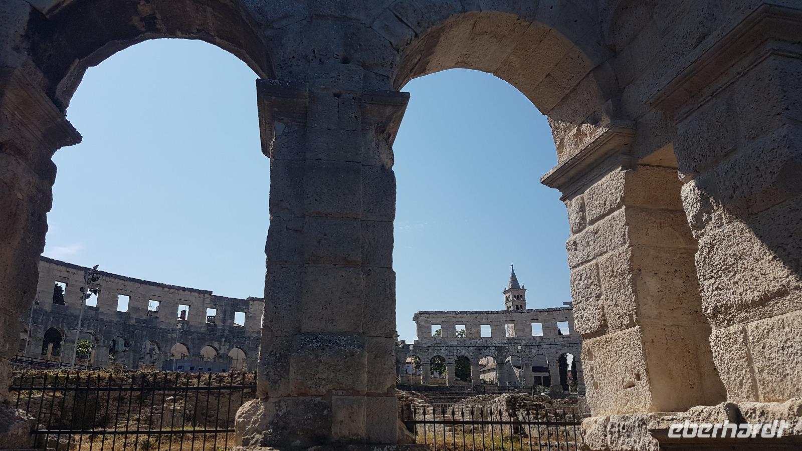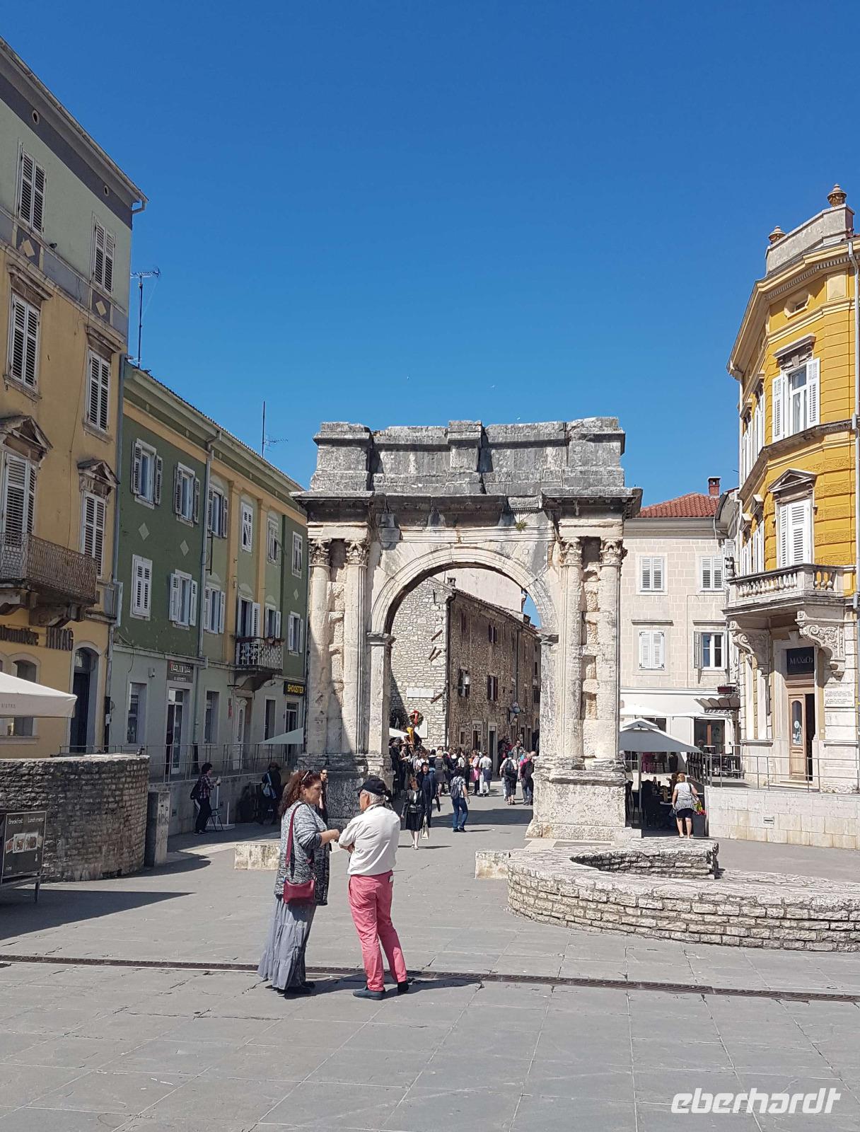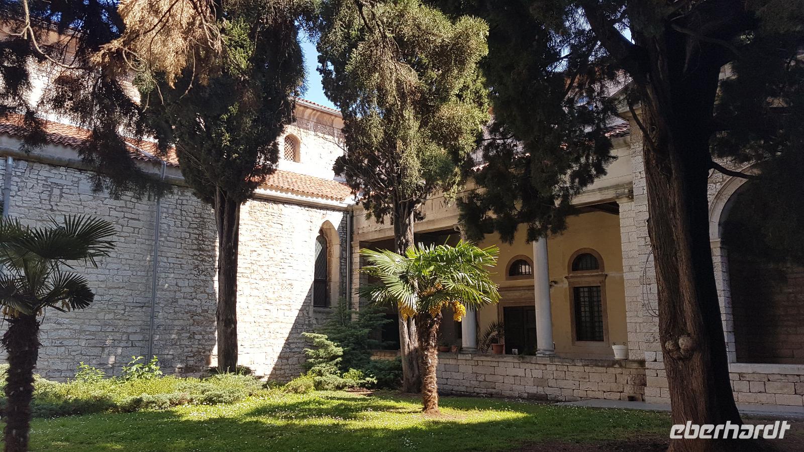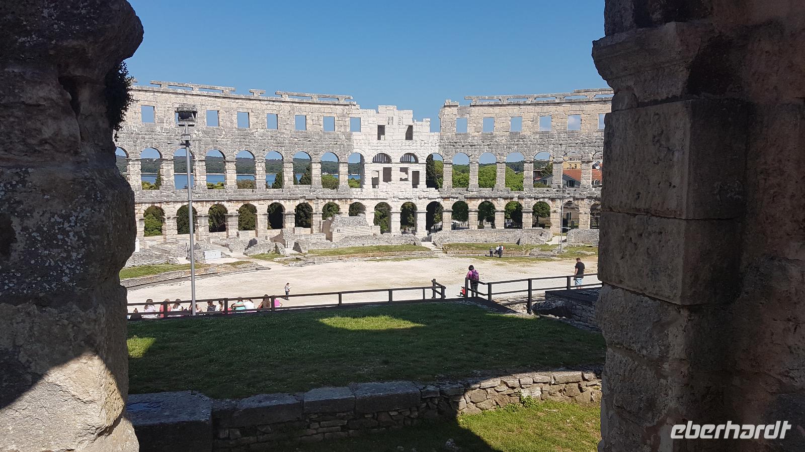 Für unseren freien Tag hat Velle für alle Interessierten eine Schifffahrt nach Rovinj organisiert. Ein Teil der Gäste hat sich für die Schifffahrt angemeldet, andere Teil fuhr lieber mit dem Bus nach Rovinj. Der größeren Busgruppe schloss ich mich an. An der Hotel-Rezeption erhielten wir einen Busfahrplan. Wir trafen uns nach dem gemeinsamen Frühstück um 9:00 Uhr in der Lobby des Hotels und liefen nach Porec, um die Bustickets zu kaufen. Da wir noch Zeit bis zur Abfahrt hatten, besichtigten wir erst noch die Euphrasius-Basilika. Diese Basilika wurde im 6. Jahrhundert errichtet. Vom Glockenturm aus hat man einen wunderbaren Blick in alle Richtungen. Die Busfahrt nach Rovinj dauerte eine knappe Stunde. Dort angekommen, kauften wir uns direkt das Ticket für die Rückfahrt und hatten dann rund vier Stunden Zeit für die Besichtigung dieses schönen Städtchens. Wir schlenderten durch die Gassen in Richtung der Kirche der Heiligen Euphemia. Diese Kirche wurde im 18. Jahrhundert errichtet und steht auf einem Hügel der Stadt. Wir besichtigten sie von innen, verzichteten jedoch auf den Turm-Aufstieg, da dieser eher schwierig zu bewältigen ist. Für den Weg zurück nahmen wir eine andere Gasse und schauten auch in das eine oder andere Geschäft hinein. In einem Café machten wir eine Verschnaufpause. Danach schauten wir uns noch ein wenig den Hafen an und gingen zurück zur Bushaltestelle, wo auch nach kurzer Zeit der Bus kam und uns nach Porec zurückbrachte. Beim gemeinsamen Abendessen trafen wir unsere Schiffsfahrer wieder, die uns von einem sehr schönen Ausflug berichteten und so konnten wir den Tag gemeinsam auswerten und uns austauschen.