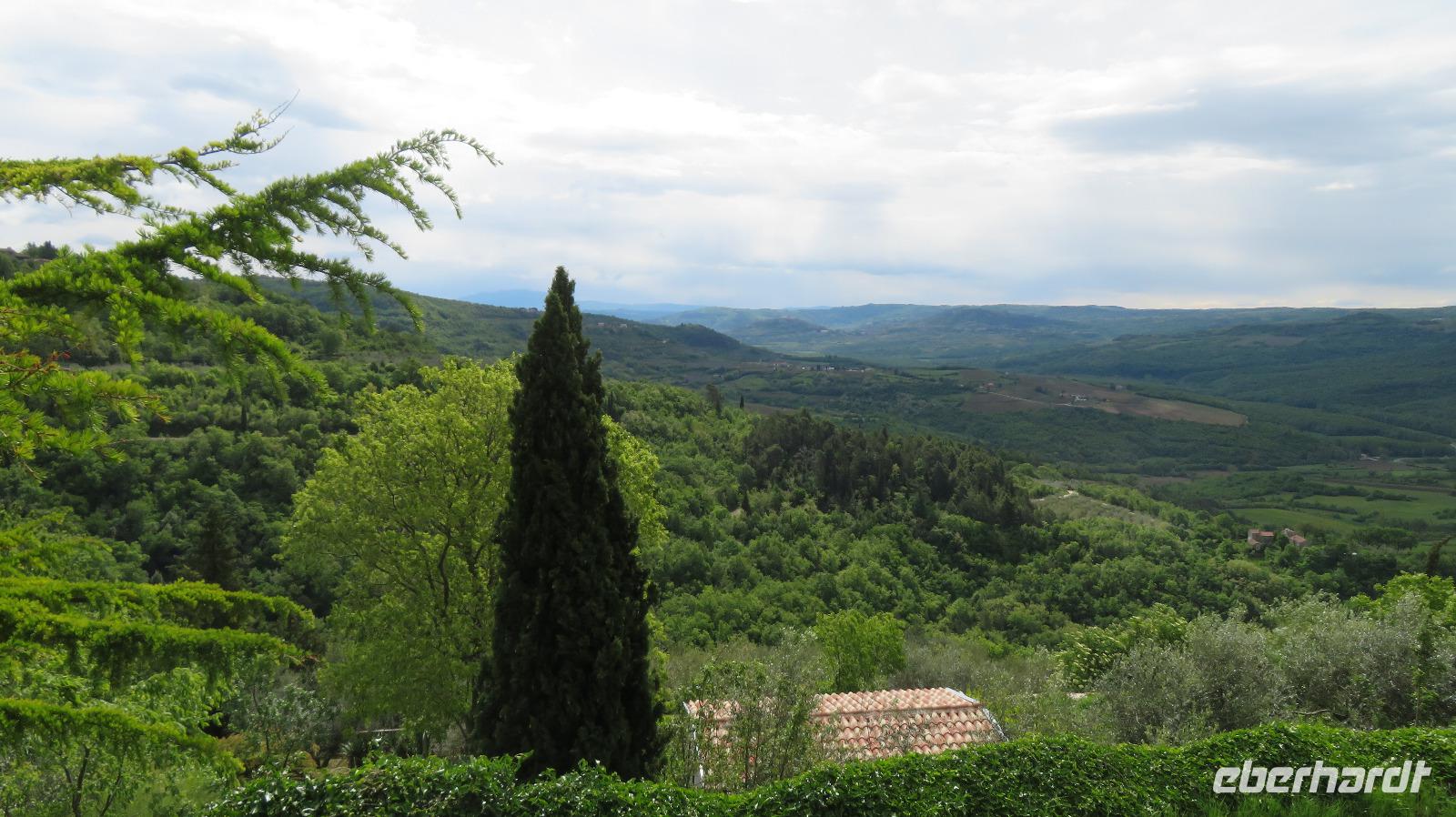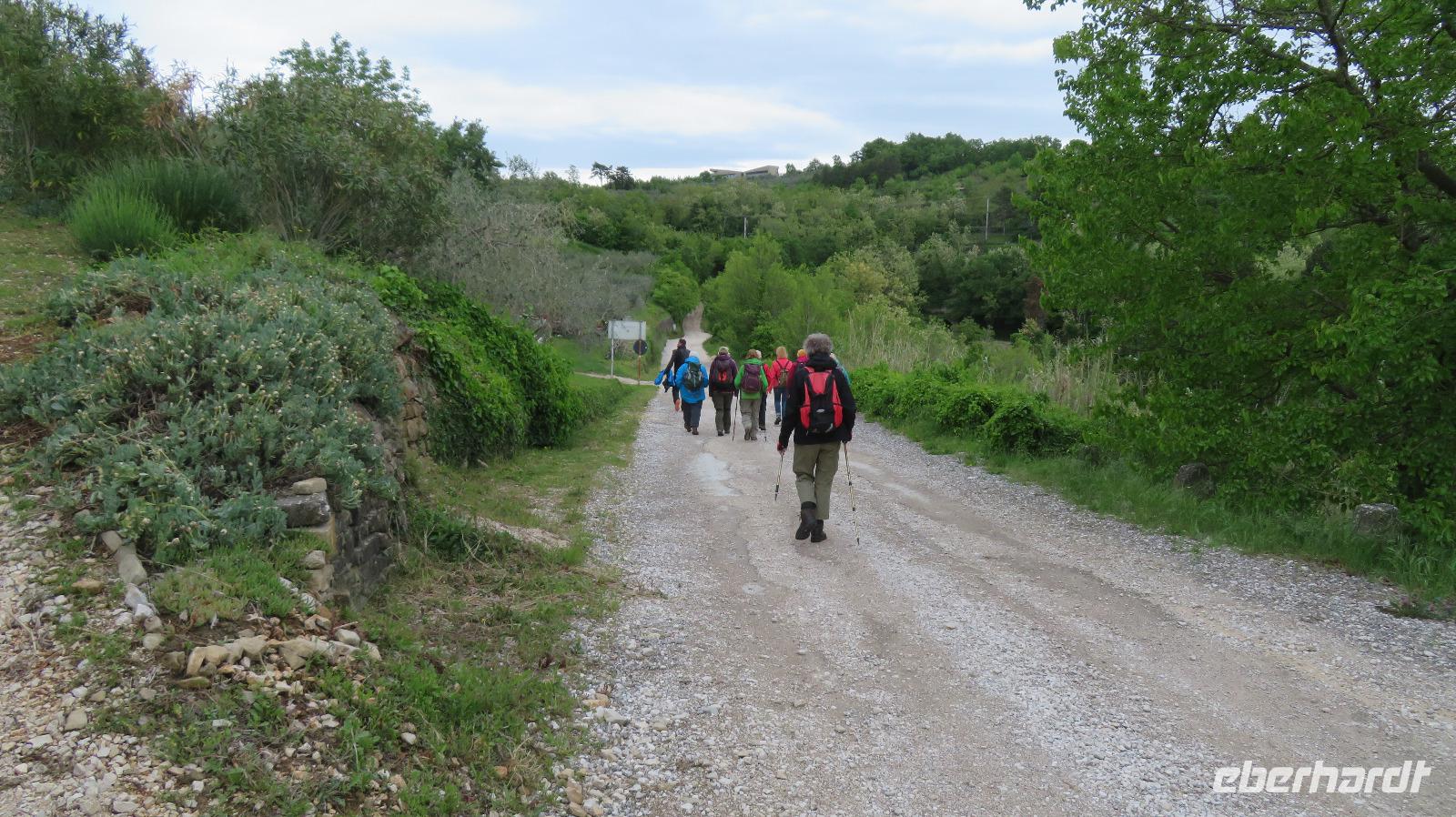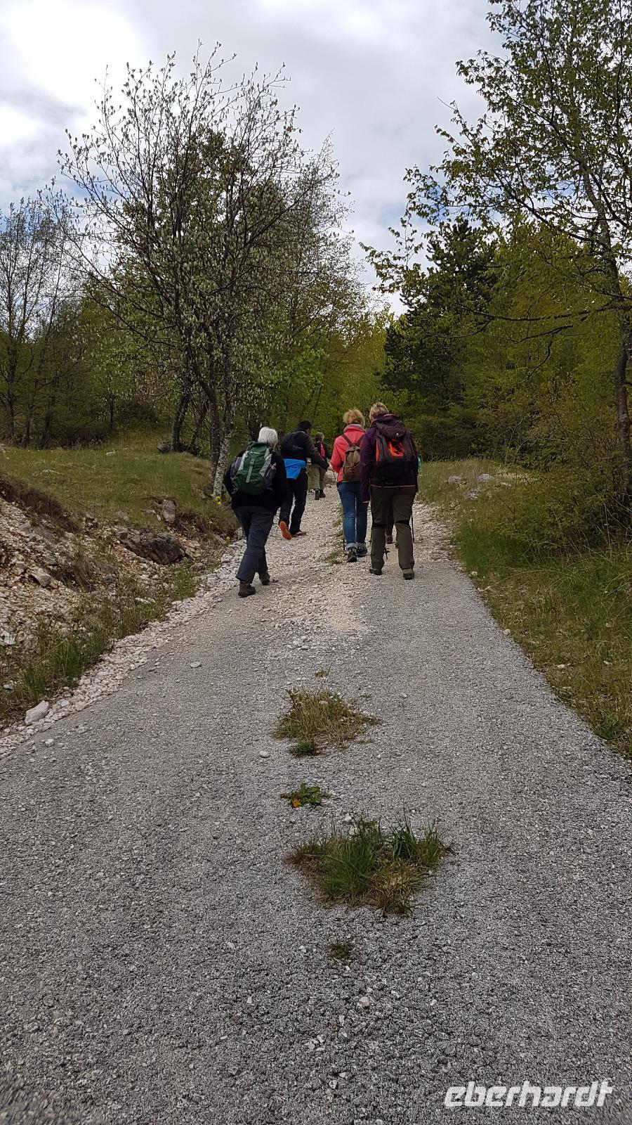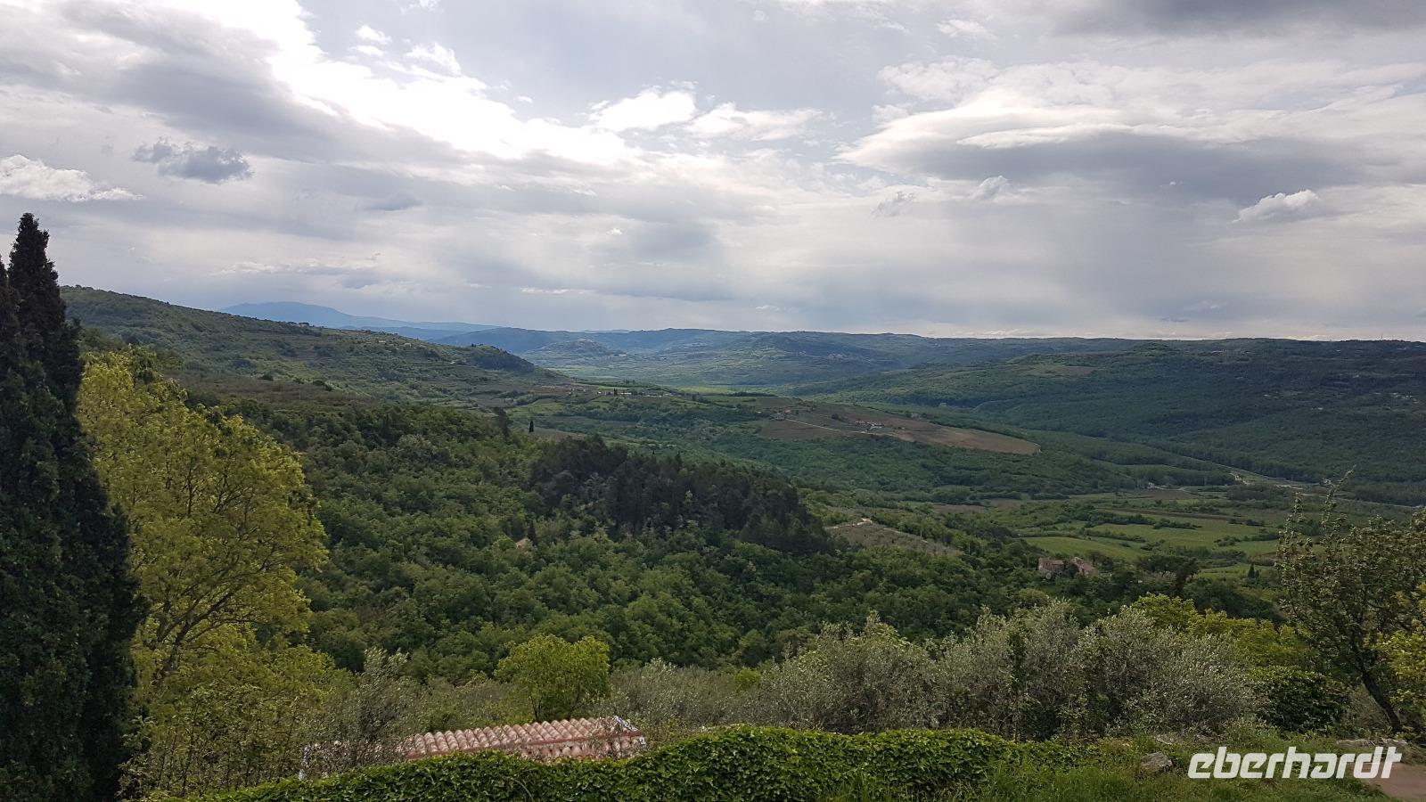 Auch heute wurde die Wanderung aufgrund der Wettervorhersage getauscht. Nach dem gemeinsamen Frühstück brachte uns unser Busfahrer in einem Supermarkt und anschließend in den Künstlerort Groznjan, von dem wir auf einer still gelegten Bahntrasse bis in den Ort Livade wanderten. Groznjan ist ein wunderschönes Bergdorf mit Ateliers und Künstlerläden. Wir schlenderten durch die kleinen Gassen und tranken einen Kaffee, bevor unsere Wanderung begann. Es ging langsam, aber stetig bergab in Richtung Tal. Das Wetter meinte es sehr gut, es war perfektes Wanderwetter und es kam auch ab und zu die Sonne raus. Der Weg führte durch mehrere Tunnel und Brücken um mehrere Berge herum immer weiter ins Tal. Wir genossen den Panoramablick, über den großen Trüffelwald im Tal und auf den Berg Ucka, der unser Ziel am nächsten Tag sein sollte. Nach rund 20 km kamen wir im Dorf Livade an, in dem wir in einem Gasthof noch etwas tranken, bevor wir vom Busfahrer wieder ins Hotel gefahren wurden. Nach dem gemeinsamen Abendessen fielen die Meisten erschöpft in Ihre Betten.
