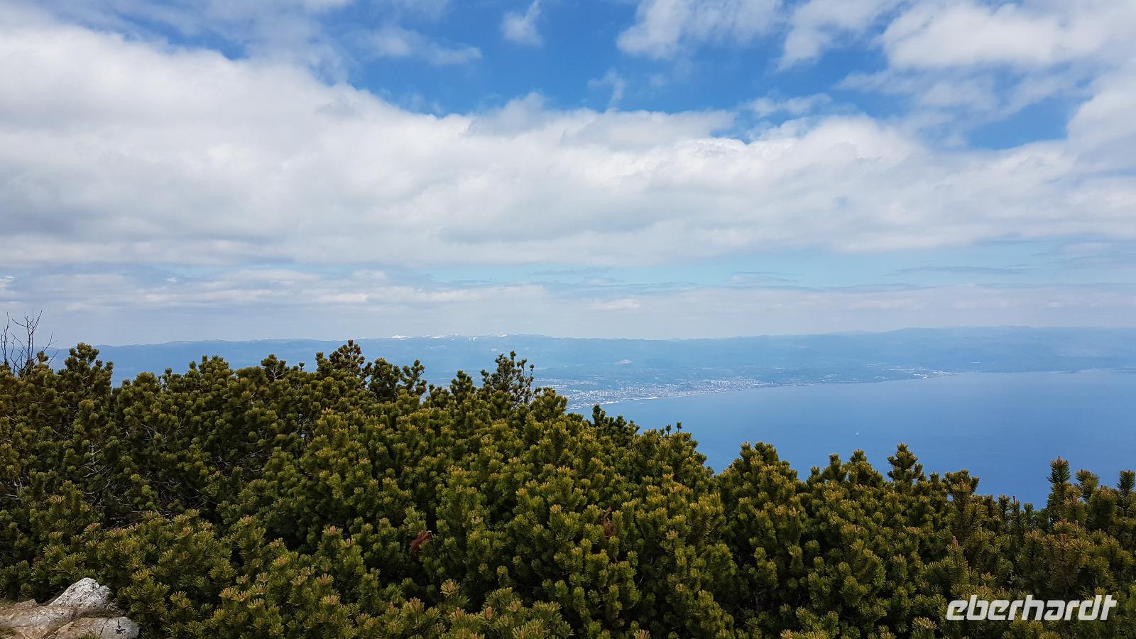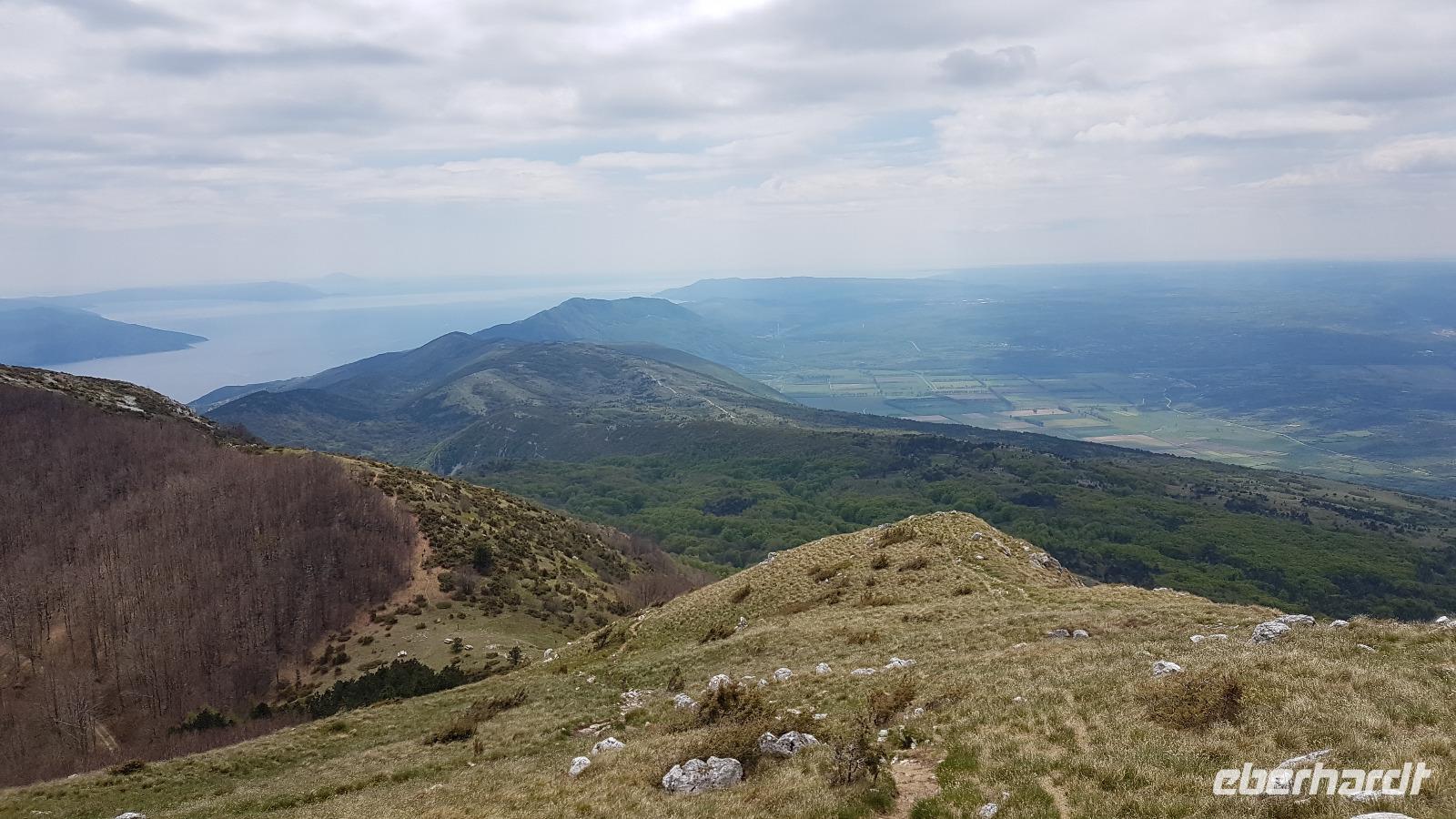 Nach dem gemeinsamen Frühstück fuhren wir wieder zuerst zu einem Supermarkt um uns Wasser und einen Snack zu kaufen. Danach brachte Rajko uns zum Berg Ucka. Dort tranken wir einen Kaffee und begannen gestärkt mit dem Aufstieg. 500 Höhenmeter galt es zu bezwingen. Das Wetter meinte es wieder gut mit uns und so war es doch nicht so kalt wie befürchtet. Durch einen Buchenwald ging es Schritt für Schritt Richtung Gipfel. An der Waldgrenze machten wir eine Pause, eigentlich ist es dort schon ziemlich windig, aber wir hatten Glück und konnten etwas länger den schönen Ausblick genießen. Die letzten Meter bis zum Gipfel waren schnell bezwungen und oben angekommen war der Ausblick fantastisch. Als sich alle satt gesehen hatten, nahmen wir eine andere Route auf der Ostseite des Berges Ucka für den Abstieg. Auf dieser Seite des Berges waren die meisten Bäume noch kahl, da es hier windiger ist. An unserem Ausgangspunkt angekommen, stärkten wir uns bei einem Stück Strudel. Velle hatte außerdem getrocknete Feigen von seiner Familie zum Probieren mit. Am Hotel angekommen, verabredeten wir uns erneut für 19:00 Uhr zum Abendessen, bei dem wir den gemeinsamen Tag auswerteten. Ein Teil der Reisegruppe machte anschließend noch einen kleinen Spaziergang zum Meer.