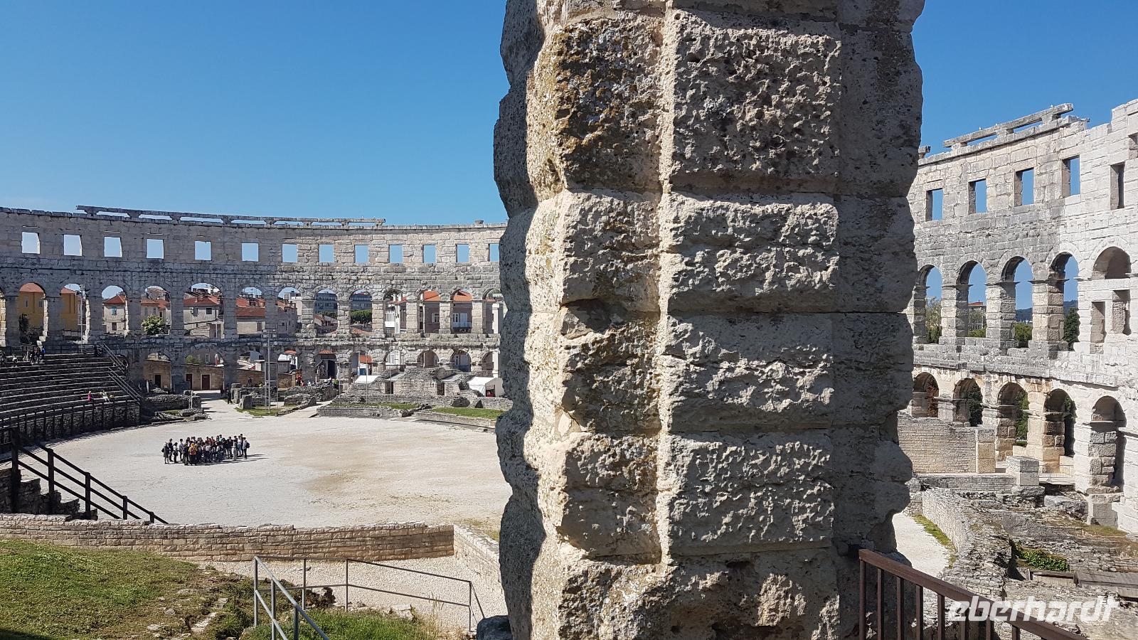 Am Tag unserer letzten Wanderung trafen wir uns nochmal alle zusammen zum gemeinsamen Frühstück bevor es nach Pula ging. Wir besichtigten in Pula zuerst das beeindruckende Amphitheater, welches die Römer vor rund 2000 Jahren erbaut haben. Heute wird es noch für Veranstaltungen genutzt. Wir konnten uns gut vorstellen wie die Atmosphäre hier sein mag, wenn ein Konzert stattfindet. Danach spazierten wir durch die Gassen von Pula. Wir ließen uns treiben, tranken noch einen Kaffee und trafen uns nach ca. zwei Stunden wieder am Hafen, wo uns unser Bus zum Startpunkt unserer heutigen Wanderung brachte. Bei schönstem Sonnenschein liefen wir in Richtung des südlichsten Punkt von Istrien. Der Weg entlang der Küste war traumhaft schön, mehr als einmal wären wir gern einfach ins Wasser gesprungen. Die Wassertemperatur betrug jedoch nur 14 °C, dies wäre dann doch etwas zu frisch geworden. Ein Fotomotiv jagte das nächste, sodass wir oft stehen blieben und die Aussicht genossen. Angekommen am südlichsten Punkt Istriens, machten wir eine Pause. Als Rückweg nutzten wir die einzige Zufahrtsstraße. Von hier konnten wir Wildschweine beobachten- sehr beeindruckend! Gegen 18 Uhr kamen wir wieder am Hotel an, wo Velle uns seinen eigenen Salbeischnaps zur Verkostung ausschenkte. Auch hatte er sein Olivenöl und getrocknete Feigen dabei. Für jeden Gast bestand auch die Möglichkeit etwas zu für zu Hause zu kaufen. Wir verabschiedeten uns herzlich von Velle und verabredeten uns zum letzten gemeinsamen Abendessen, an dem wir die Wanderungen nochmal Revue passieren ließen. Am Abend stießen wir nochmal auf die schöne Woche an, bevor wir unsere Sachen packten. Von zwei Gästen verabschiedeten wir uns schon einmal, da sie erst später am Samstag abreisten.