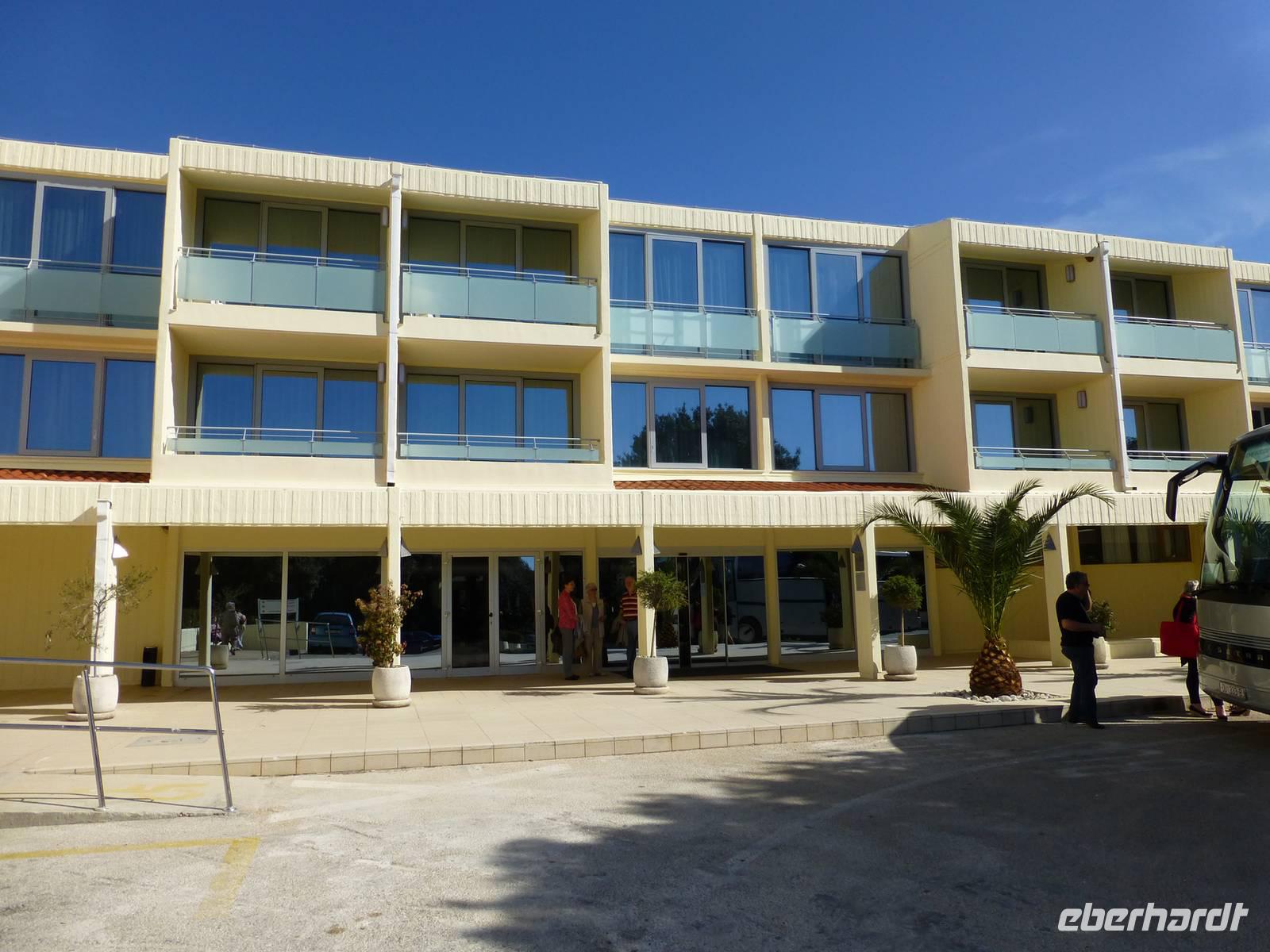 Wir treffen uns gegen Mittag auf dem Dresdner Flughafen um gemeinsam über München nach Dubrovnik zu fliegen. Alles klappt reibungslos, auch die recht kurze Umsteigezeit in München passt. Beide Flüge sind angenehm, zu unserer Überraschung war das Flugzeug nach Dubrovnik nur zur Hälfte gefüllt. Nach Einreise und dem aufnehmen der Koffer empfängt uns unser örtlicher Reiseleiter Niko. Vom Flughafen fahren wir direkt zum Hotel, Niko gibt uns schon einige Informationen. Die Natur sieht hier schon viel freundlicher aus als zu Hause, es blüht schon die Iris am Straßenrand. Das Hotel Valamar Argosy Hotel liegt etwas außerhalb der Altstadt von Dubrovnik auf der Halbinsel Babin kuk. Vor dem Abendessen treffen wir uns noch zu einem Begrüßungsgetränk in der Lobby. Wir stoßen mit einem Grappa oder auch Oragensaft an. Niko erläutert noch einiges zum Programm der nächsten Tage. Danach lassen wir uns das vorzügliche Abendessen im Bufetrestaurant des Hotels schmecken.
