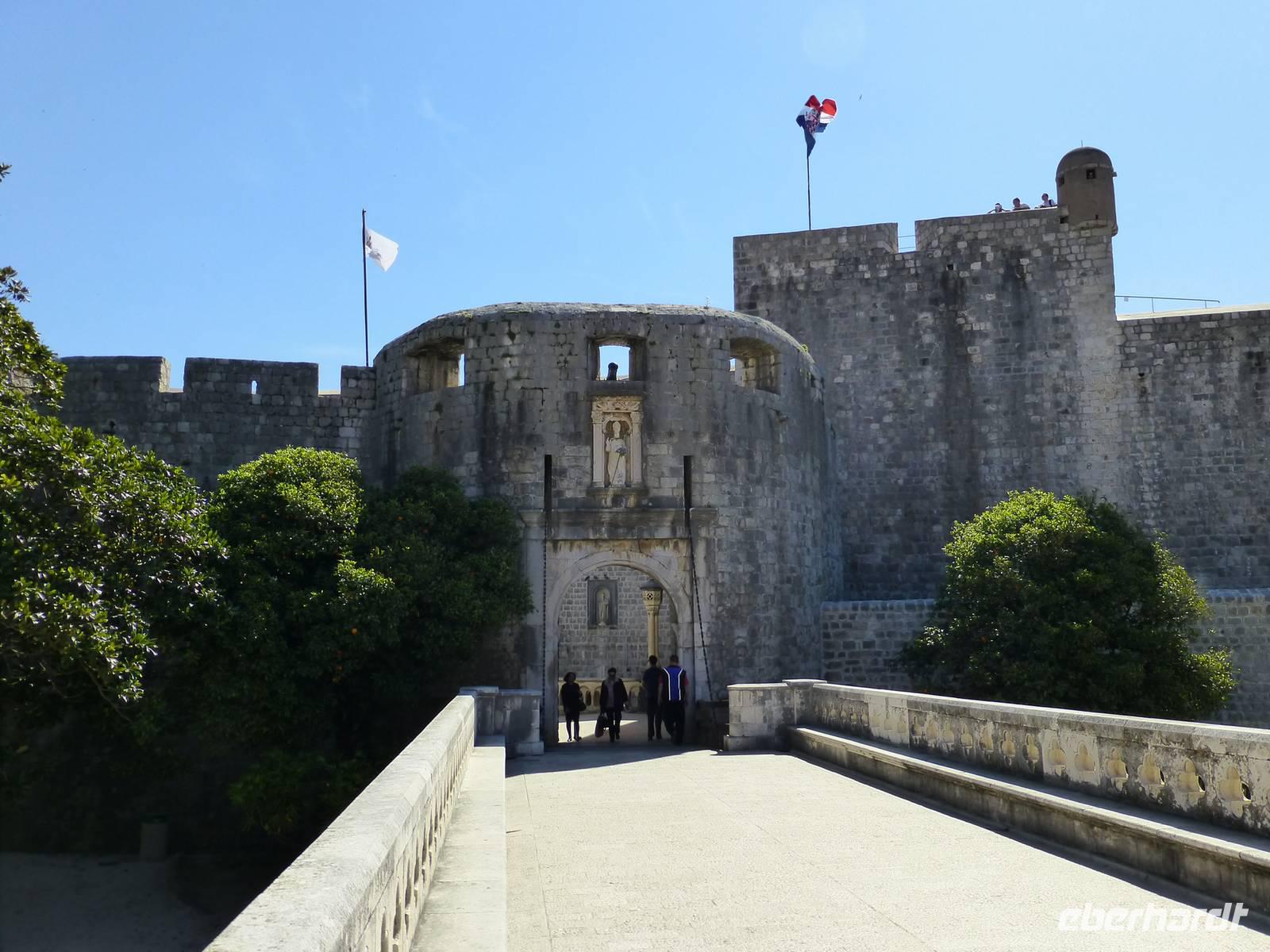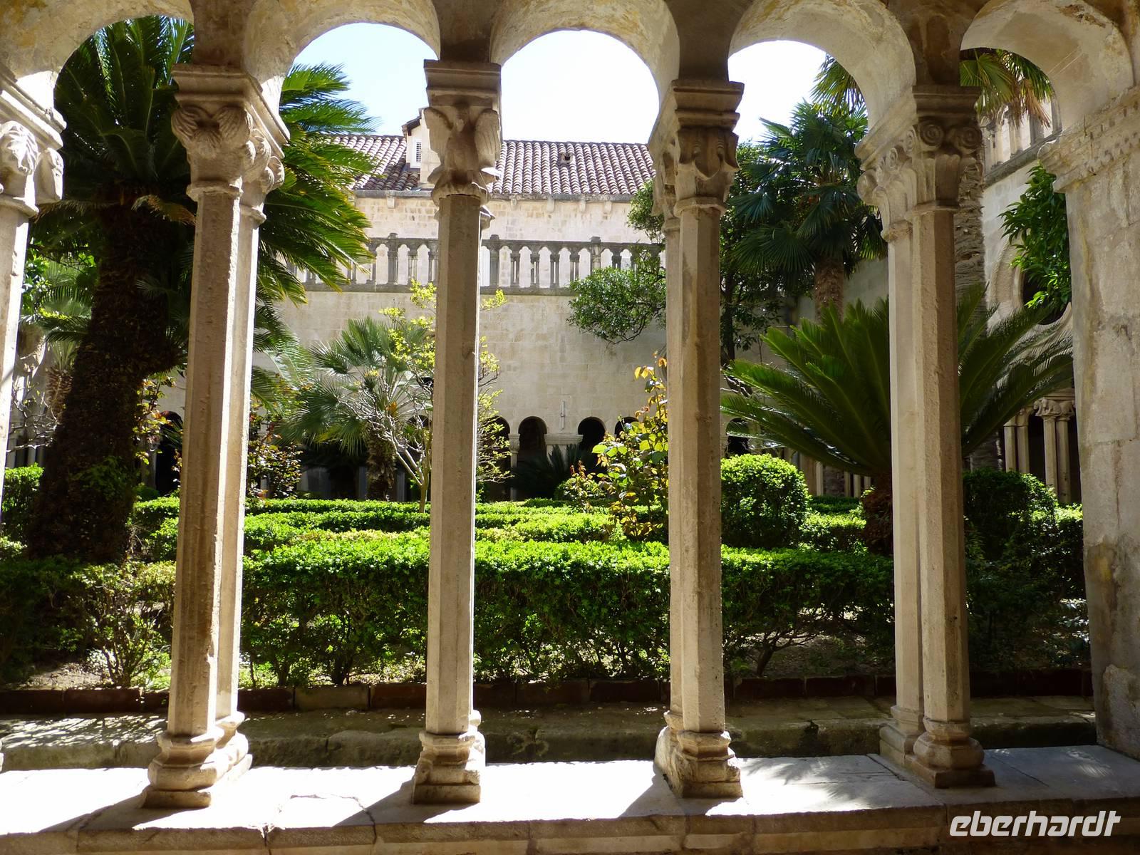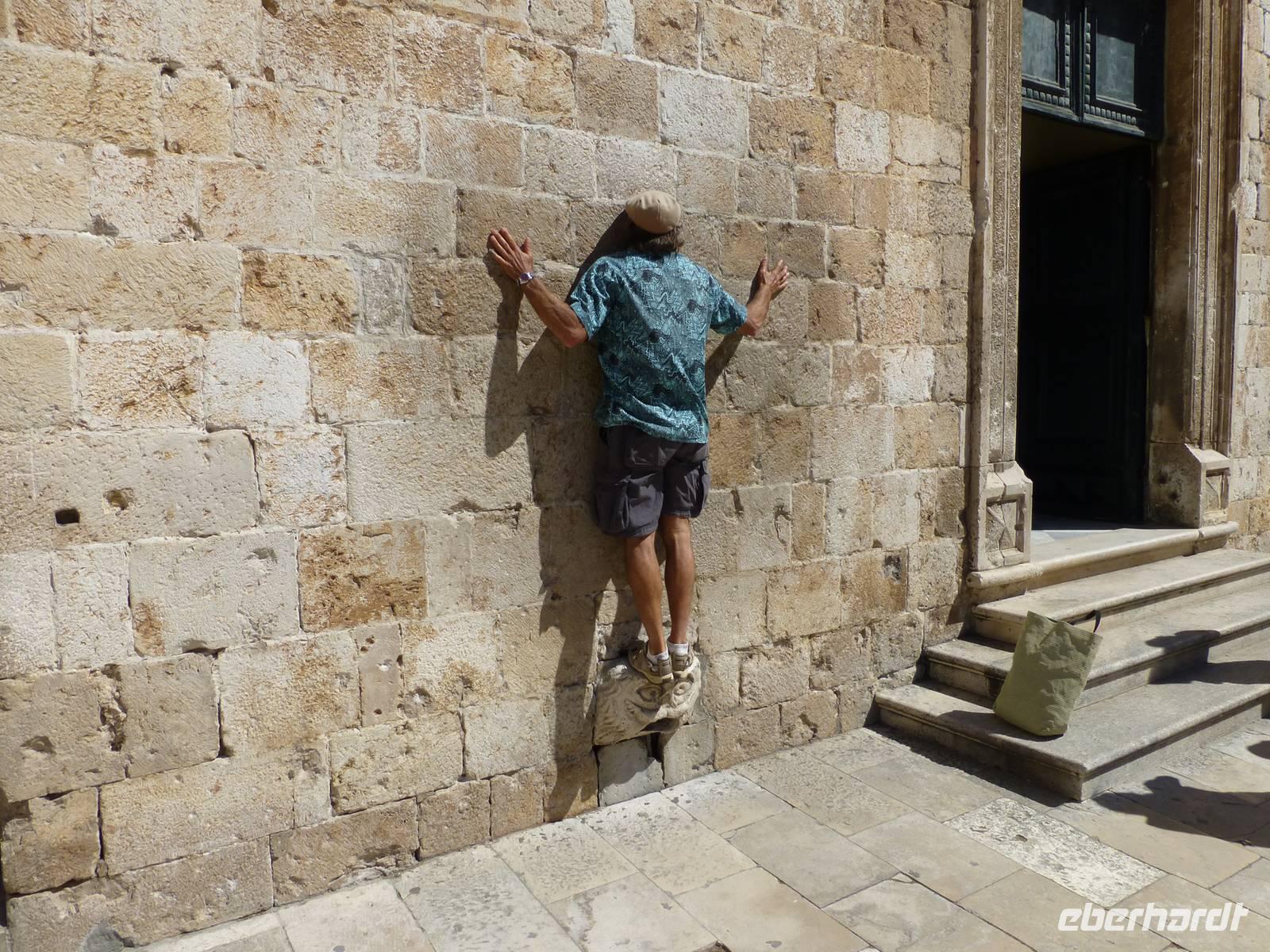 Nach einem reichhaltigen und entspanntem Frühstück holt uns Niko kurz vor 10 Uhr mit dem Bus am Hotel ab. Nur wenige Minuten fahren wir bis zum Stadtzentrum und verlassen am Pile Platz wieder den Bus. Vor uns sehen wir zum eine schon die mächtige Stadtmauer von Dubrovnik und zum anderen das Fort Bokar, eine vorgelagertte Festung, welche gegen Angriffe der Venezianer gebaut wurde. Durch das Pile-Tor betreten wir dann die seit 1979 zum UNESCO-Weltkulturerbe gehörenden Altstadt. Sehr wolhtuend ist, das nur wenige Touristen unterwegs sind. Über dem Stadttor wacht übrigens der hl. Blasius, er ist der Schutzpatron von Dubrovnik und hält ein Modell der Stadt in seinen Händen. Die Stadtmauer, welche die Altstadt umgibt ist knapp zwei Kilometer lang, bis zu 25 m hoch und 6 m dick. Begehen kannman sie natürlich auch, aber nur gegen eine Eintrittsgebühr. Dann stehen wir vor dem "Großen Onofriobrunnen", welcher für die Trinkwasserversorgung der Stadt einst sehr wichtig war. Gleich gegenüber befindet sich das Franziskanerkloster. Wir haben es fast für uns allein. Der Kreuzgang ist ein wahres Refugium. An einigen Stellen macht man Restaurierungsarbeiten, denn dike Spuren des letzten Krieges von 2001-2004 sind noch nicht alle beseitigt. Im Kloster befindet sich auch eine der ältesten Klosterapotheken Europas. Wir gehen entlang der Hauptstraße "Stradun", biegen aber auch in die kleineren Gassen ab. Am Placa Luza, der geprägt wird vom markanten Uhrturm, befindet sich auch eine Rolandfigur. Dubrovnik war nie Mitglied der Hanse, aber eine Rolandfigur sollte auch hier schützen. Im Moment ist sie noch die einzige Rolandfigur außerhalb der EU, aber das wird sich dieses Jahr noch ändern. Wir laufen noch vorbei an der baroken Kathedrale "Mariä Himmelfahrt" und erreich dann den Altstadthafen. Hier endet unsere Führung. Es ist jetzt genügend Zeit, die Stadt noch etwas auf eigene Faust zu erkunden oder auch einen kleinen Imbiss zu sich zu nehmen. Gegen 15,30 Uhr bringt der Bus alle die möchten wieder zum Hotel.