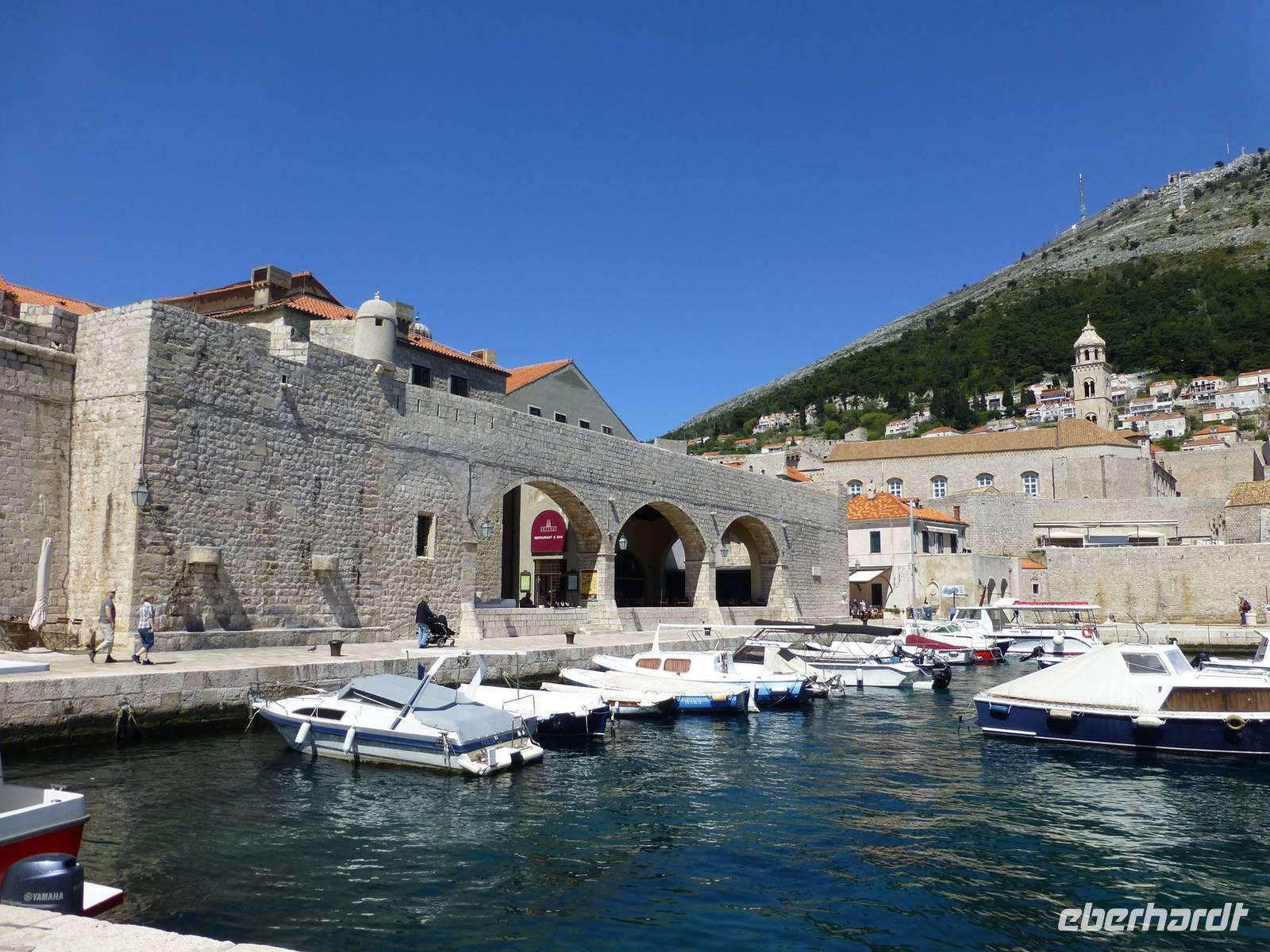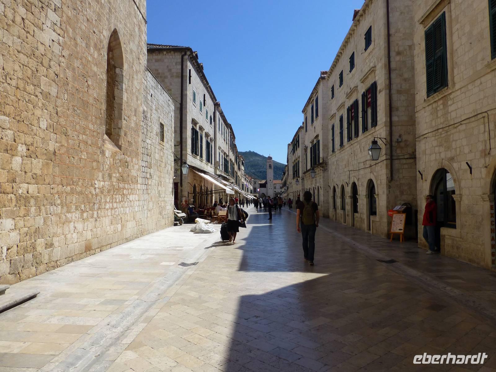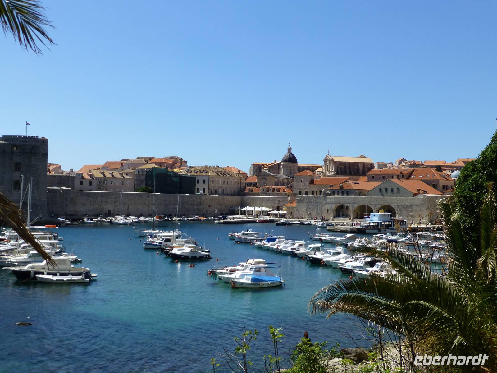 Nach einem reichhaltigen und entspanntem Frühstück holt uns Niko kurz vor 10 Uhr mit dem Bus am Hotel ab. Nur wenige Minuten fahren wir bis zum Stadtzentrum und verlassen am Pile Platz wieder den Bus. Vor uns sehen wir zum eine schon die mächtige Stadtmauer von Dubrovnik und zum anderen das Fort Bokar, eine vorgelagertte Festung, welche gegen Angriffe der Venezianer gebaut wurde. Durch das Pile-Tor betreten wir dann die seit 1979 zum UNESCO-Weltkulturerbe gehörenden Altstadt. Sehr wolhtuend ist, das nur wenige Touristen unterwegs sind. Über dem Stadttor wacht übrigens der hl. Blasius, er ist der Schutzpatron von Dubrovnik und hält ein Modell der Stadt in seinen Händen. Die Stadtmauer, welche die Altstadt umgibt ist knapp zwei Kilometer lang, bis zu 25 m hoch und 6 m dick. Begehen kannman sie natürlich auch, aber nur gegen eine Eintrittsgebühr. Dann stehen wir vor dem "Großen Onofriobrunnen", welcher für die Trinkwasserversorgung der Stadt einst sehr wichtig war. Gleich gegenüber befindet sich das Franziskanerkloster. Wir haben es fast für uns allein. Der Kreuzgang ist ein wahres Refugium. An einigen Stellen macht man Restaurierungsarbeiten, denn dike Spuren des letzten Krieges von 2001-2004 sind noch nicht alle beseitigt. Im Kloster befindet sich auch eine der ältesten Klosterapotheken Europas. Wir gehen entlang der Hauptstraße "Stradun", biegen aber auch in die kleineren Gassen ab. Am Placa Luza, der geprägt wird vom markanten Uhrturm, befindet sich auch eine Rolandfigur. Dubrovnik war nie Mitglied der Hanse, aber eine Rolandfigur sollte auch hier schützen. Im Moment ist sie noch die einzige Rolandfigur außerhalb der EU, aber das wird sich dieses Jahr noch ändern. Wir laufen noch vorbei an der baroken Kathedrale "Mariä Himmelfahrt" und erreich dann den Altstadthafen. Hier endet unsere Führung. Es ist jetzt genügend Zeit, die Stadt noch etwas auf eigene Faust zu erkunden oder auch einen kleinen Imbiss zu sich zu nehmen. Gegen 15,30 Uhr bringt der Bus alle die möchten wieder zum Hotel.