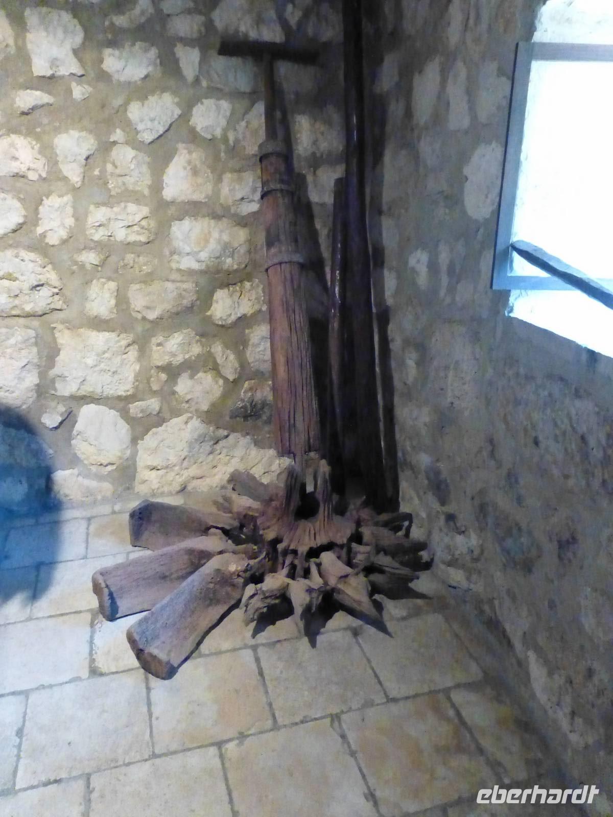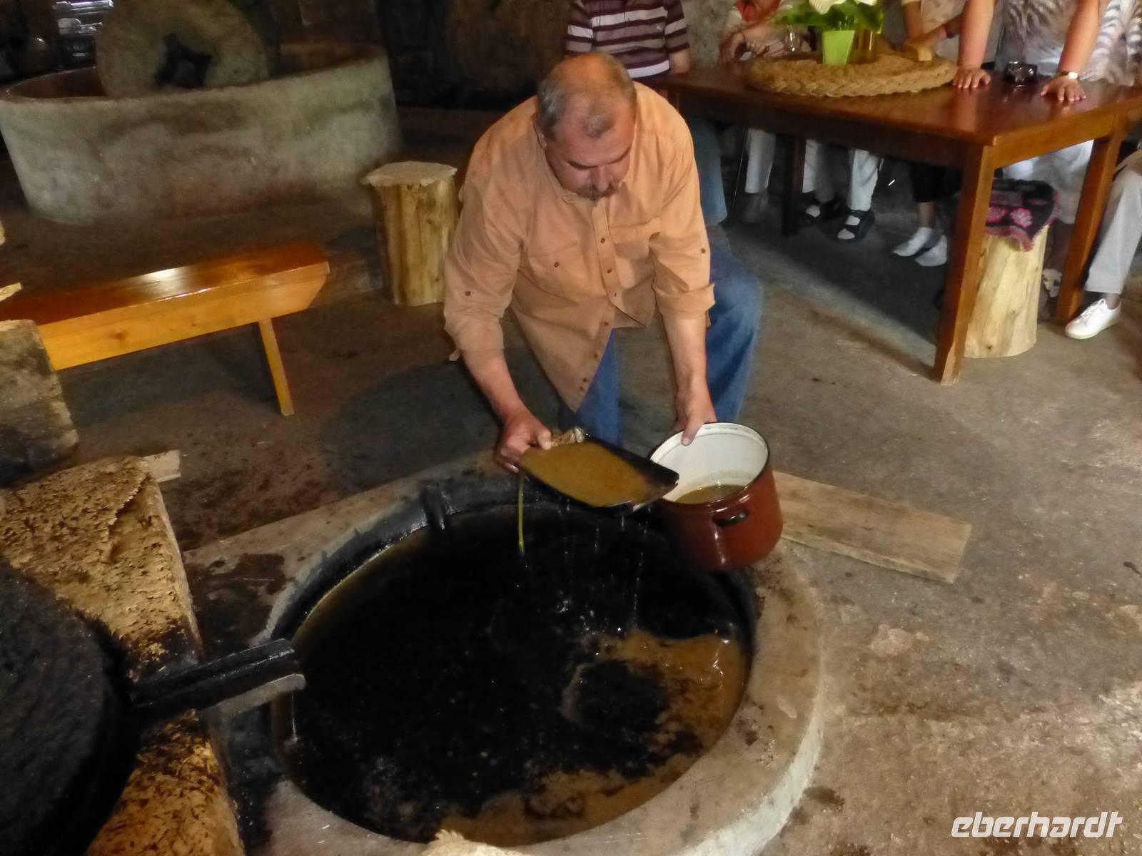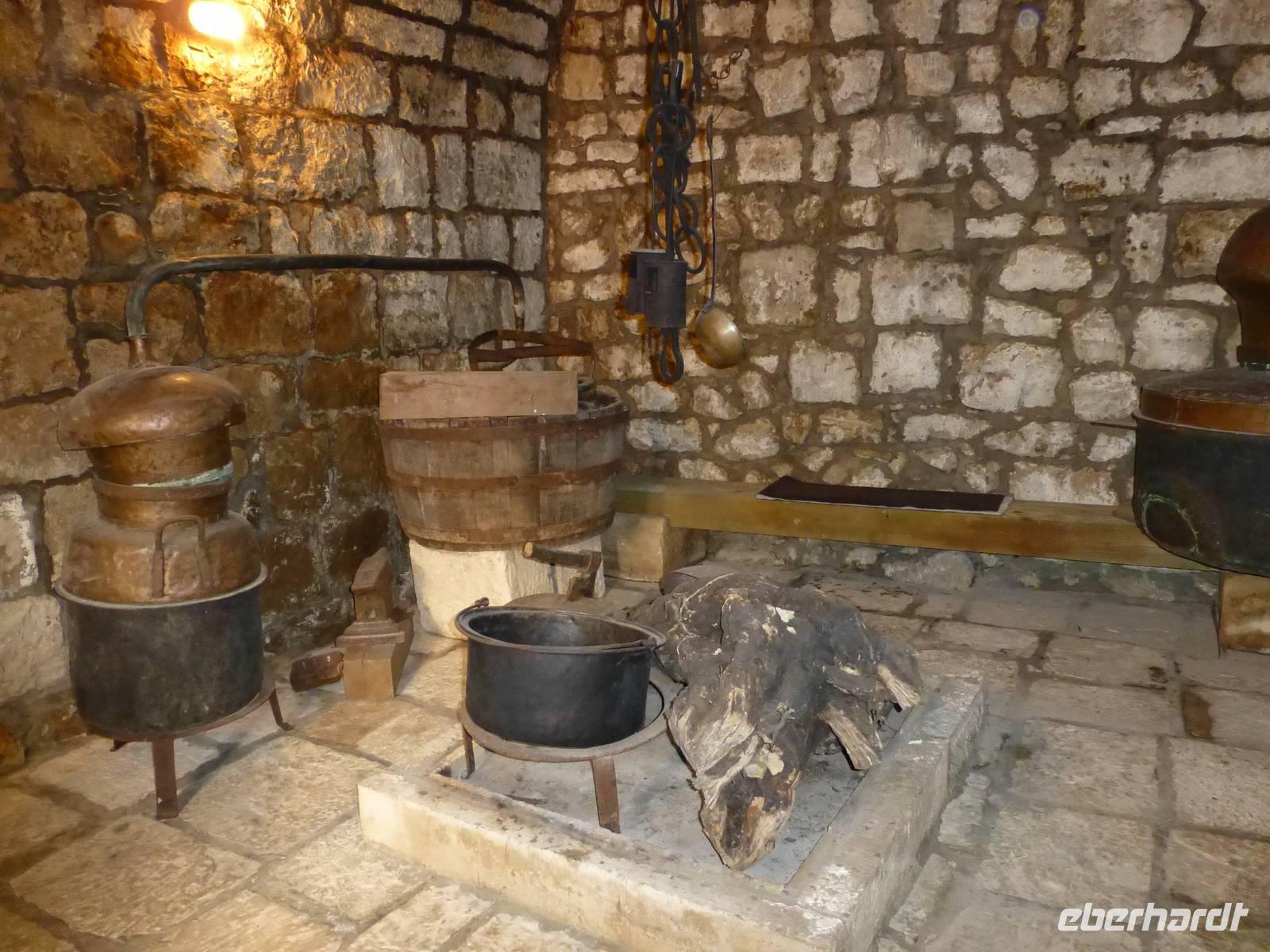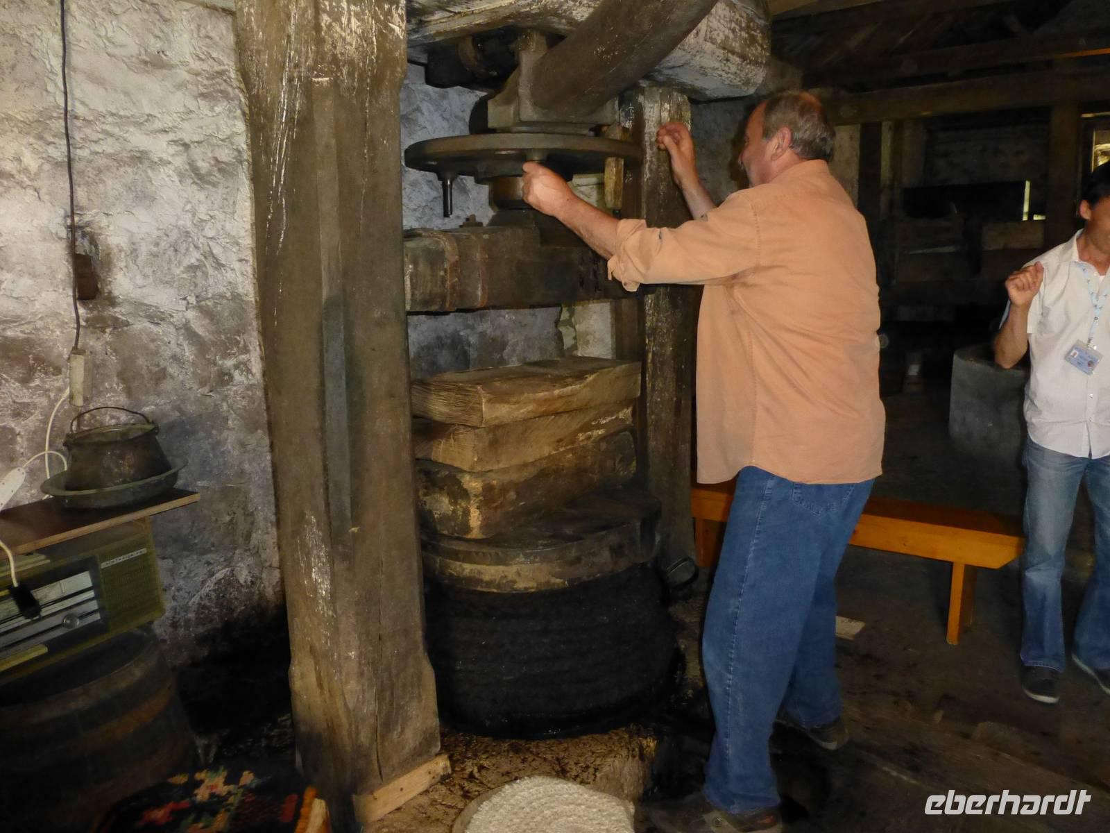 Nach einem späten Frühstück fahren wir in die südlichste kroatische Region, Konavle. Die Straße führt uns dabei, mit wunderschönen Ausblicken, immer am Meer entlang. Den zentralen Teil von Konavle bildet das Konavler Feld, ein fruchtbarer Landstrich, welcher von mehreren Flüssen durchzogen wird. Beim Dorf Ljuta besuchen wir zwei mit Wasserkraft angetriebene Mühlen. Der heutige Besitzer hat diese in den letzten Jahren restauriert und freut sich über interessierte Besucher. Begrüßt werden wir mit selbst hergestelltem Likör, getrockneten Feigen, kandierten Orangenschalen und kandierten Mandel. Alles schmeckt hervorragend und wir genießen es. Die erste Mühle diente als Getreidemühle. Niko erklärt uns wie der Mühlstein hier funktioniert und wie er angetrieben wird. Und natürlich sehen wir auch wie die Mühle, in unserem Falle Mais, zu Mehl malt. Einige Schritte entfernt befindet sich eine weitere Mühle, die wir eigentlich so nur vom Namen kennen. Es ist eine Walkmühle. Mit ihr wurden handgewebte grobe Stoffe gewalkt, das heißt sie wurden mit zwei durch Wasserkraft angetriebene Holzhämmer "weichgeklopft". Natürlich können wir auch sehen wie das funktioniert. Die Mühlen sind sehr Idyllisch gelegen, unter Bäumen neben einem rauschenden Bach und einigen Wasserkanälen.