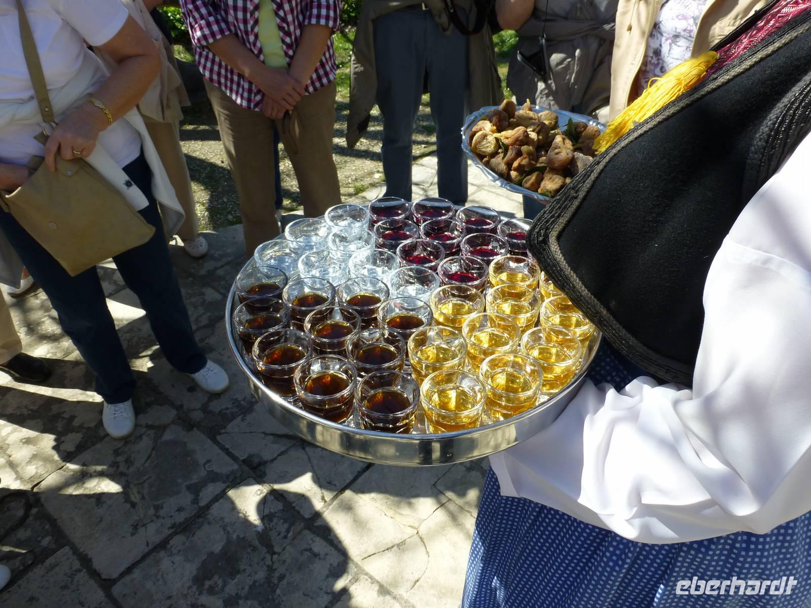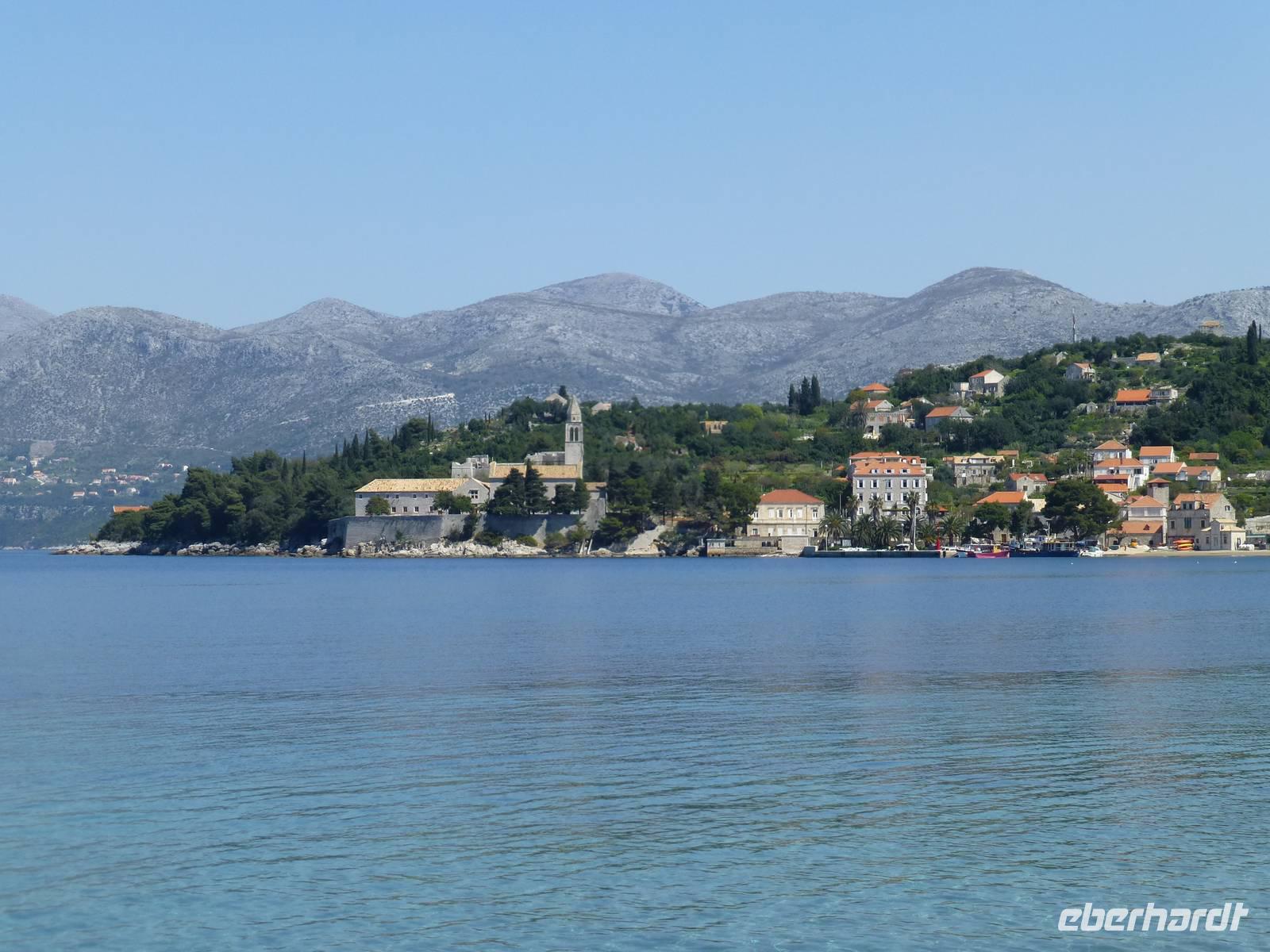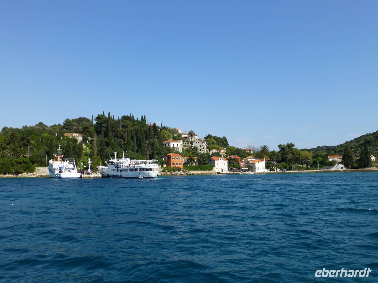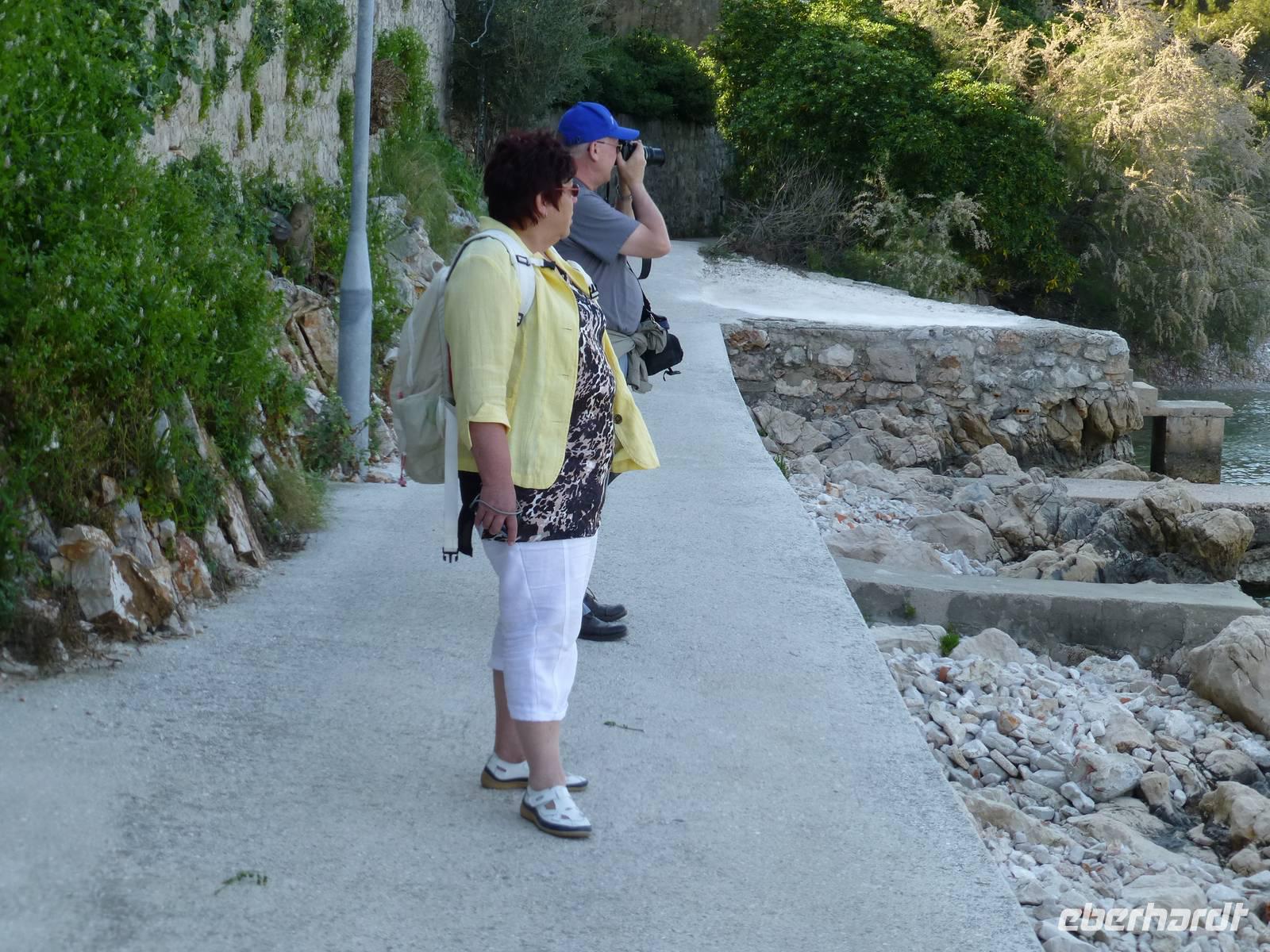 Heute haben wir die Möglichkeit für einen fakultativen Ausflug zu den Elaphitischen Inseln. Auf Deutsch heißen sie "Hirschinseln", es leben allerdings keine Hirsche dort. Von 13 Inseln sind auch nur drei bewohnt. Zuerst fährt unser Boot, auf welchen wir traditionell mit einem Grappa begrüßt werden, zur Insel Lopud. Während der Fahrt genießen wir Sonne, Wind und Meer. Auf Lopud gibt es nur einen Ort und der heißt so wie die Insel. Hier ist man bei der Vorbereitung der kommenden Reisesaison. Wir machen einen Bummel durch den Ort, besuchen die Pfarrkirche, welche früher die Klosterkirche des Franziskanerklosters war. Über viele Treppenstufen gelangen wir etwas höher und bewundern schon die Blütenpracht in einiegen Gärten, wohltuend für Auge und Seele. Schnell vergeht die Zeit und wir fahren weiter zur Insel Sipan. Hier gibt es zwei Orte, einen im Norden und einen im Süden. Hier ist auch unser Kapitän zu Hause und wir haben die Ehre in seinem Garten zu Mittag zu essen. Wir werden ganz toll bewirtet, wieder einen Grappe, aber auch Wein aus eigener Herstellung. Das Brot ist köstlich und natürlich selbst gebacken, genauso wie der Schinken und der Käse aus eigener Herstellung ist, welchen wir kosten. Eine köstliche Suppe, Salat und frisch gefangener und gegrillter Fisch wird uns dann serviert. Zum Abschluss greift der Kapitän noch zum Accordion und singt für uns. Dann heißt es Abschied nehmen und wir fahren mit dem Boot weiter zur Insel Kolocep. Hier haben wir noch einmal die Möglichkeit uns etwas die Beine zu vertreten bevor wir die Heimreise nach Dubrovnik antreten. Ein schöner Tag, der uns dalmatische Gastfreundschaft noch ein Stück näher gebracht hat.