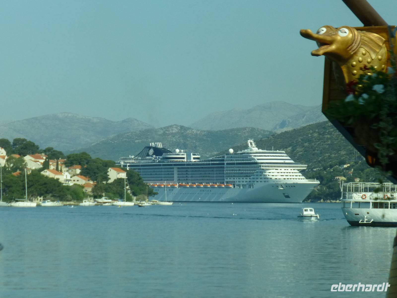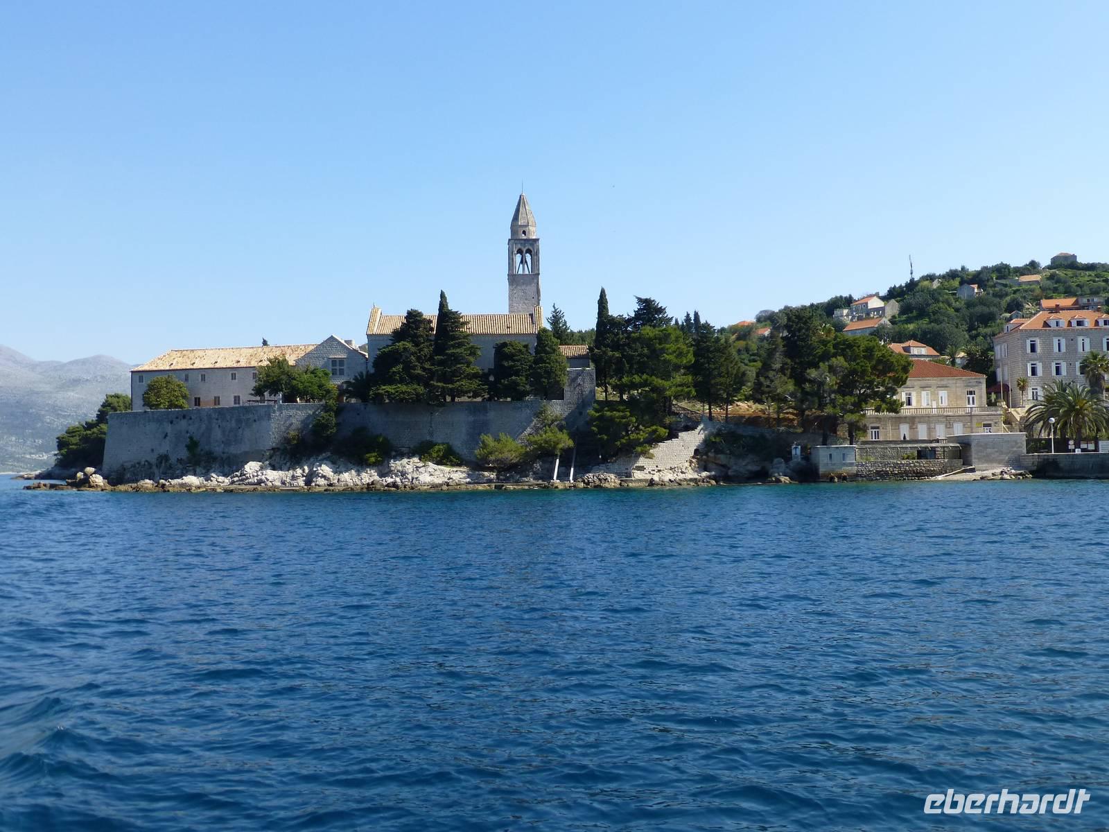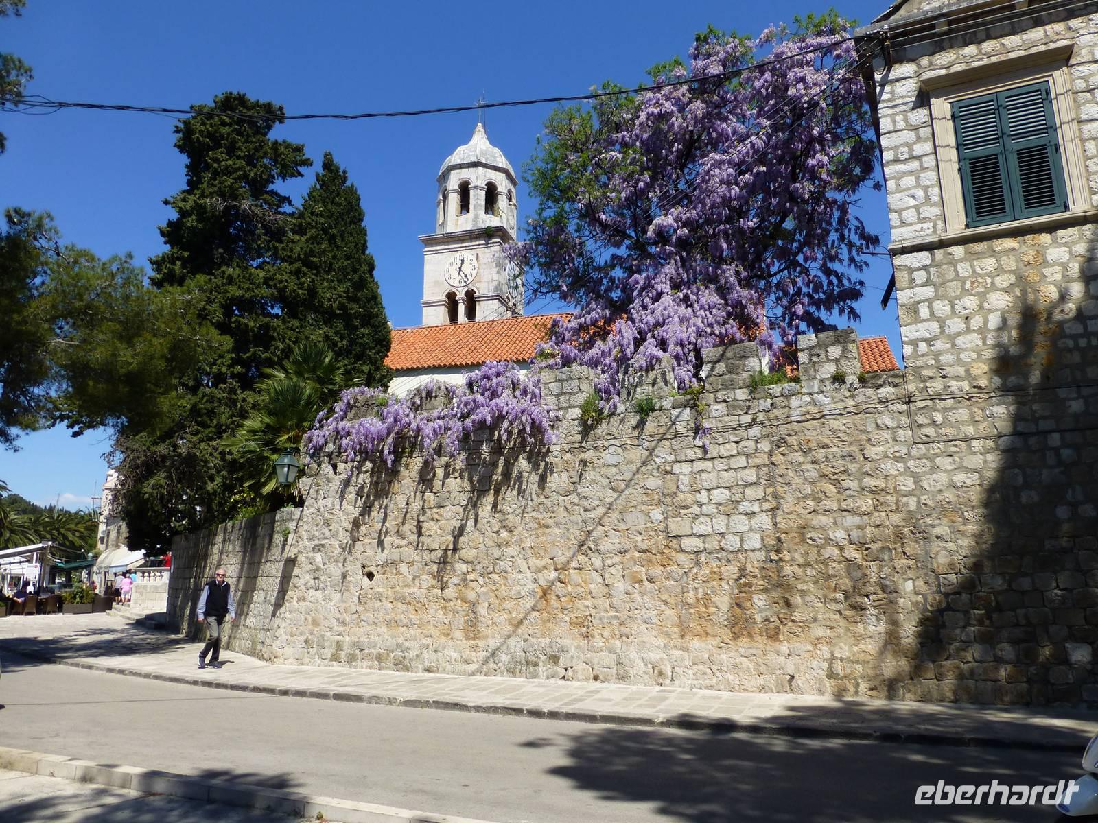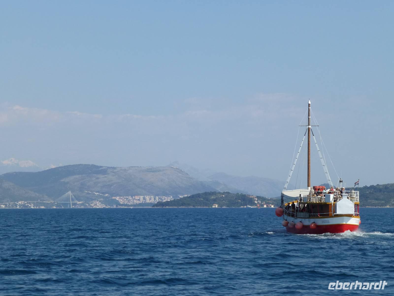 Heute haben wir die Möglichkeit für einen fakultativen Ausflug zu den Elaphitischen Inseln. Auf Deutsch heißen sie "Hirschinseln", es leben allerdings keine Hirsche dort. Von 13 Inseln sind auch nur drei bewohnt. Zuerst fährt unser Boot, auf welchen wir traditionell mit einem Grappa begrüßt werden, zur Insel Lopud. Während der Fahrt genießen wir Sonne, Wind und Meer. Auf Lopud gibt es nur einen Ort und der heißt so wie die Insel. Hier ist man bei der Vorbereitung der kommenden Reisesaison. Wir machen einen Bummel durch den Ort, besuchen die Pfarrkirche, welche früher die Klosterkirche des Franziskanerklosters war. Über viele Treppenstufen gelangen wir etwas höher und bewundern schon die Blütenpracht in einiegen Gärten, wohltuend für Auge und Seele. Schnell vergeht die Zeit und wir fahren weiter zur Insel Sipan. Hier gibt es zwei Orte, einen im Norden und einen im Süden. Hier ist auch unser Kapitän zu Hause und wir haben die Ehre in seinem Garten zu Mittag zu essen. Wir werden ganz toll bewirtet, wieder einen Grappe, aber auch Wein aus eigener Herstellung. Das Brot ist köstlich und natürlich selbst gebacken, genauso wie der Schinken und der Käse aus eigener Herstellung ist, welchen wir kosten. Eine köstliche Suppe, Salat und frisch gefangener und gegrillter Fisch wird uns dann serviert. Zum Abschluss greift der Kapitän noch zum Accordion und singt für uns. Dann heißt es Abschied nehmen und wir fahren mit dem Boot weiter zur Insel Kolocep. Hier haben wir noch einmal die Möglichkeit uns etwas die Beine zu vertreten bevor wir die Heimreise nach Dubrovnik antreten. Ein schöner Tag, der uns dalmatische Gastfreundschaft noch ein Stück näher gebracht hat.