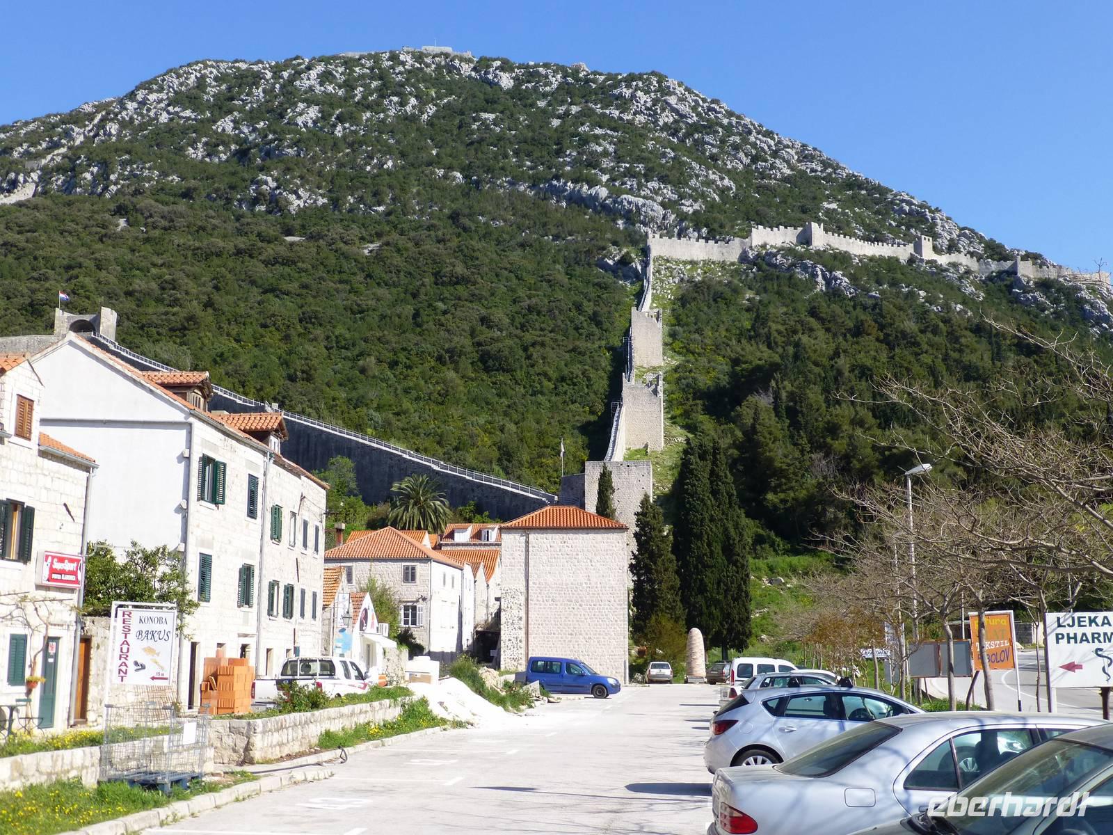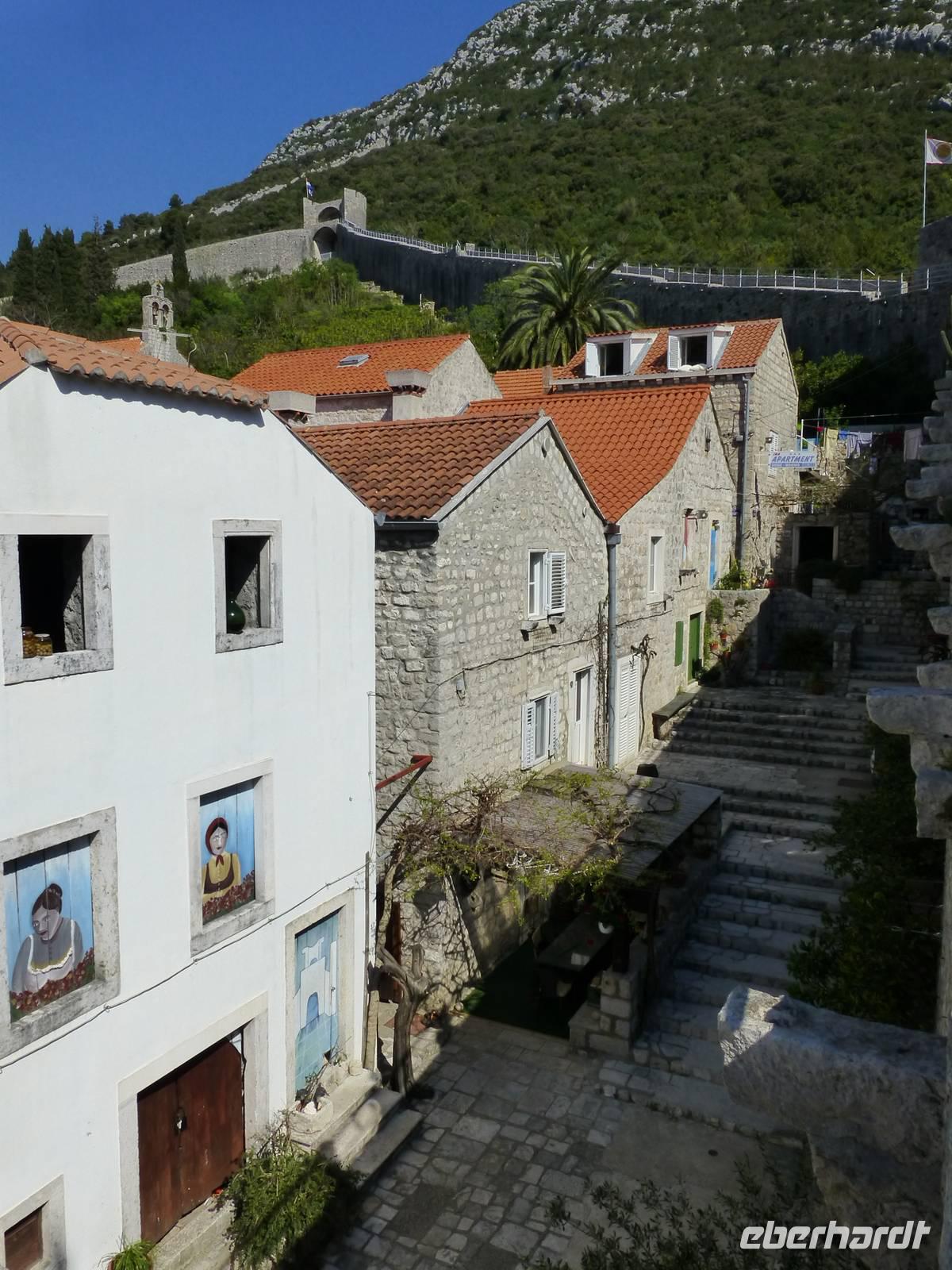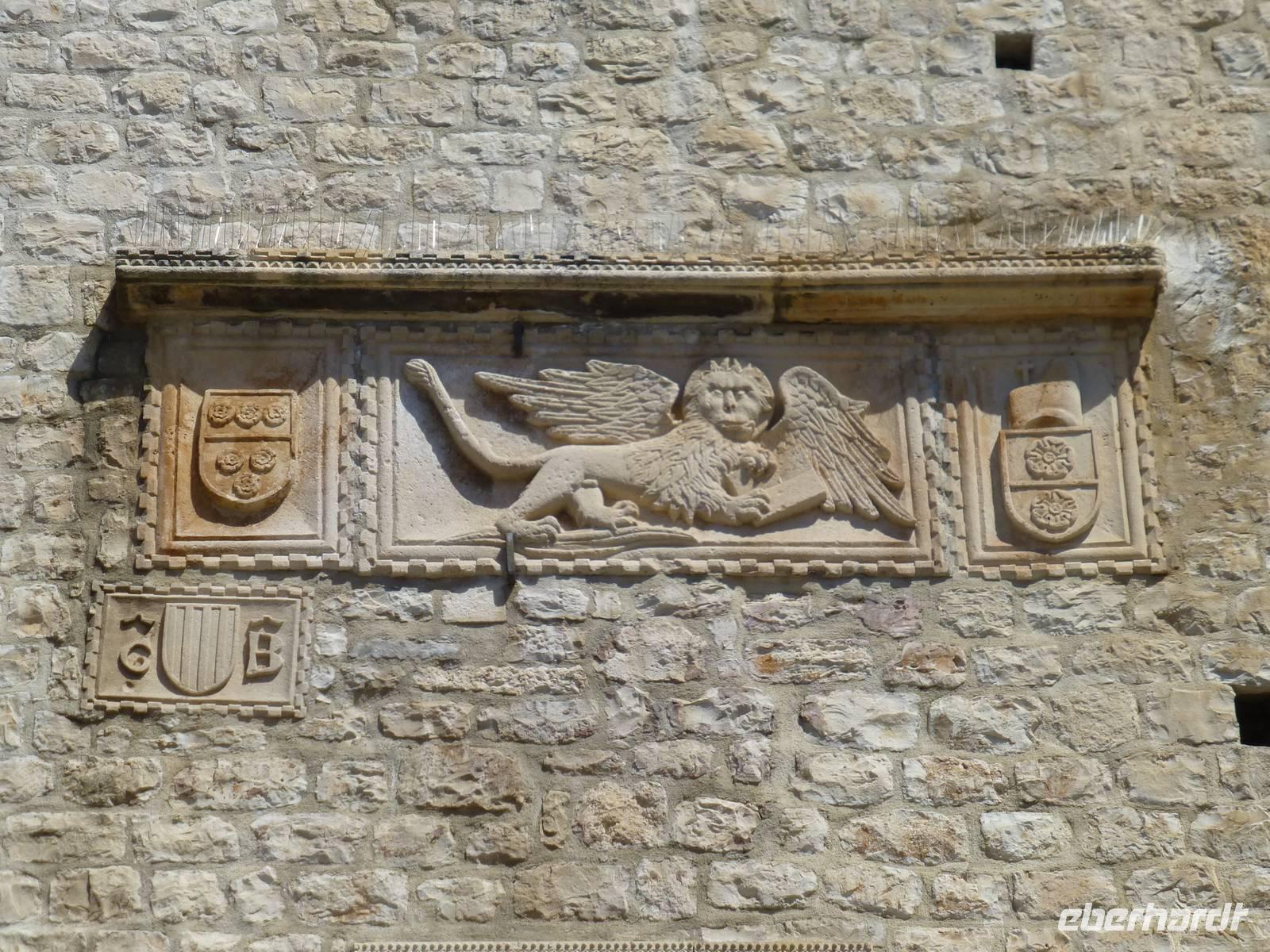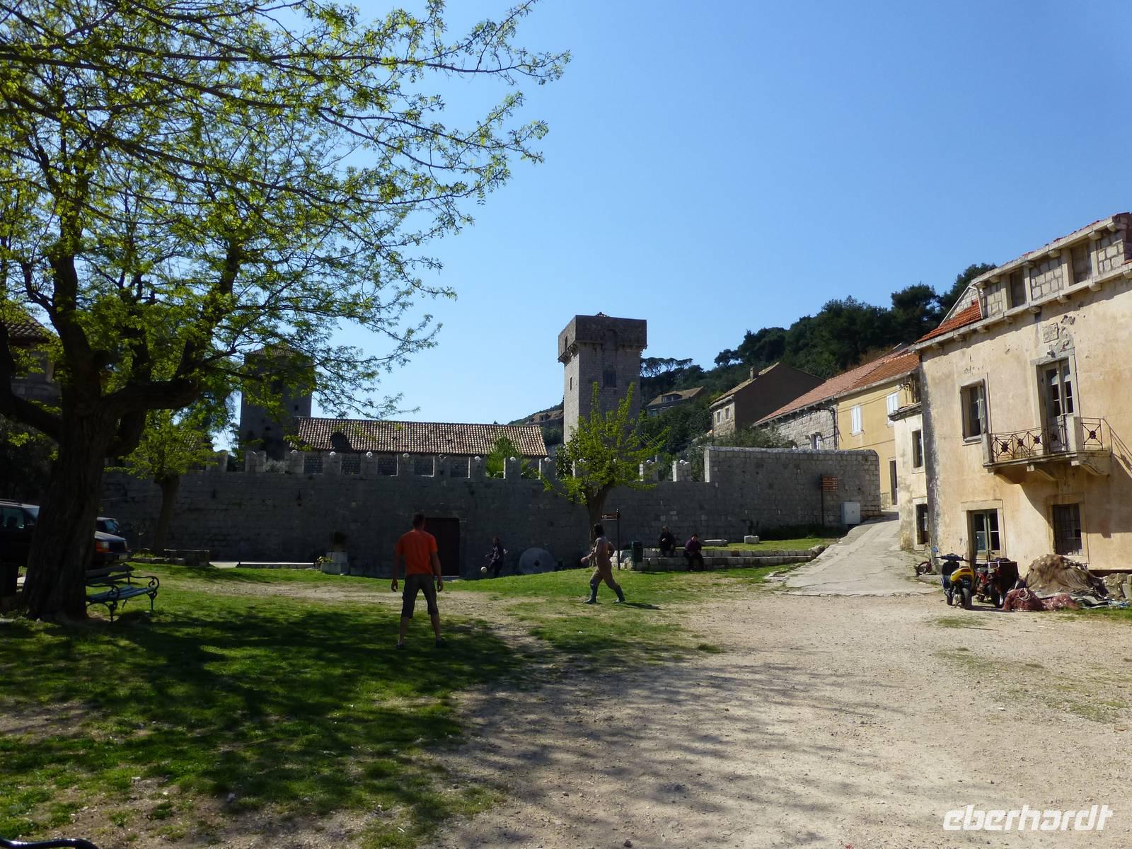 Heute heit es schon zeitiger losfahren. Bereits um 8 Uhr sitzen wir im Bus. Für's erste haben wir gut 120 km bis zur Fähre nach Orebic zurück zu legen. Eine kurze Pause machen wir unterwegs in Ston. Hier beeindruckt von weitem vorallem die gewaltige Stadtmauer. Sie sieht ein bisschen aus wie die Große Chinesische Mauer. Ston liegt schon auf der Halbinsel Pelješac. Die weitere Strecke bios Orebic ist landschaftlich abwechnslungsreich. Wir fahren entlang des Meeres, überwinden mehrmals Pässe um dann wieder entlang des Meeres zu fahren. Gleich bei Ston sehen wir eine noch heute arbeitende Saline, die Republik Dubrovnik hatte in früherer Zeit ein Privileg zum Salzhandel. Wir fahren durch Olivenhaine und vorallem auch entlang an zahlreichen Weingütern. Die Reben stehen, charakteristisch für hier, sher niedrig, damit die Blätter im Sommer den Boden vor dem austrocknen schützen. Teilweise wurde auch Terassen angelegt um Wein anzubauen. Bei erreichen des Badeortes Orebic sehen wir schon die Insel Korcula. Mit einem kleinen Schiff setzen wir über zur Stadt Korcula, die Fahrt dauert nur etwa 20 Minuten. Schon von weitem grüßt die kleine Stadt mit ihren mächtigen Wehrtürmen. Zuerst gehen wir einmal um die Stadt herum um dann durch das eigentliche Eingangstor, früher von einer Zugbrücke gesichert, in die Stadt zu gehen. Über dem Stadttor prangt der "Venezianische Löwe" als Zeichen der Herrschaft der Venezianer. Von Niko erfahren wir viel wissenswertes u.a. auch die Legende, das der mittelalterliche Weltreisende Marko Polo (der Vorname wird hier mit k geschrieben), ein Kind Korcula sein soll. Anderswo ist das natürlich heftig umstritten. Es bleibt uns noch Zeit für eigene Besichtigungen und auch für ein kleines Mittagessen. Nach der Rückfahrt mit dem Schiff nach Orebic nehmen wir den seleben Weg wieder zurück nach Dubrovnik, einen anderen gibt es nicht. Am späten Nachmittag sind wir zurück im Hotel.