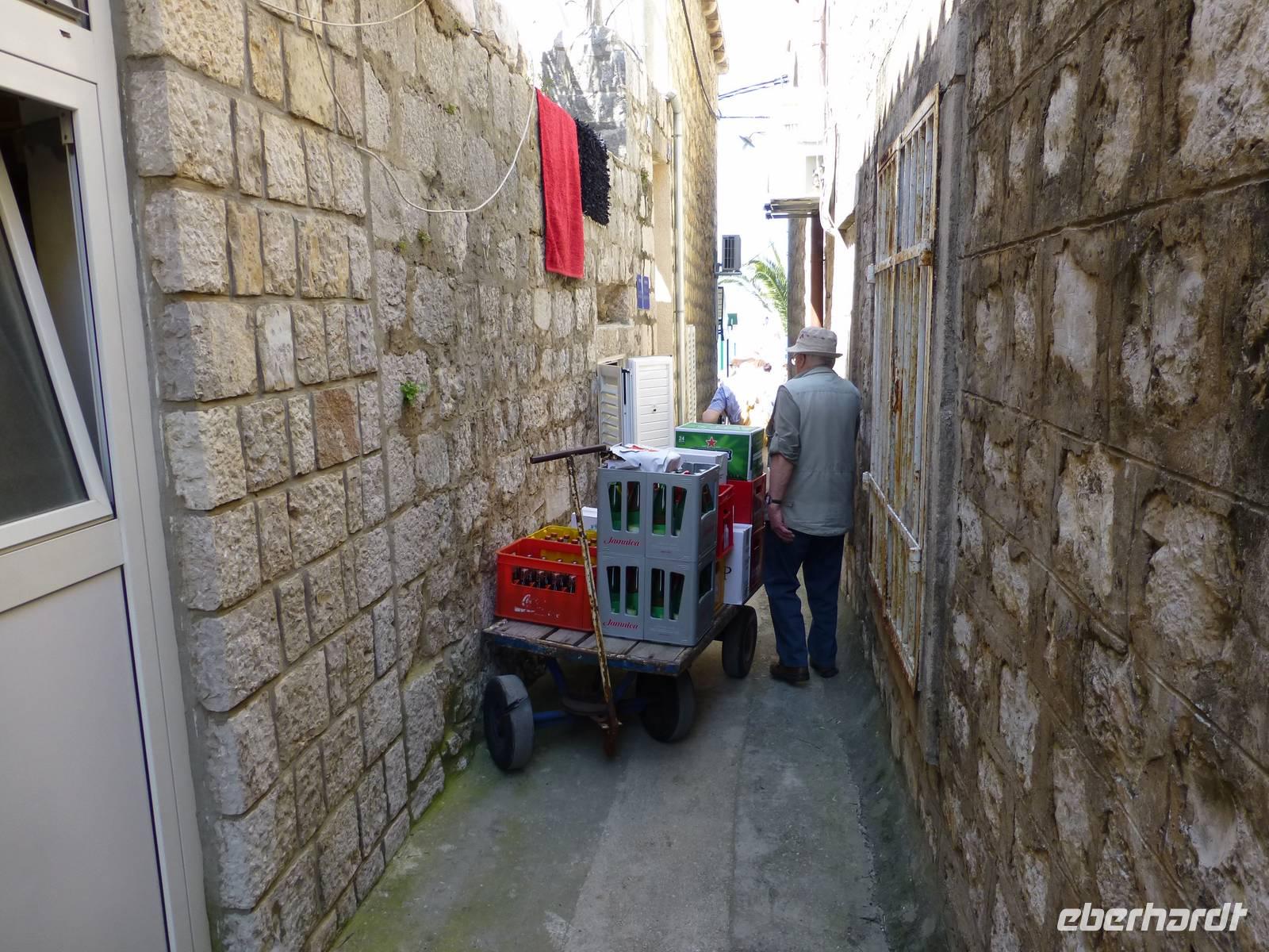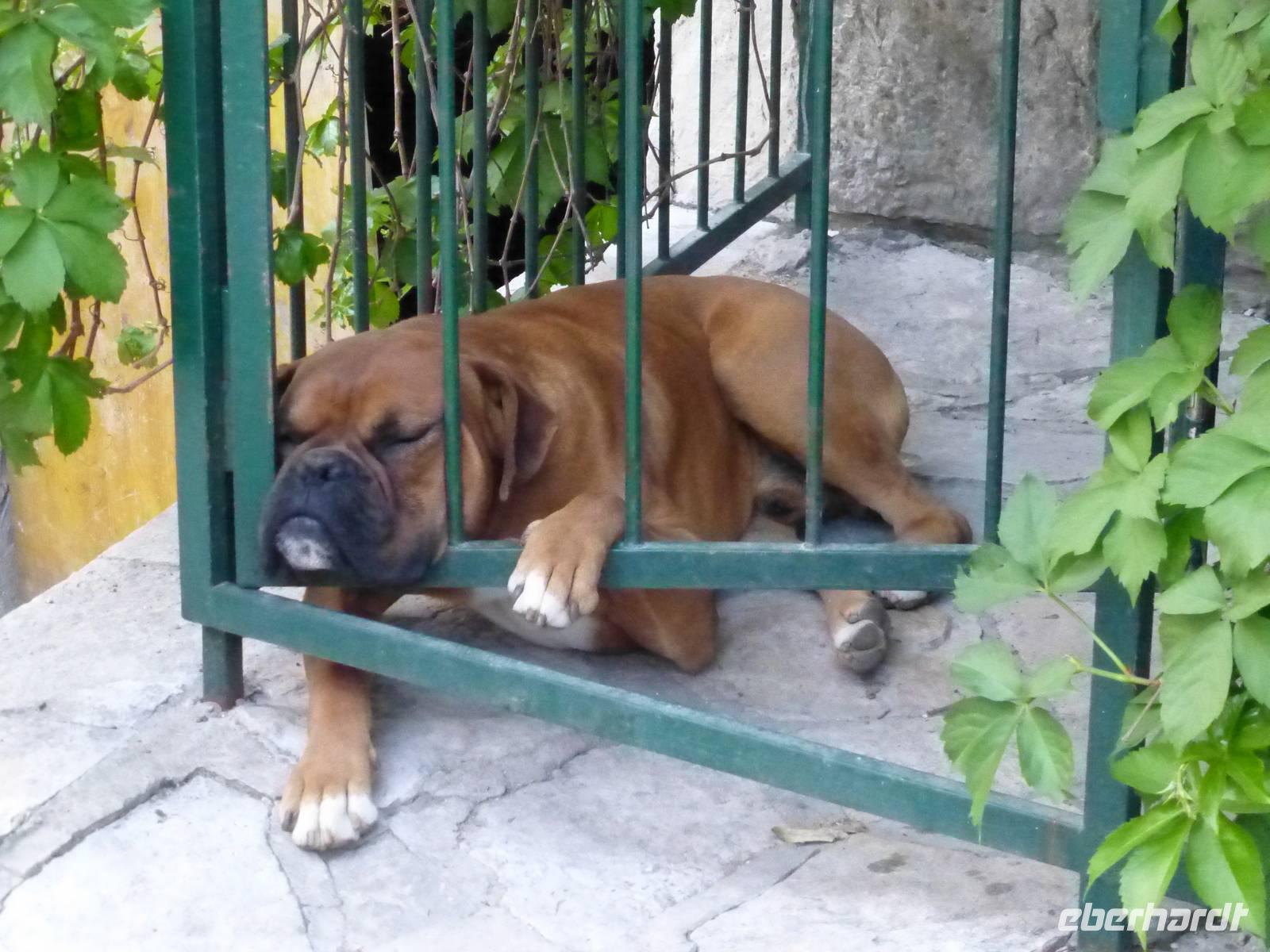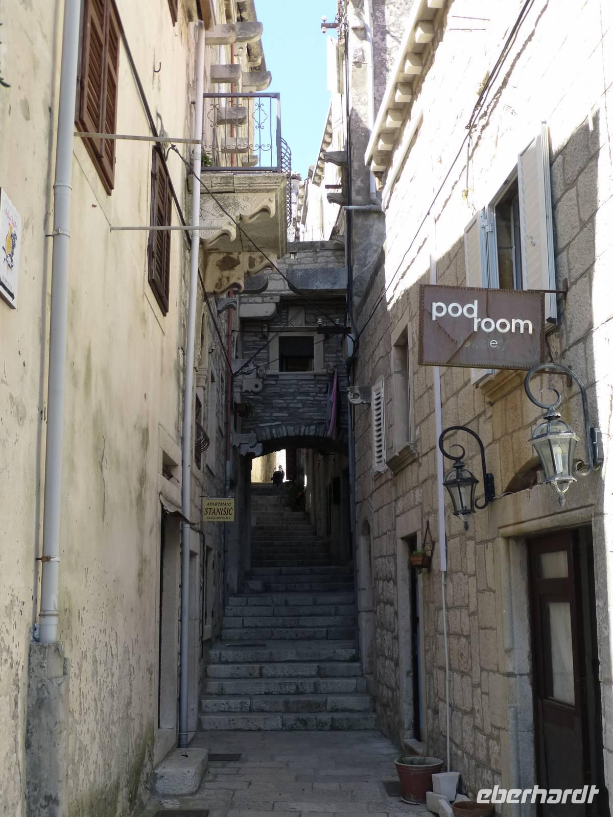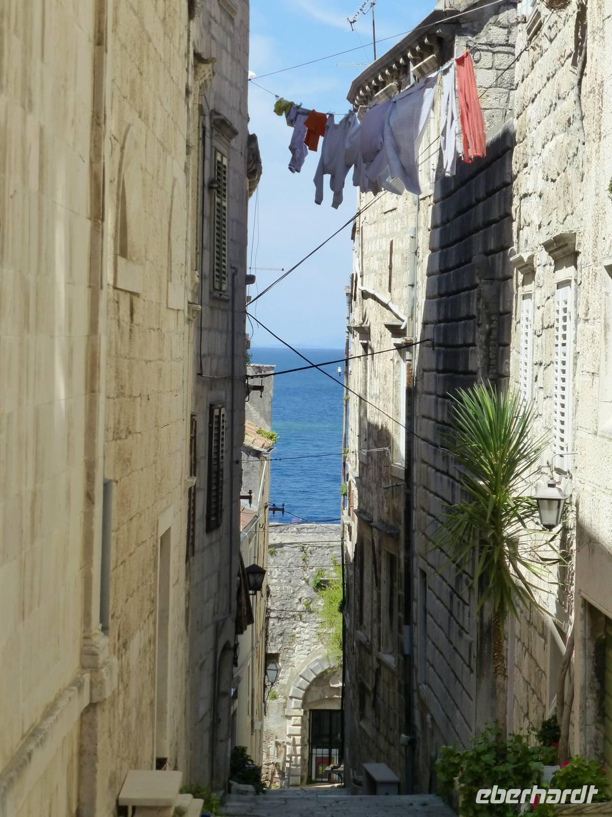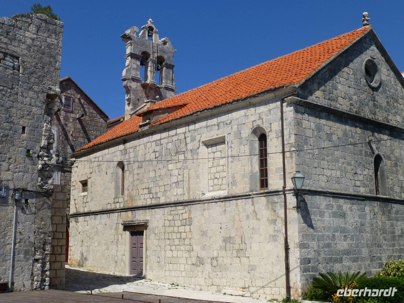 Heute heit es schon zeitiger losfahren. Bereits um 8 Uhr sitzen wir im Bus. Für's erste haben wir gut 120 km bis zur Fähre nach Orebic zurück zu legen. Eine kurze Pause machen wir unterwegs in Ston. Hier beeindruckt von weitem vorallem die gewaltige Stadtmauer. Sie sieht ein bisschen aus wie die Große Chinesische Mauer. Ston liegt schon auf der Halbinsel Pelješac. Die weitere Strecke bios Orebic ist landschaftlich abwechnslungsreich. Wir fahren entlang des Meeres, überwinden mehrmals Pässe um dann wieder entlang des Meeres zu fahren. Gleich bei Ston sehen wir eine noch heute arbeitende Saline, die Republik Dubrovnik hatte in früherer Zeit ein Privileg zum Salzhandel. Wir fahren durch Olivenhaine und vorallem auch entlang an zahlreichen Weingütern. Die Reben stehen, charakteristisch für hier, sher niedrig, damit die Blätter im Sommer den Boden vor dem austrocknen schützen. Teilweise wurde auch Terassen angelegt um Wein anzubauen. Bei erreichen des Badeortes Orebic sehen wir schon die Insel Korcula. Mit einem kleinen Schiff setzen wir über zur Stadt Korcula, die Fahrt dauert nur etwa 20 Minuten. Schon von weitem grüßt die kleine Stadt mit ihren mächtigen Wehrtürmen. Zuerst gehen wir einmal um die Stadt herum um dann durch das eigentliche Eingangstor, früher von einer Zugbrücke gesichert, in die Stadt zu gehen. Über dem Stadttor prangt der "Venezianische Löwe" als Zeichen der Herrschaft der Venezianer. Von Niko erfahren wir viel wissenswertes u.a. auch die Legende, das der mittelalterliche Weltreisende Marko Polo (der Vorname wird hier mit k geschrieben), ein Kind Korcula sein soll. Anderswo ist das natürlich heftig umstritten. Es bleibt uns noch Zeit für eigene Besichtigungen und auch für ein kleines Mittagessen. Nach der Rückfahrt mit dem Schiff nach Orebic nehmen wir den seleben Weg wieder zurück nach Dubrovnik, einen anderen gibt es nicht. Am späten Nachmittag sind wir zurück im Hotel.