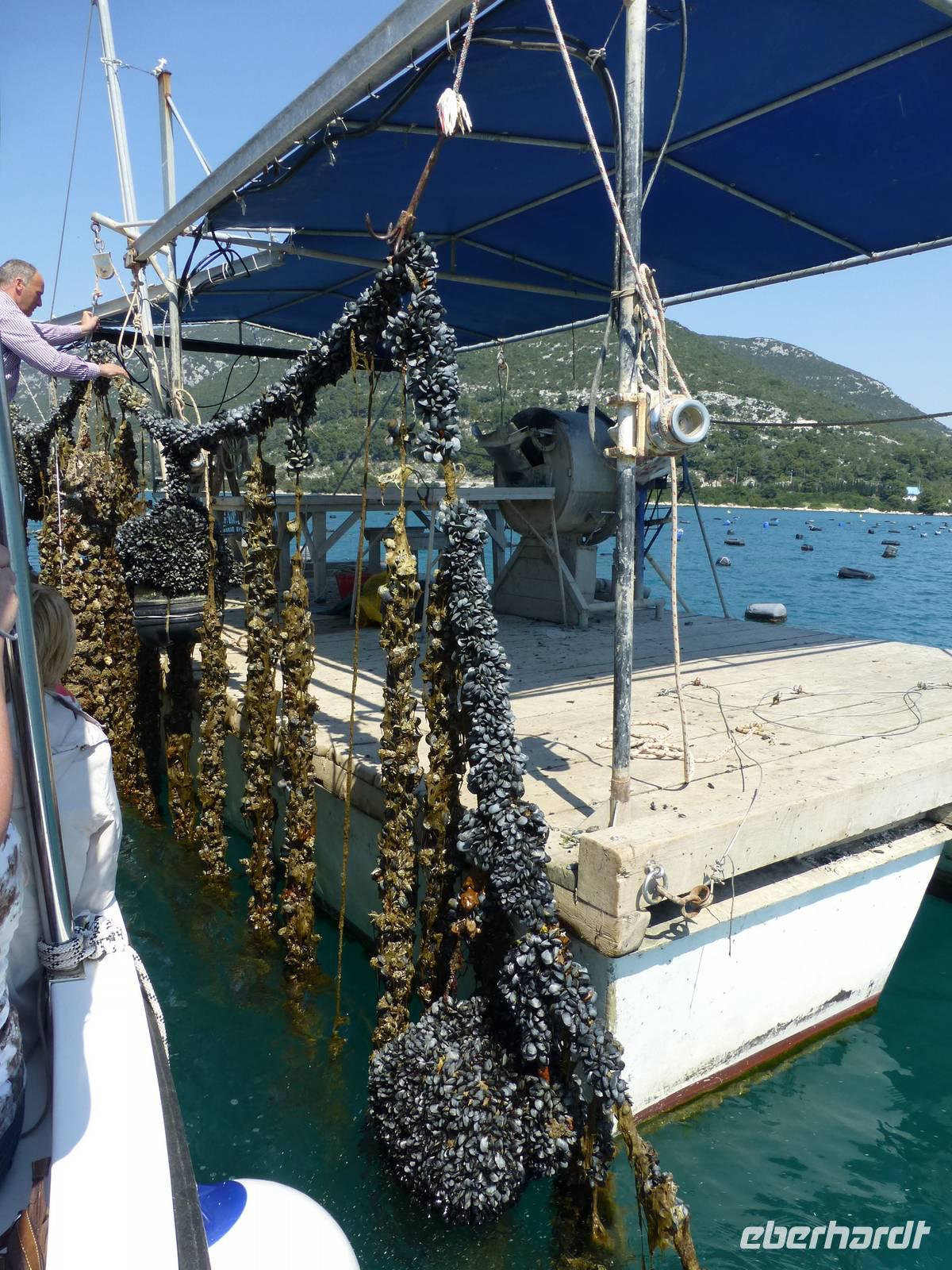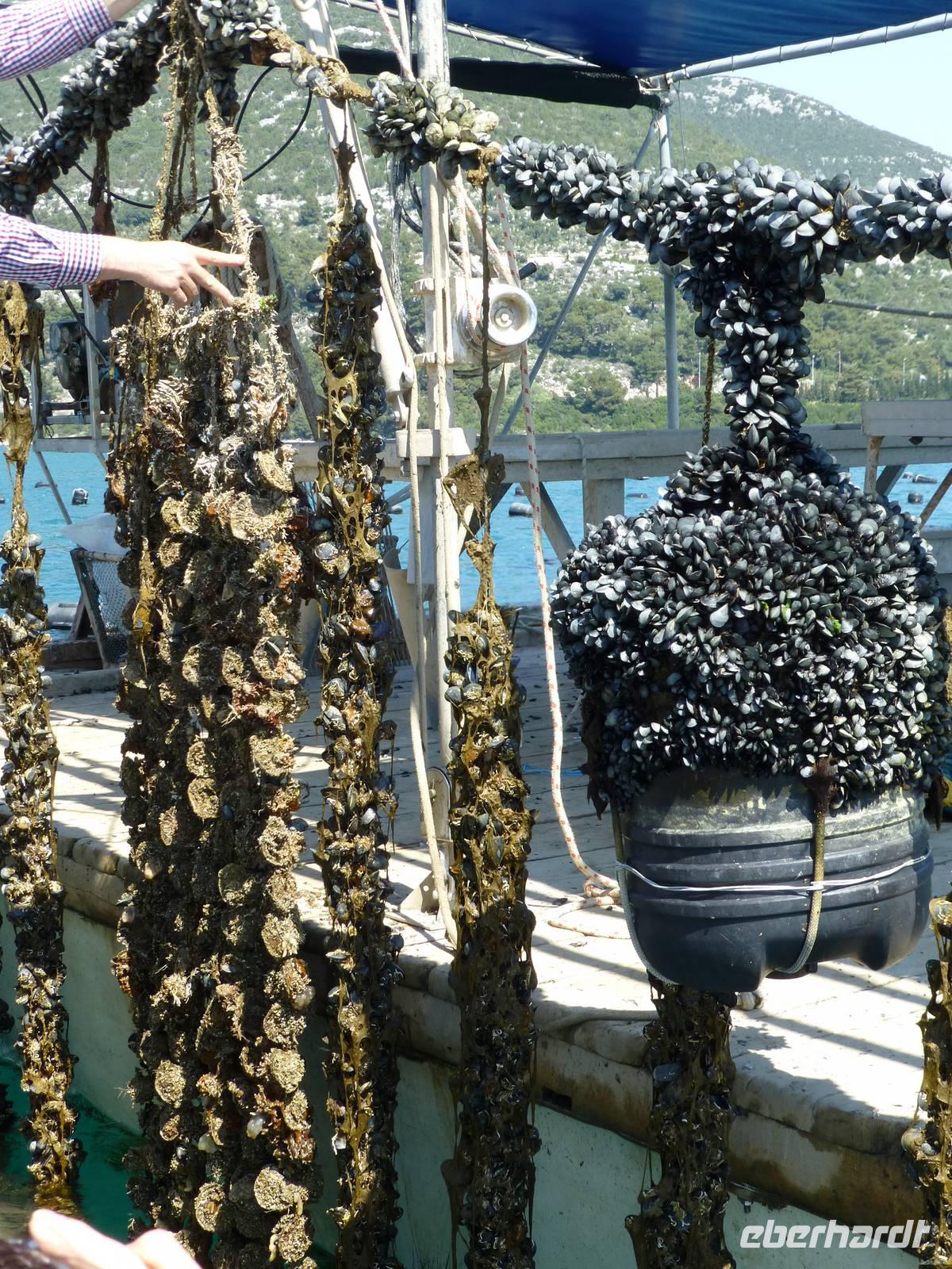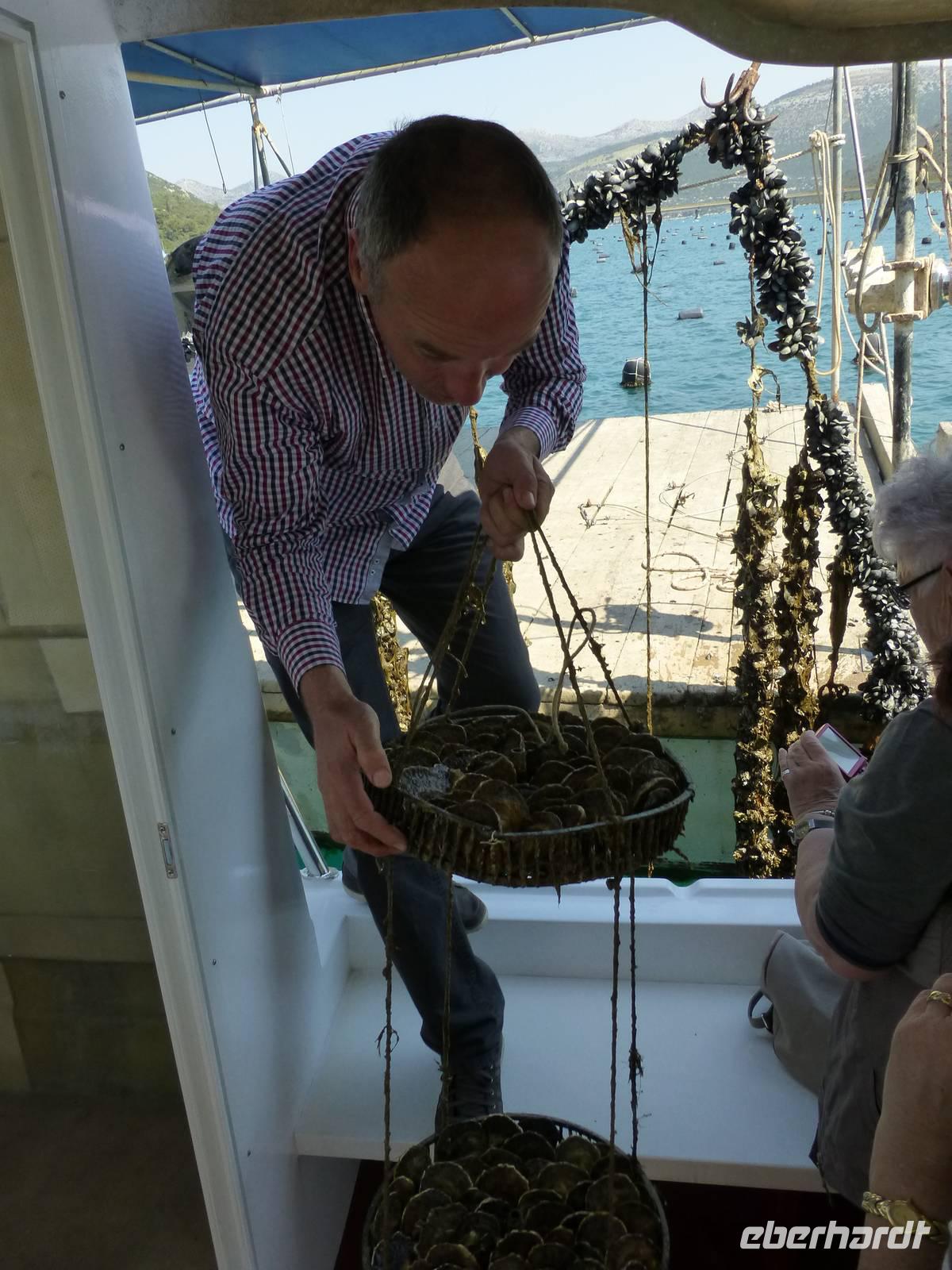 Um es gleich vorwegzunehmen, auch heute war es wieder ein schöner Tag. Am Morgen fahren wir noch einmal nach Ston und heute haben wir die Möglichkeit ein Stück auf der einmaligen Stadtmauer von Ston entlang zu gehen. Nachdem wir einiges an Höhe gewonnen haben genießen wir einen schönen Ausblick über Ston und seine Bucht mit der noch heute arbeitenden Saline. Diese stammt schon aus dem Mittelalter, die Republik Dubrovnik hatte früher ein Monopol auf Salzherstellung und Handel. Anschließend fahren wir nach Mali Ston, eigentlich hätten wir über die Stadtmauer gleich dahin gelangen können. Mali Ston lebt heute vorallem durch die Austern- und Muschelzucht. Im kleinen Hafen holt uns ein Boot ab, wir fahren hinaus zu einer der Austernbänke. Wir sehen wie die Austern uns Muscheln heute gezüchtet und anschließend geerntet werden. Frisch aus dem Meer nehemn wir Austern zu verkosten mit. Auf einem kleinen Inselchen werden diese für uns zurecht gemacht und jeder kannsie probieren. Für einige von uns ist das nicht so das richtige, andere profitieren davon. Dazu trinken wir einen ausgezeichneten Rotwein. Zurück im Hafen fahren wir in das kleine Dorf Orašac. Es ist das Heimatdorf unseres Reiseleiters Niko. Unterwegs machen wir noch einen kleinen Halt um das selbstgemachte Weintraubengelee aus Nikos Familie zu probieren. Im Dorf befindet sich eine alte Ölmühle, heute im Besitz einer einheimischen Familie. Hier können wir kennenlernen wie mühsam das Olivenöl in früheren Zeiten gewonnen wurde. Nach einem kleinen Rundgang durch den Garten der Familie werden wir zu einem kleinen Picnic eingeladen. Wir probieren Olivenöl, lassen uns frischen Salat aus dem Garten schmecken, ebenso selbstgemachten Käse und hervorragenden Schinken. Auch probieren verschieden eingelegte Oliven und "Meeresfenchel". Zusammen mit einem guten Rotwein mundet alles hervorragend. Irgendwann heißt es Abschied nehmen und wir fahren zurück zum Hotel. Im Hafen von Dubrovnik liegt heute ein riesiges Kreuzfahrtschiff und wir sind alle sehr froh, mit unserer kleinen Gruppe ein solch schönes individuelles Programm erleben zu dürfen.