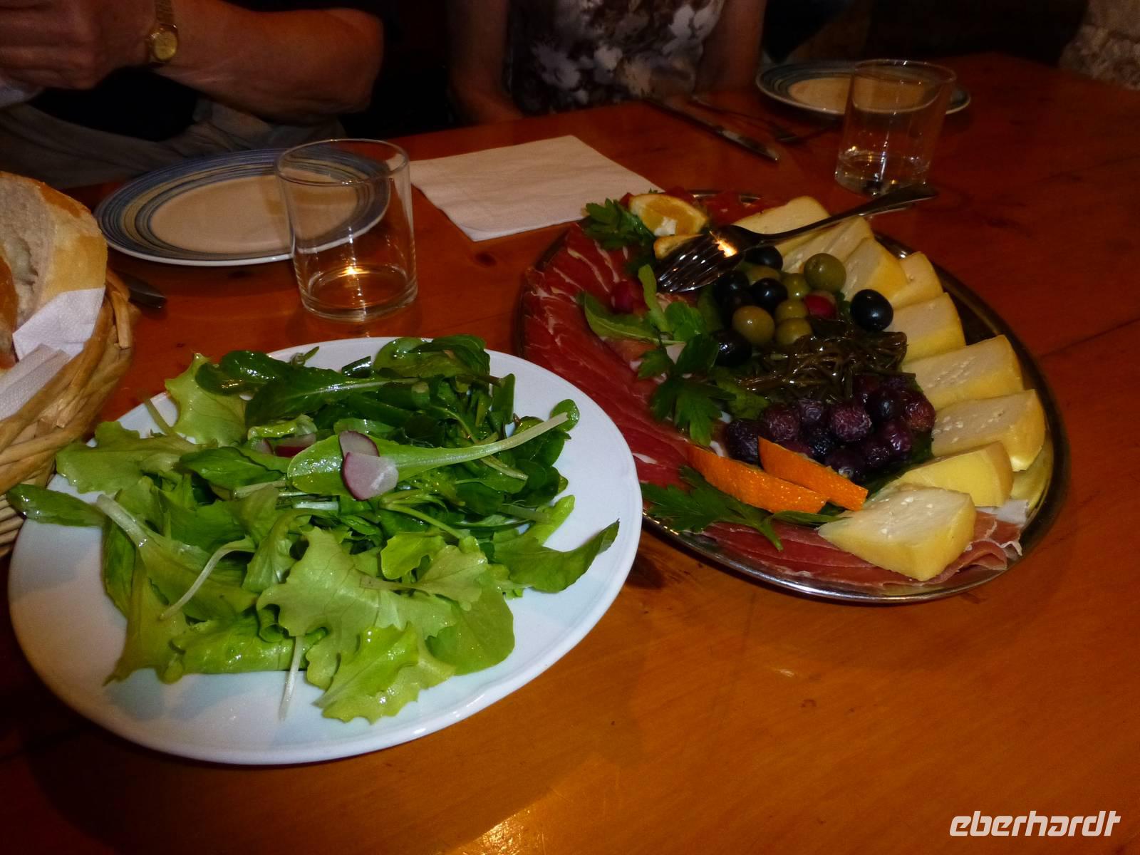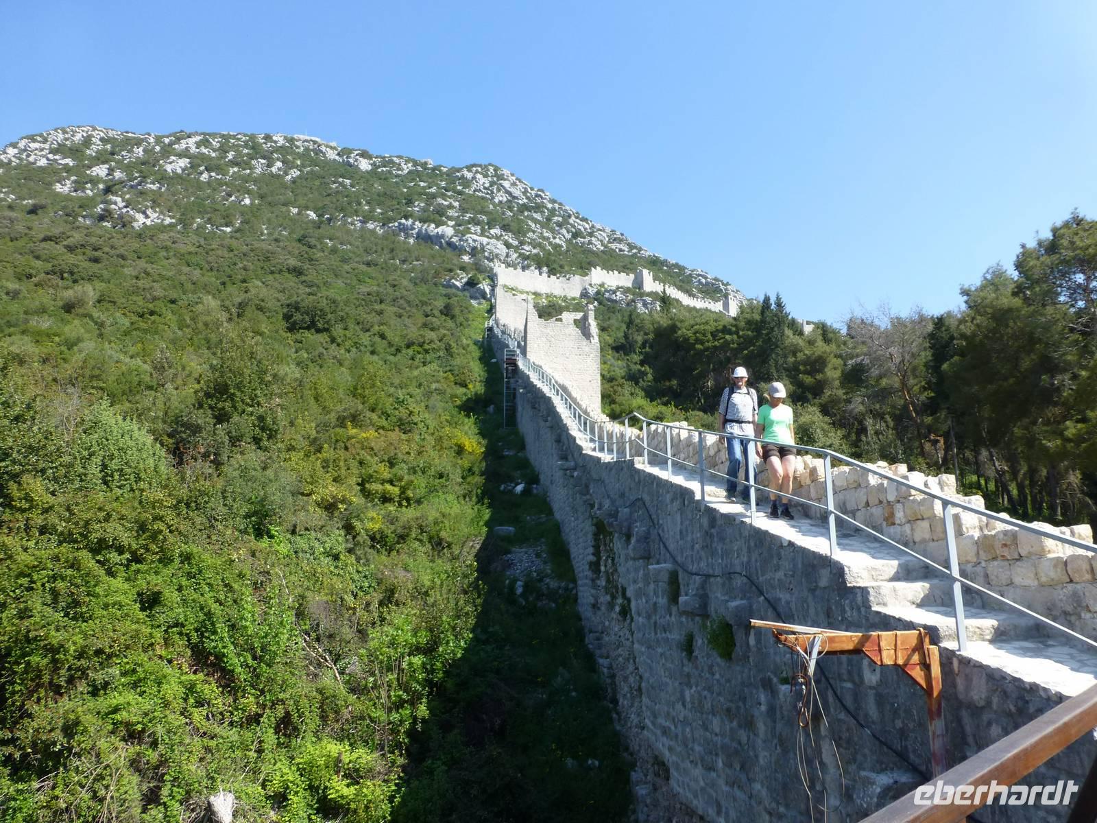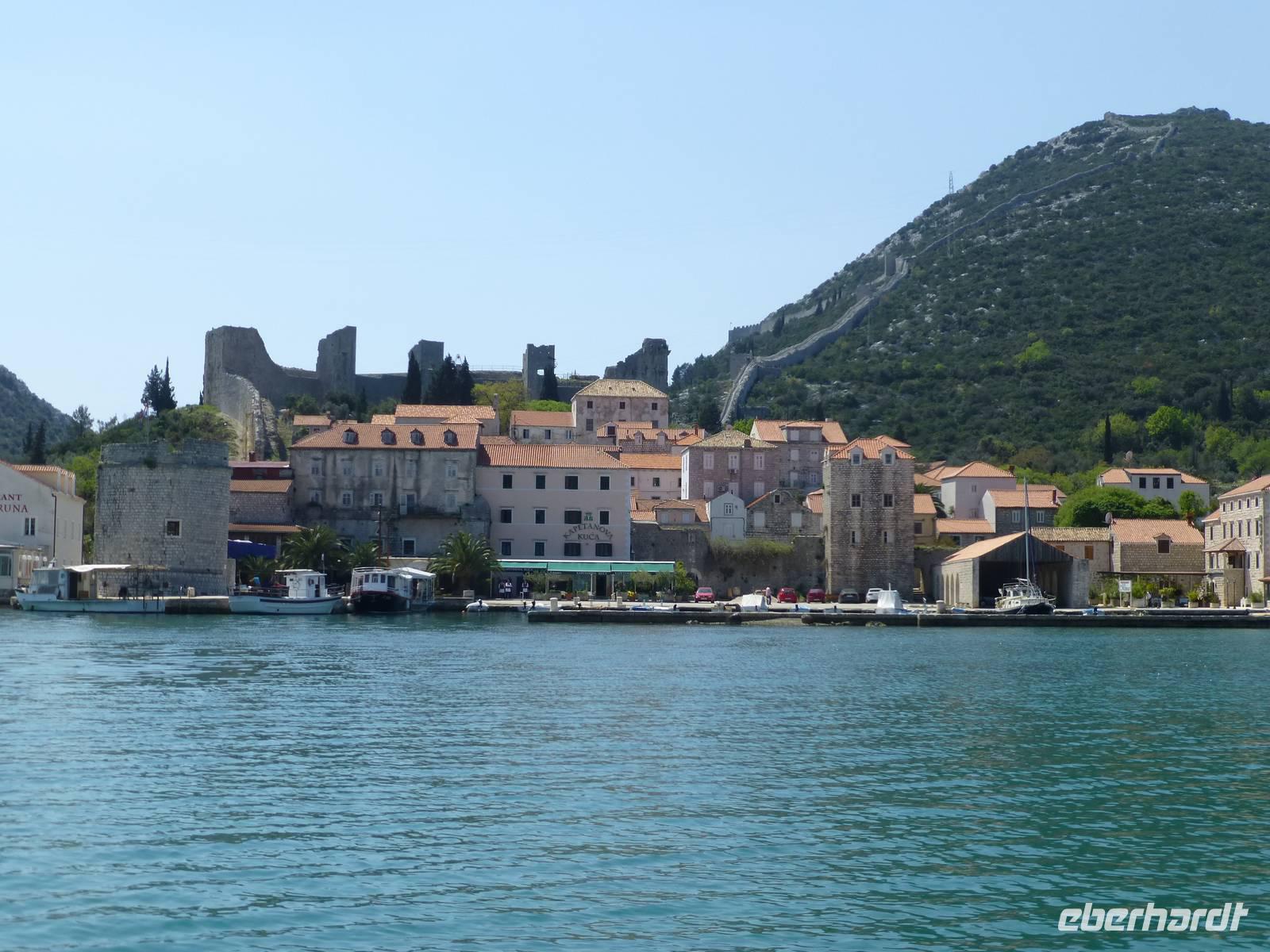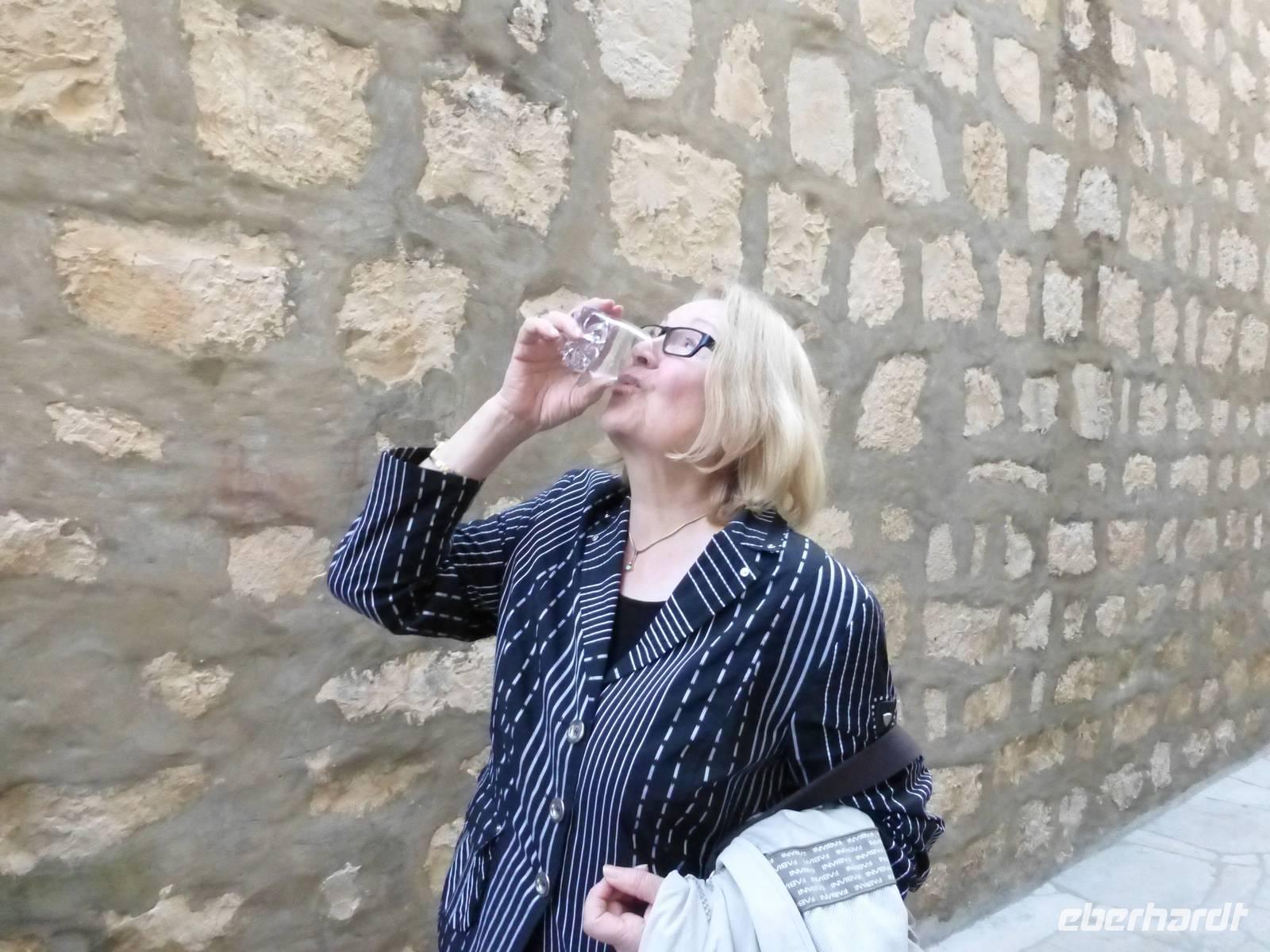 Um es gleich vorwegzunehmen, auch heute war es wieder ein schöner Tag. Am Morgen fahren wir noch einmal nach Ston und heute haben wir die Möglichkeit ein Stück auf der einmaligen Stadtmauer von Ston entlang zu gehen. Nachdem wir einiges an Höhe gewonnen haben genießen wir einen schönen Ausblick über Ston und seine Bucht mit der noch heute arbeitenden Saline. Diese stammt schon aus dem Mittelalter, die Republik Dubrovnik hatte früher ein Monopol auf Salzherstellung und Handel. Anschließend fahren wir nach Mali Ston, eigentlich hätten wir über die Stadtmauer gleich dahin gelangen können. Mali Ston lebt heute vorallem durch die Austern- und Muschelzucht. Im kleinen Hafen holt uns ein Boot ab, wir fahren hinaus zu einer der Austernbänke. Wir sehen wie die Austern uns Muscheln heute gezüchtet und anschließend geerntet werden. Frisch aus dem Meer nehemn wir Austern zu verkosten mit. Auf einem kleinen Inselchen werden diese für uns zurecht gemacht und jeder kannsie probieren. Für einige von uns ist das nicht so das richtige, andere profitieren davon. Dazu trinken wir einen ausgezeichneten Rotwein. Zurück im Hafen fahren wir in das kleine Dorf Orašac. Es ist das Heimatdorf unseres Reiseleiters Niko. Unterwegs machen wir noch einen kleinen Halt um das selbstgemachte Weintraubengelee aus Nikos Familie zu probieren. Im Dorf befindet sich eine alte Ölmühle, heute im Besitz einer einheimischen Familie. Hier können wir kennenlernen wie mühsam das Olivenöl in früheren Zeiten gewonnen wurde. Nach einem kleinen Rundgang durch den Garten der Familie werden wir zu einem kleinen Picnic eingeladen. Wir probieren Olivenöl, lassen uns frischen Salat aus dem Garten schmecken, ebenso selbstgemachten Käse und hervorragenden Schinken. Auch probieren verschieden eingelegte Oliven und "Meeresfenchel". Zusammen mit einem guten Rotwein mundet alles hervorragend. Irgendwann heißt es Abschied nehmen und wir fahren zurück zum Hotel. Im Hafen von Dubrovnik liegt heute ein riesiges Kreuzfahrtschiff und wir sind alle sehr froh, mit unserer kleinen Gruppe ein solch schönes individuelles Programm erleben zu dürfen.
