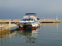 Oh oh - heute heißt es früh aufstehen! Dreiviertel fünf oder auch Viertel vor Fünf treffen wir uns an der Rezeption. Tommy, unser heutiger Reiseleiter, holt uns ab und bringt uns zum Katamaran. Noch ist es dunkel und wir erwarten einen spektakulären Sonnenaufgang. Wir platzieren uns auf dem Sonnendeck, aber die Sonne lässt auf sich warten. Es ist eher der Wind, der uns begleitet. Dicke Wolken hängen am Himmel und lassen die Sonne nicht durch. Wir laben uns an einem klitzekleinen Kaffee, dann gibt es Croissants und ein Glas Sekt. Nach ca. einer Stunde fährt unser Bootsführer dicht ans Ufer und wir werden aufgefordert, nach unten zu gehen. Ach kuck - das Boot hat einen Glasboden. Durch diesen können wir direkt auf den Meeresboden schauen, der vor allem von Seegurken bewohnt wird. Aber auch Schwärme von Sprotten kommen an unserem Schiff vorbei. Als wir uns wieder an Deck begeben, hat sich die Sonne heimlich an den Himmel geschlichen und lässt nun auch ein paar Strahlen sehen. Pünktlich zum Frühstück sind wir zurück im Hotel. Heute schmeckt es besonders gut, denn frische Meeresluft macht einfach hungrig. Der Rest des Tages und damit der ganze, steht zur freien Verfügung.