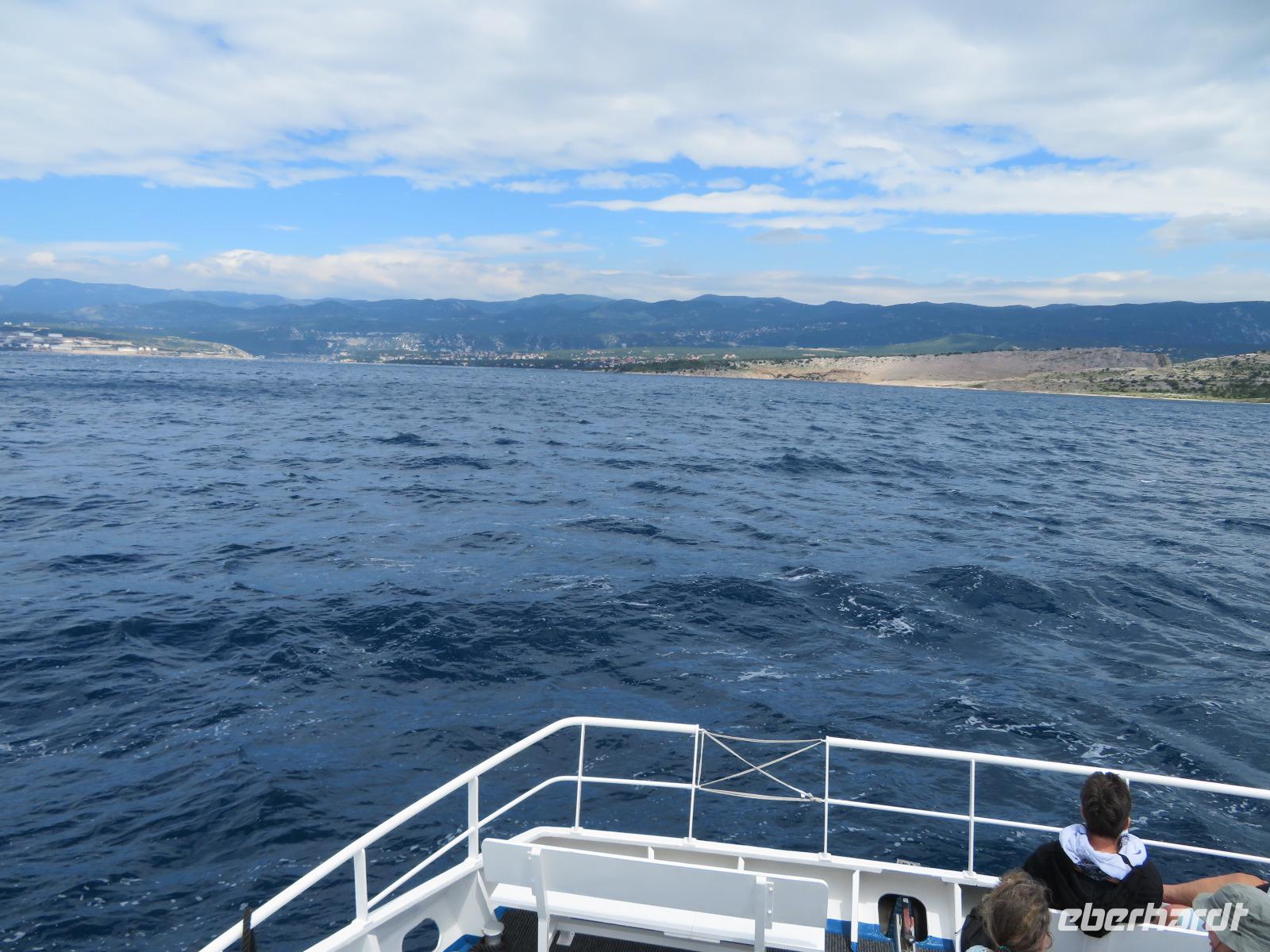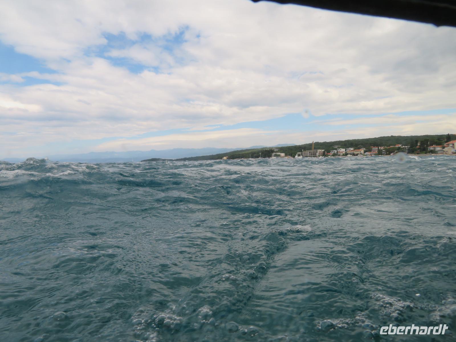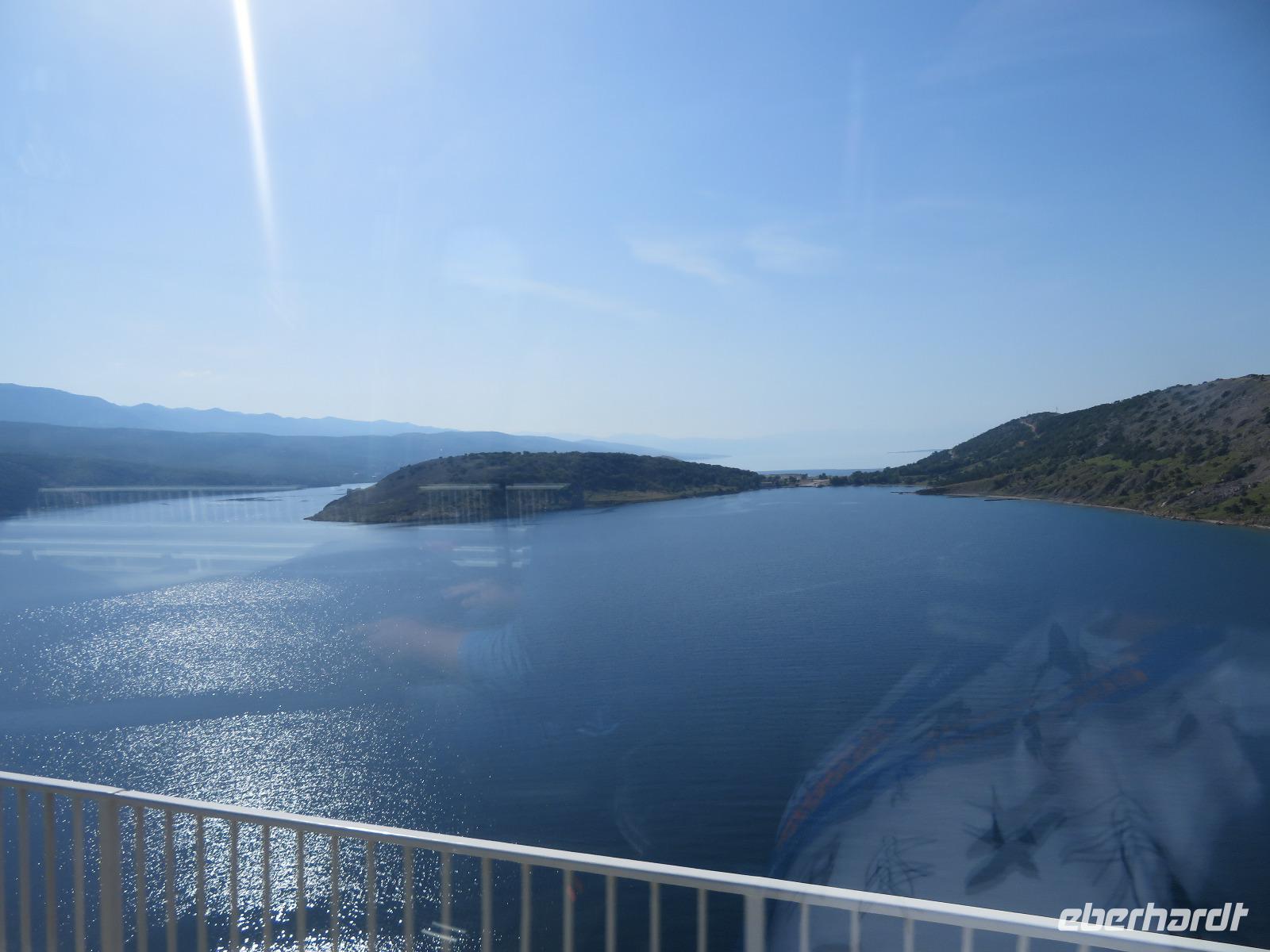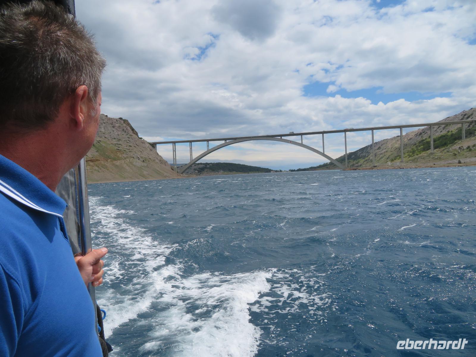 Der heutige Ausflug begann ganz entspannt zur Mittagszeit. Doch schon am Vormittag bemerkten wir wieder kleine Ausläufer des Bora-Windes. So konnten wir wetterbedingt nicht die geplante Schiffstour zur Insel Cres starten, sondern blieben mit dem kleinen Katamaran nahe der Küste der Insel Krk. Wir schipperten vorbei an kleinen Buchten bis zur Bogenbrücke, die die Insel mit dem Festland verbindet. So konnten wir eine dritte Ansicht auf die imposante Brücke bewundern. Die Wellen wurden spürbar höher, als wir uns der Brücke näherten, so drehten wir wieder und fuhren lieber in ruhigere Gebiete. In einer kleinen Bucht legten wir unsere Mittagspause ein. Nach einer Vorsuppe wurde uns fangfrischer Fisch oder leckeres Fleisch mit Cevapcici und Salat serviert. Anschließend hielten wir in dem kleinen Ort Njivice nach Lust und Laune einen Kaffee trinken gehen oder da ein oder andere Souvenir erstehen. Auf dem Rückweg nach Malinska fuhren wir an einigen schönen Buchten sehr langsam, sodass wir in den Glasboden klettern und die Unterwasserwelt bewundern konnten. Nach dem Abendessen saßen wir noch ein wenig auf der wundervollen Hotelterrasse und ließen den Tag gemütlich ausklingen.