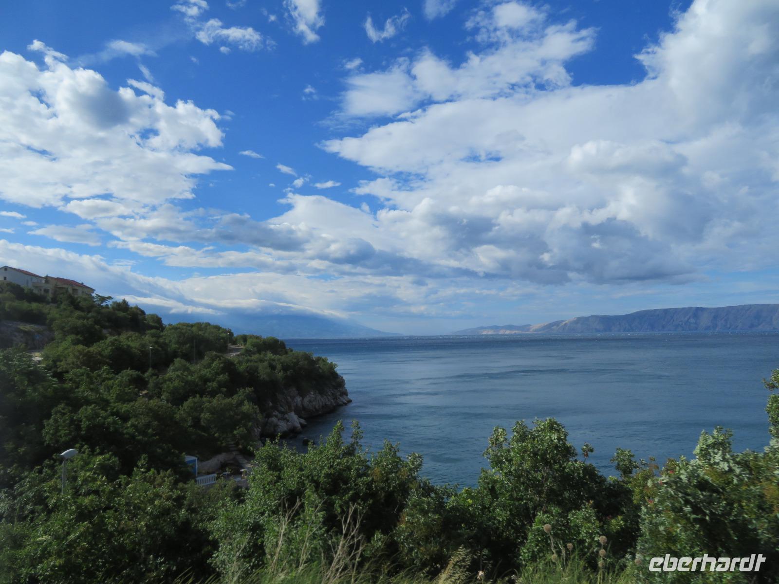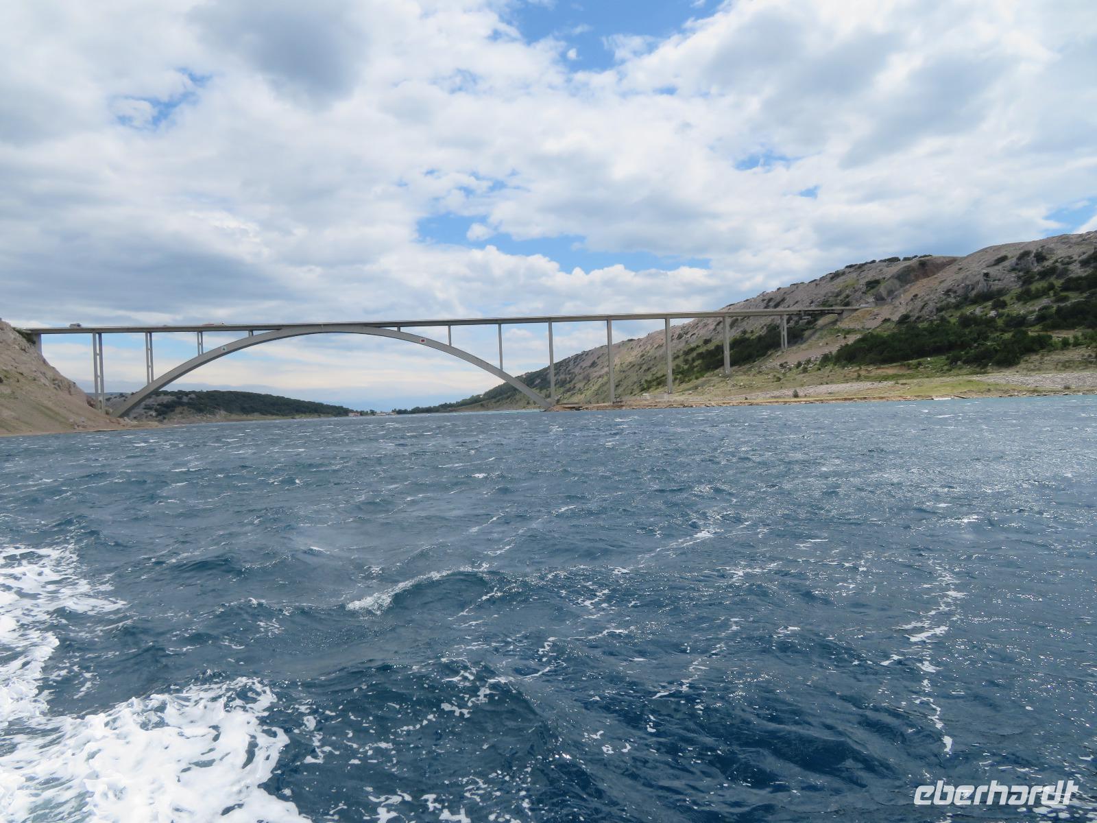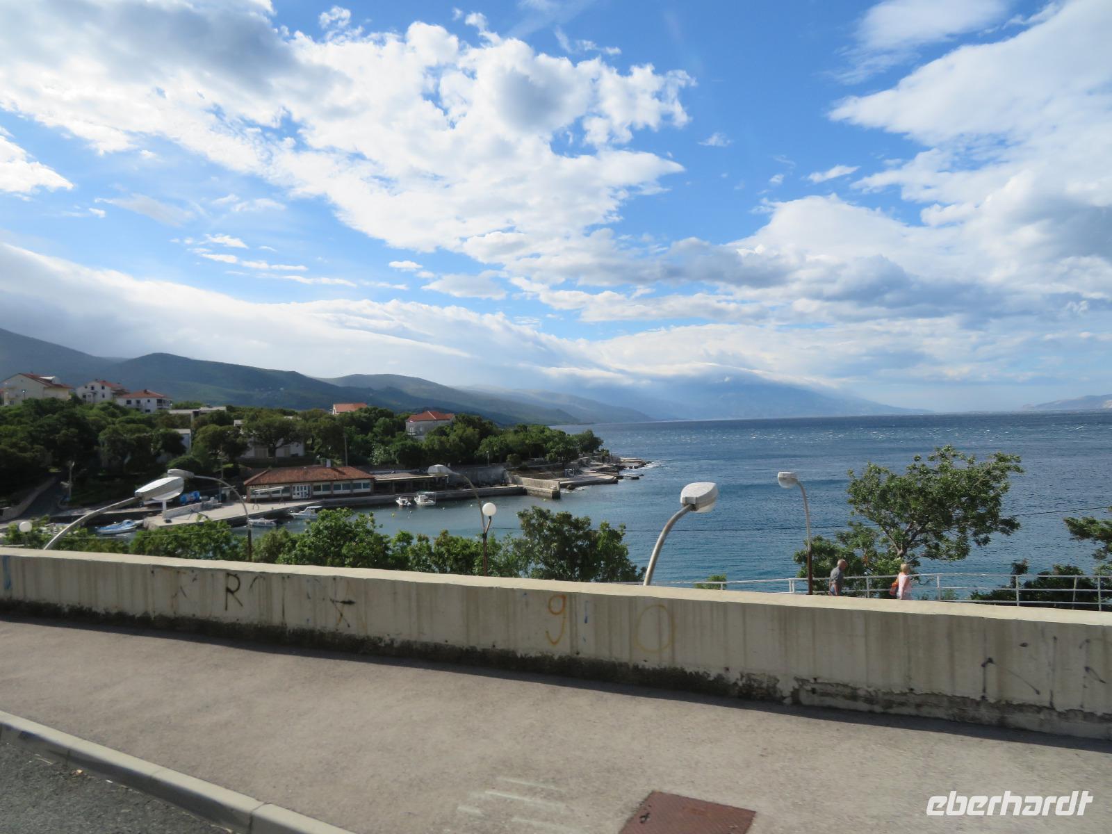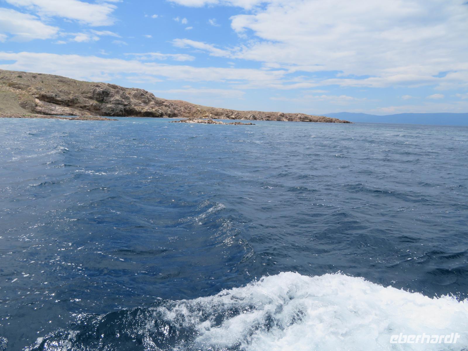 Der heutige Ausflug begann ganz entspannt zur Mittagszeit. Doch schon am Vormittag bemerkten wir wieder kleine Ausläufer des Bora-Windes. So konnten wir wetterbedingt nicht die geplante Schiffstour zur Insel Cres starten, sondern blieben mit dem kleinen Katamaran nahe der Küste der Insel Krk. Wir schipperten vorbei an kleinen Buchten bis zur Bogenbrücke, die die Insel mit dem Festland verbindet. So konnten wir eine dritte Ansicht auf die imposante Brücke bewundern. Die Wellen wurden spürbar höher, als wir uns der Brücke näherten, so drehten wir wieder und fuhren lieber in ruhigere Gebiete. In einer kleinen Bucht legten wir unsere Mittagspause ein. Nach einer Vorsuppe wurde uns fangfrischer Fisch oder leckeres Fleisch mit Cevapcici und Salat serviert. Anschließend hielten wir in dem kleinen Ort Njivice nach Lust und Laune einen Kaffee trinken gehen oder da ein oder andere Souvenir erstehen. Auf dem Rückweg nach Malinska fuhren wir an einigen schönen Buchten sehr langsam, sodass wir in den Glasboden klettern und die Unterwasserwelt bewundern konnten. Nach dem Abendessen saßen wir noch ein wenig auf der wundervollen Hotelterrasse und ließen den Tag gemütlich ausklingen.