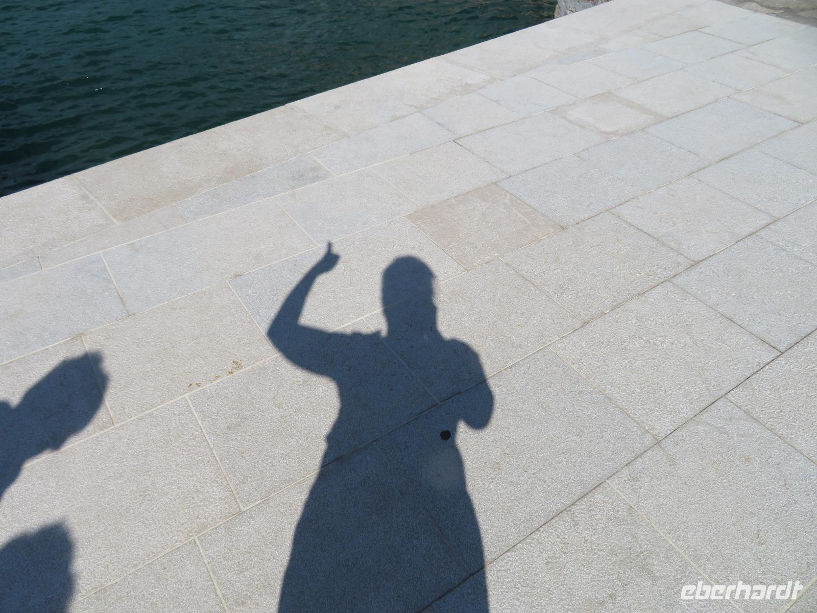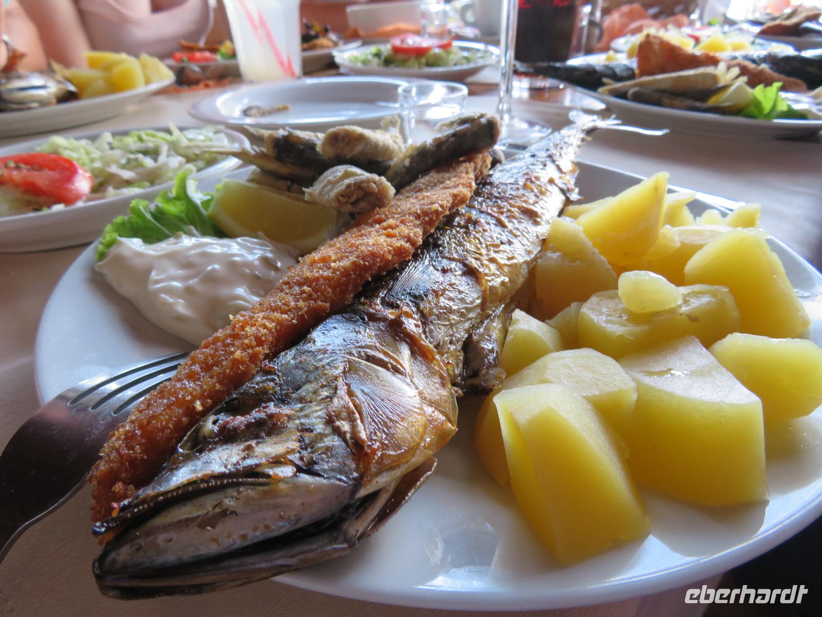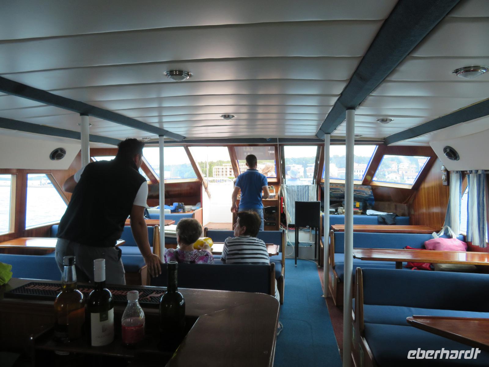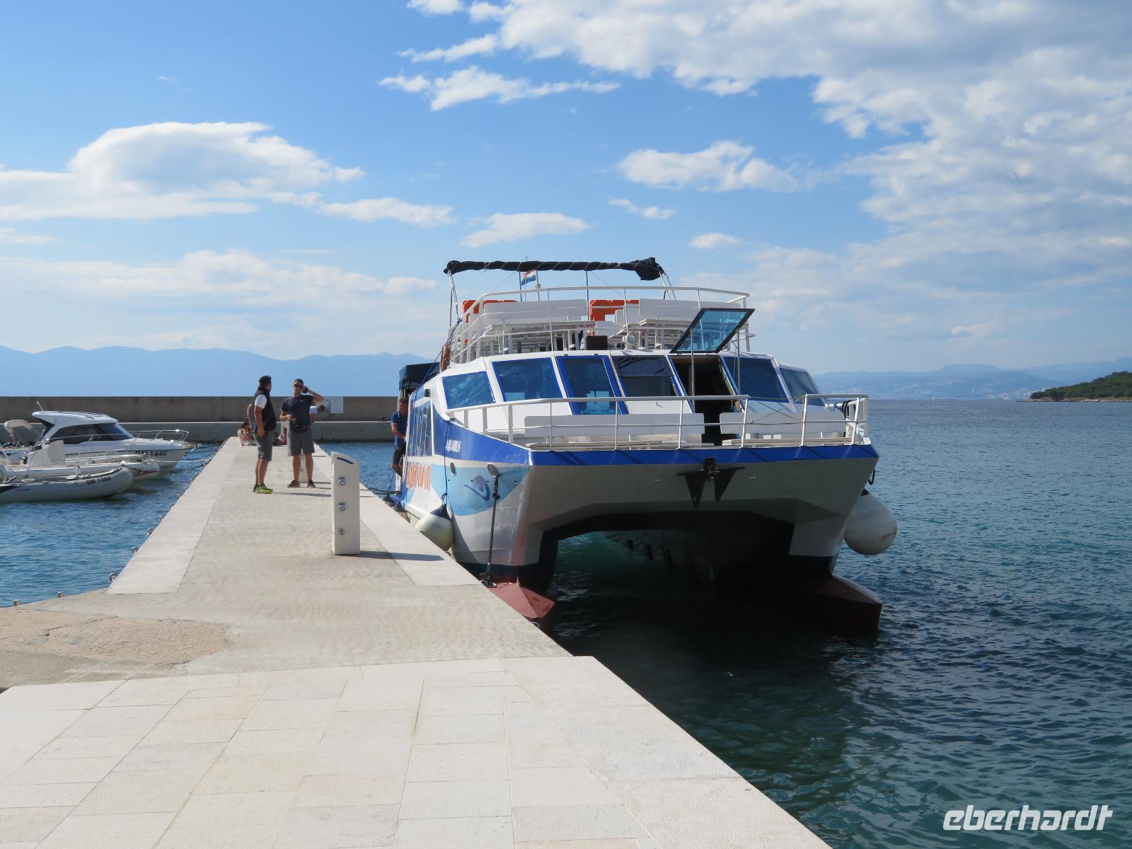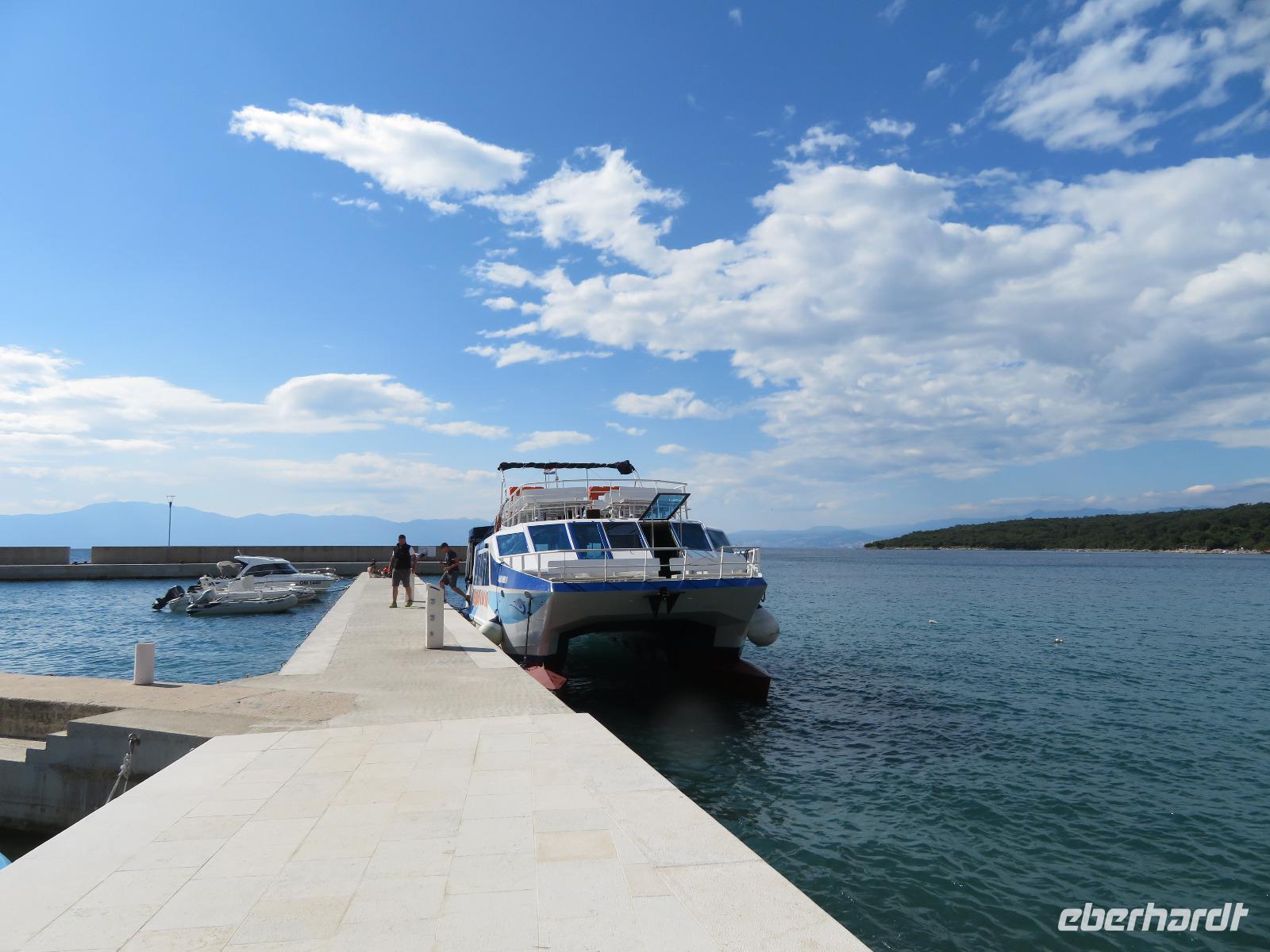 Der heutige Ausflug begann ganz entspannt zur Mittagszeit. Doch schon am Vormittag bemerkten wir wieder kleine Ausläufer des Bora-Windes. So konnten wir wetterbedingt nicht die geplante Schiffstour zur Insel Cres starten, sondern blieben mit dem kleinen Katamaran nahe der Küste der Insel Krk. Wir schipperten vorbei an kleinen Buchten bis zur Bogenbrücke, die die Insel mit dem Festland verbindet. So konnten wir eine dritte Ansicht auf die imposante Brücke bewundern. Die Wellen wurden spürbar höher, als wir uns der Brücke näherten, so drehten wir wieder und fuhren lieber in ruhigere Gebiete. In einer kleinen Bucht legten wir unsere Mittagspause ein. Nach einer Vorsuppe wurde uns fangfrischer Fisch oder leckeres Fleisch mit Cevapcici und Salat serviert. Anschließend hielten wir in dem kleinen Ort Njivice nach Lust und Laune einen Kaffee trinken gehen oder da ein oder andere Souvenir erstehen. Auf dem Rückweg nach Malinska fuhren wir an einigen schönen Buchten sehr langsam, sodass wir in den Glasboden klettern und die Unterwasserwelt bewundern konnten. Nach dem Abendessen saßen wir noch ein wenig auf der wundervollen Hotelterrasse und ließen den Tag gemütlich ausklingen.