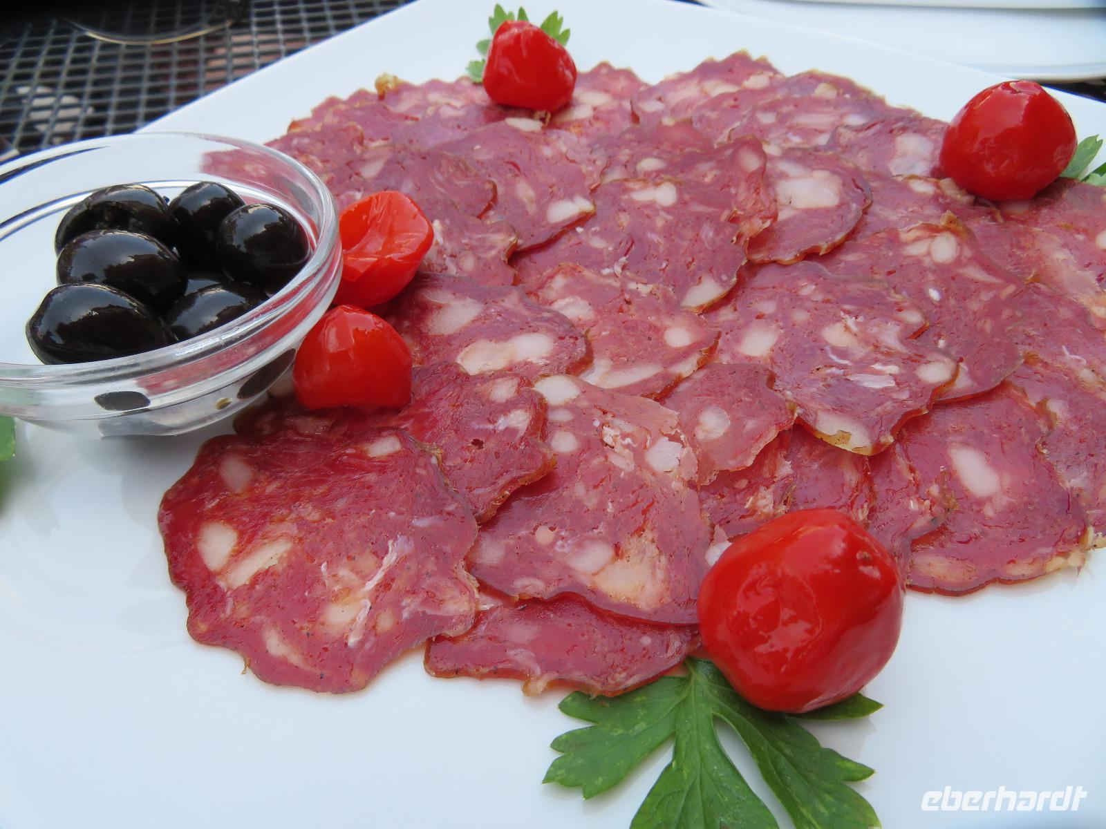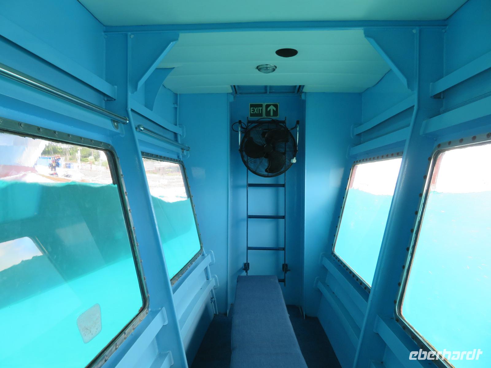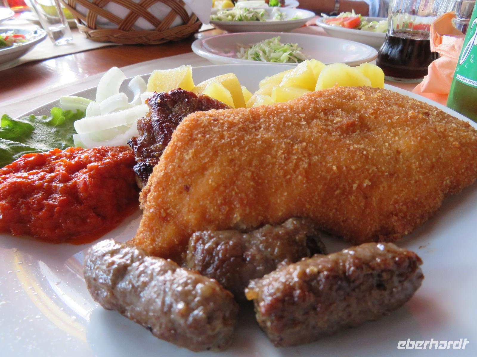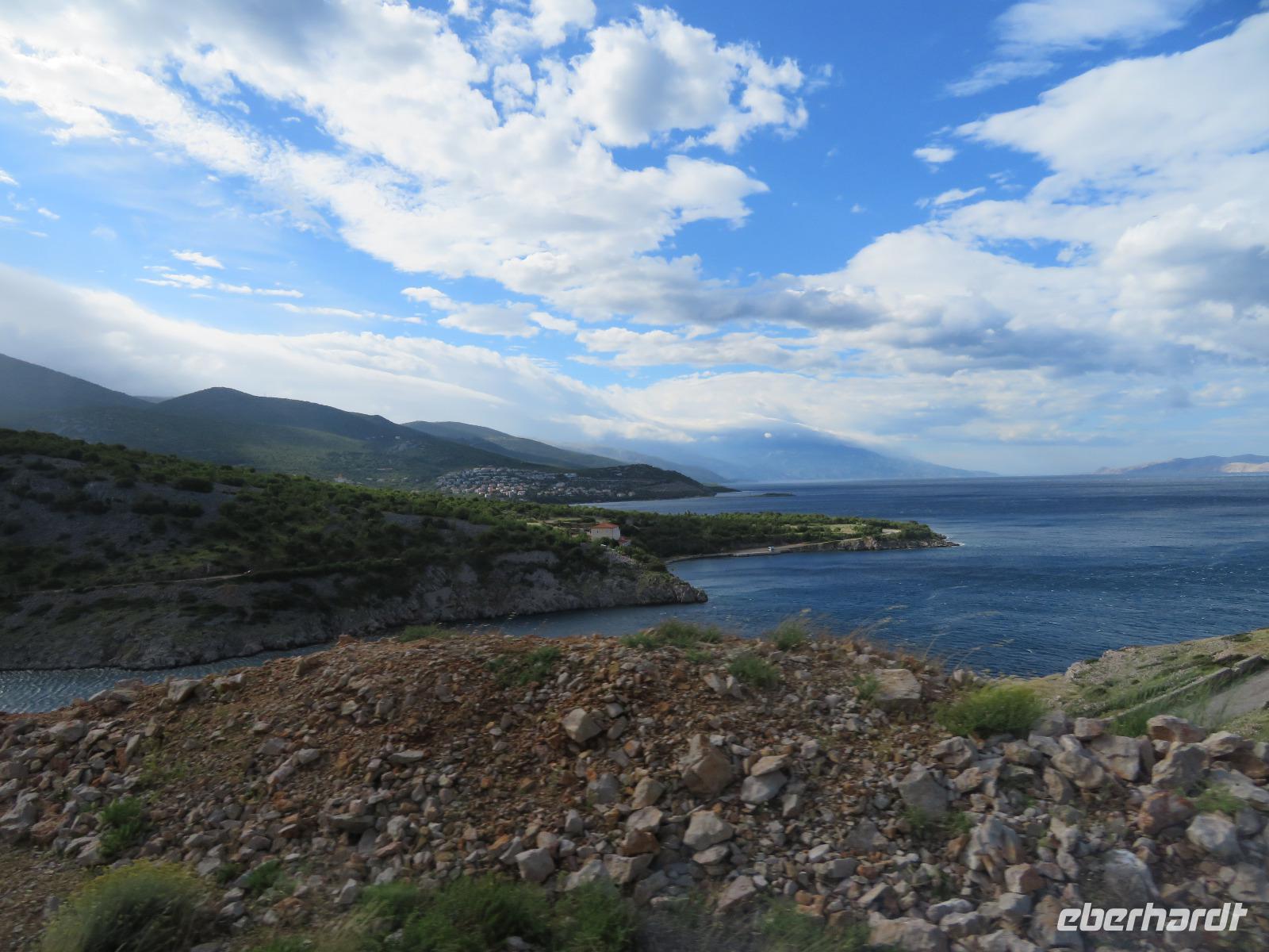 Der heutige Ausflug begann ganz entspannt zur Mittagszeit. Doch schon am Vormittag bemerkten wir wieder kleine Ausläufer des Bora-Windes. So konnten wir wetterbedingt nicht die geplante Schiffstour zur Insel Cres starten, sondern blieben mit dem kleinen Katamaran nahe der Küste der Insel Krk. Wir schipperten vorbei an kleinen Buchten bis zur Bogenbrücke, die die Insel mit dem Festland verbindet. So konnten wir eine dritte Ansicht auf die imposante Brücke bewundern. Die Wellen wurden spürbar höher, als wir uns der Brücke näherten, so drehten wir wieder und fuhren lieber in ruhigere Gebiete. In einer kleinen Bucht legten wir unsere Mittagspause ein. Nach einer Vorsuppe wurde uns fangfrischer Fisch oder leckeres Fleisch mit Cevapcici und Salat serviert. Anschließend hielten wir in dem kleinen Ort Njivice nach Lust und Laune einen Kaffee trinken gehen oder da ein oder andere Souvenir erstehen. Auf dem Rückweg nach Malinska fuhren wir an einigen schönen Buchten sehr langsam, sodass wir in den Glasboden klettern und die Unterwasserwelt bewundern konnten. Nach dem Abendessen saßen wir noch ein wenig auf der wundervollen Hotelterrasse und ließen den Tag gemütlich ausklingen.