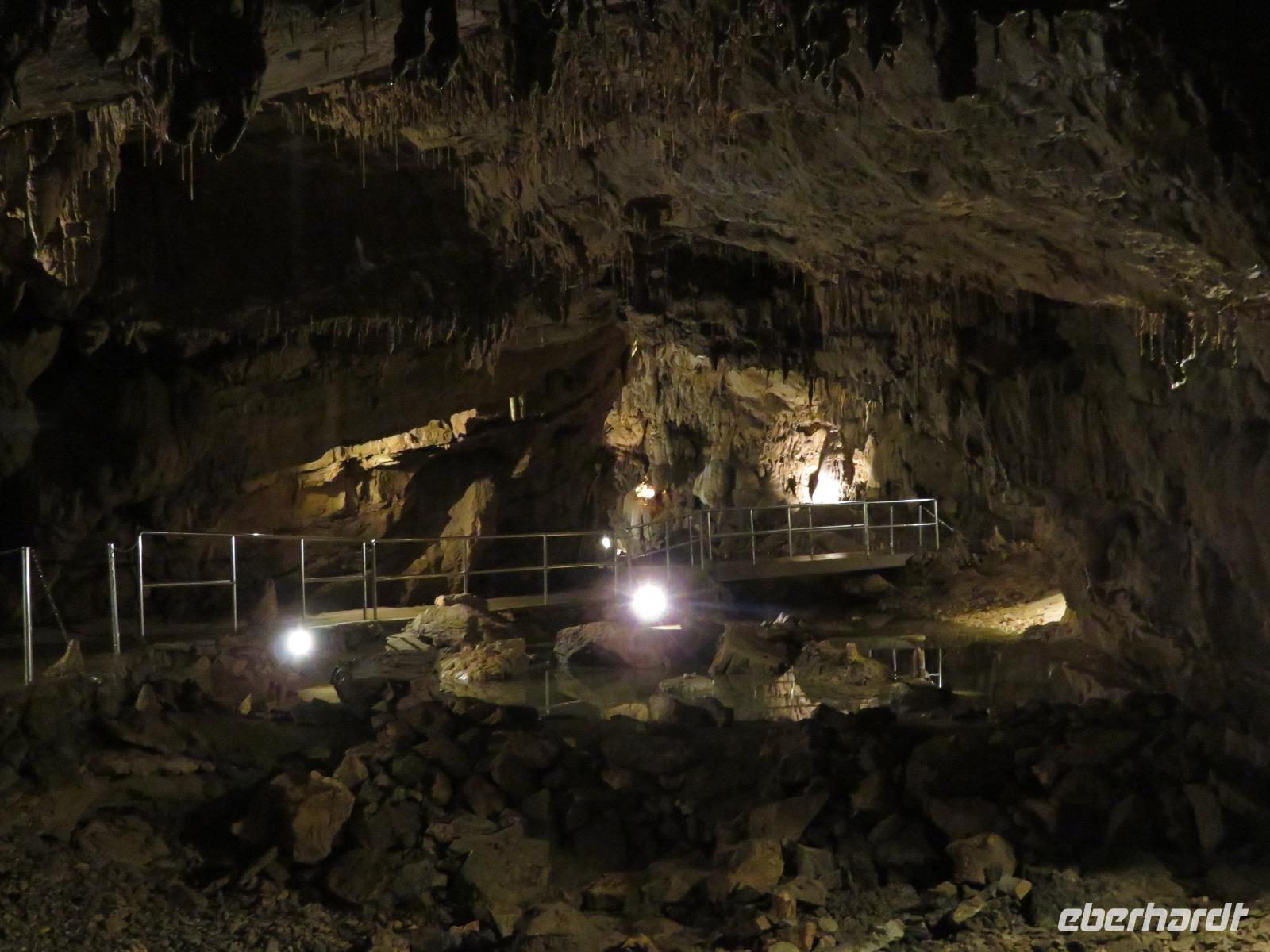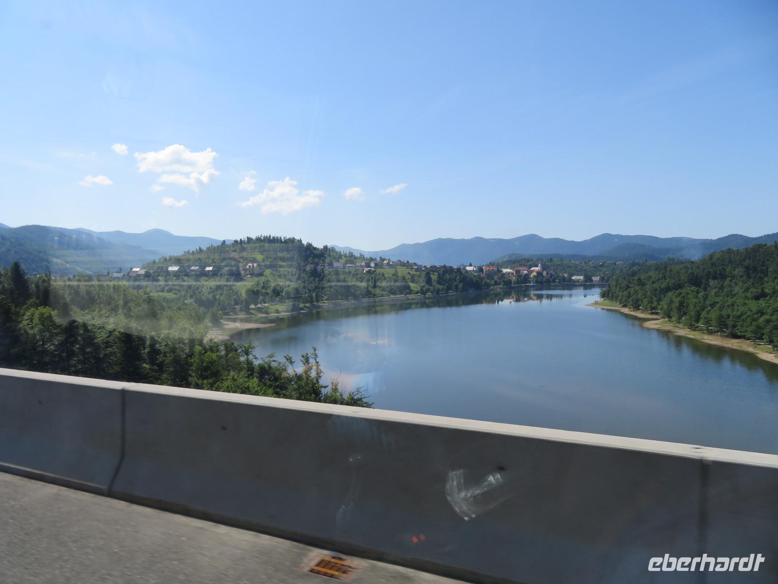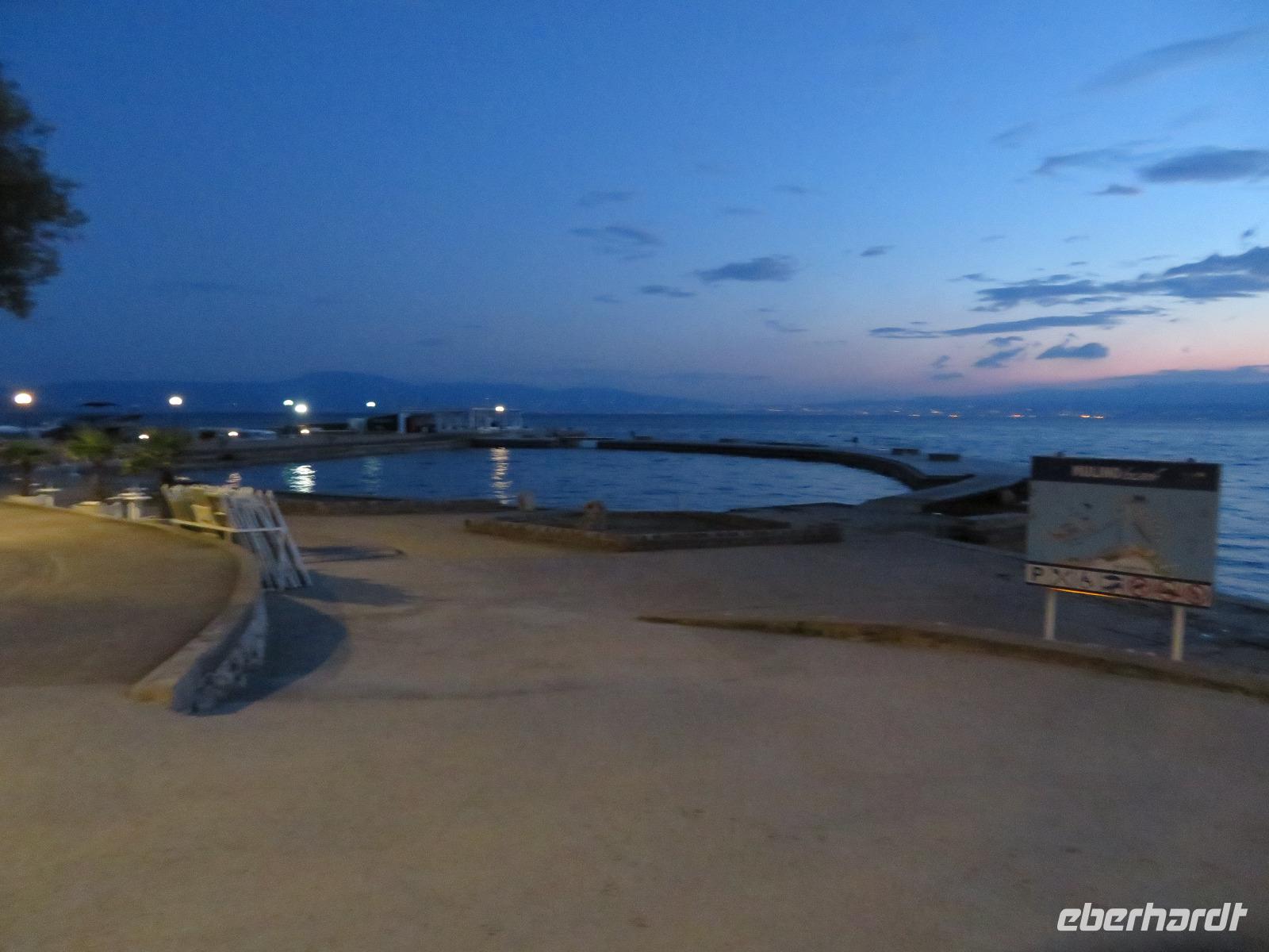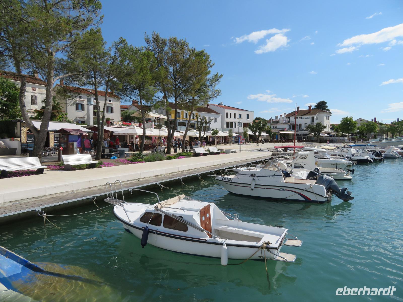Am Morgen lernten wir unseren Reiseleiter Veljko kennen. Er sollte uns nun die gesamte Zeit begleiten. Wir verließen die Insel Krk über die große geschwungene Brücke Krki most auf das Festland. Es sollte heute wieder sehr warm werden, doch da wir auf dem Weg in die grüne Lunge Kroatiens waren, konnten wir uns über angenehme Temperaturen freuen. Auf dem Weg nach Fuzine erfuhren wir mehr zur kroatischen Sprache und der Hauptindustrie, dem Schiffbau. In dem kleinen Bergdorf Fuzine angekommen, legten wir zuerst eine kleine Pause ein. Anschließend fuhren wir zur Grotte Vreno, die einzige touristische Grotte, durch die Grundwasser fließt. Nicht nur die unterschiedlichen Tropfsteinformen begeisterten uns, sondern auch die kühle Temperatur. Auch wurde die neuere Verfilmung der Winnetou-Filme zum Teil in dieser Höhle gedreht. Gut erfrischt kamen wir wieder aus der Grotte, fuhren wieder zum Örtchen Fuzine und genossen den typischen Waldfrüchte-Strudel bei einem Kaffee. Hmmm, war das lecker. Wer wollte, konnte einen Spaziergang am angrenzenden See unternehmen oder Fuzine selbst unsicher machen. Wieder auf Krk angekommen, hielten wir noch in einer kleinen Bucht und konnten einen tollen Blick auf das türkisblaue Meer und die elegante Bogenbrücke zwischen Festland und Insel genießen. Anschließend hatten wir genug Zeit bis zum Abendessen, um baden zu gehen oder die Gegend zu erkunden. Abends trafen wir uns wieder zum gemeinsamen Abendessen und anschließend für einen kleinen Spaziergang zum Hafen.