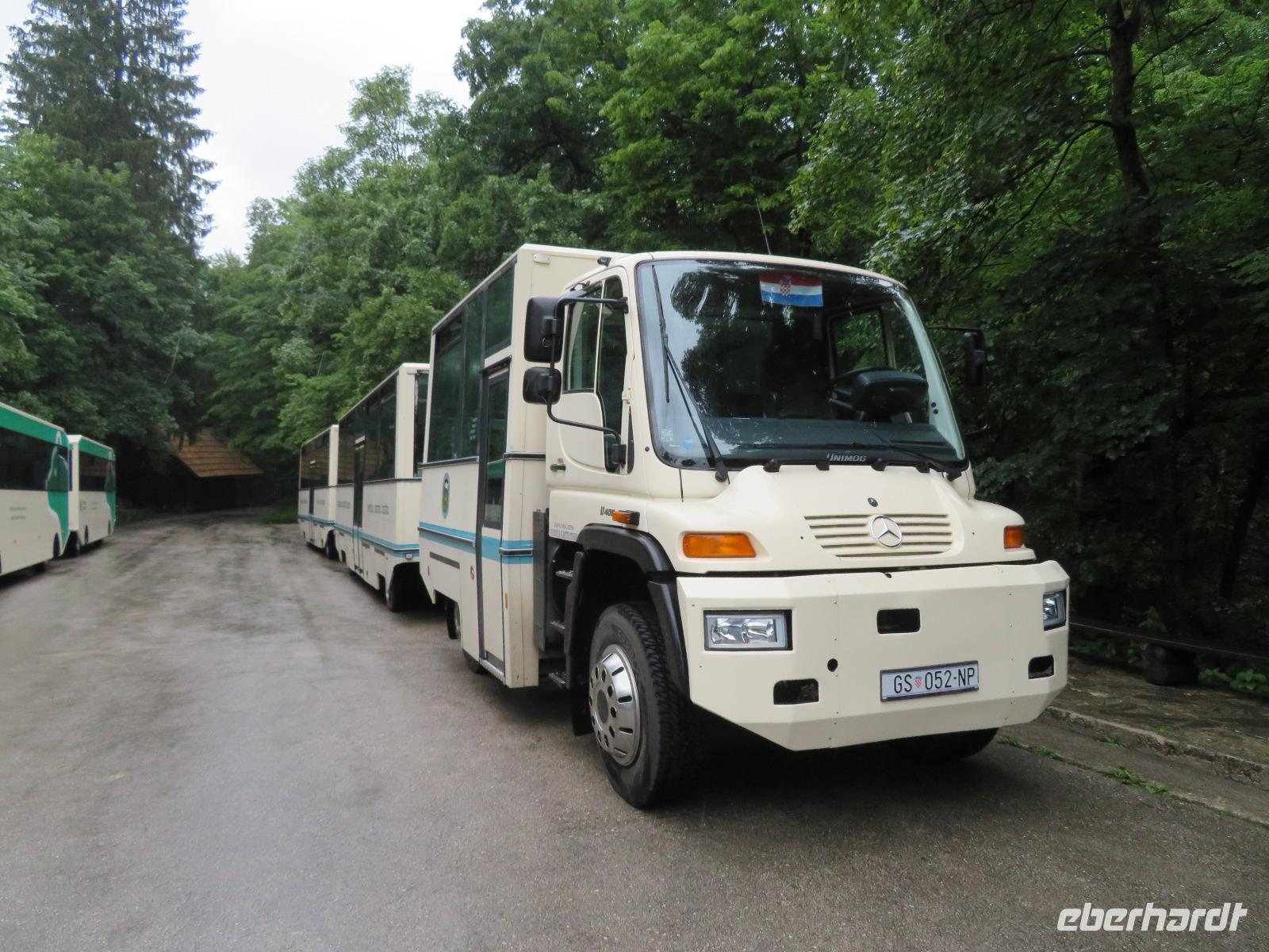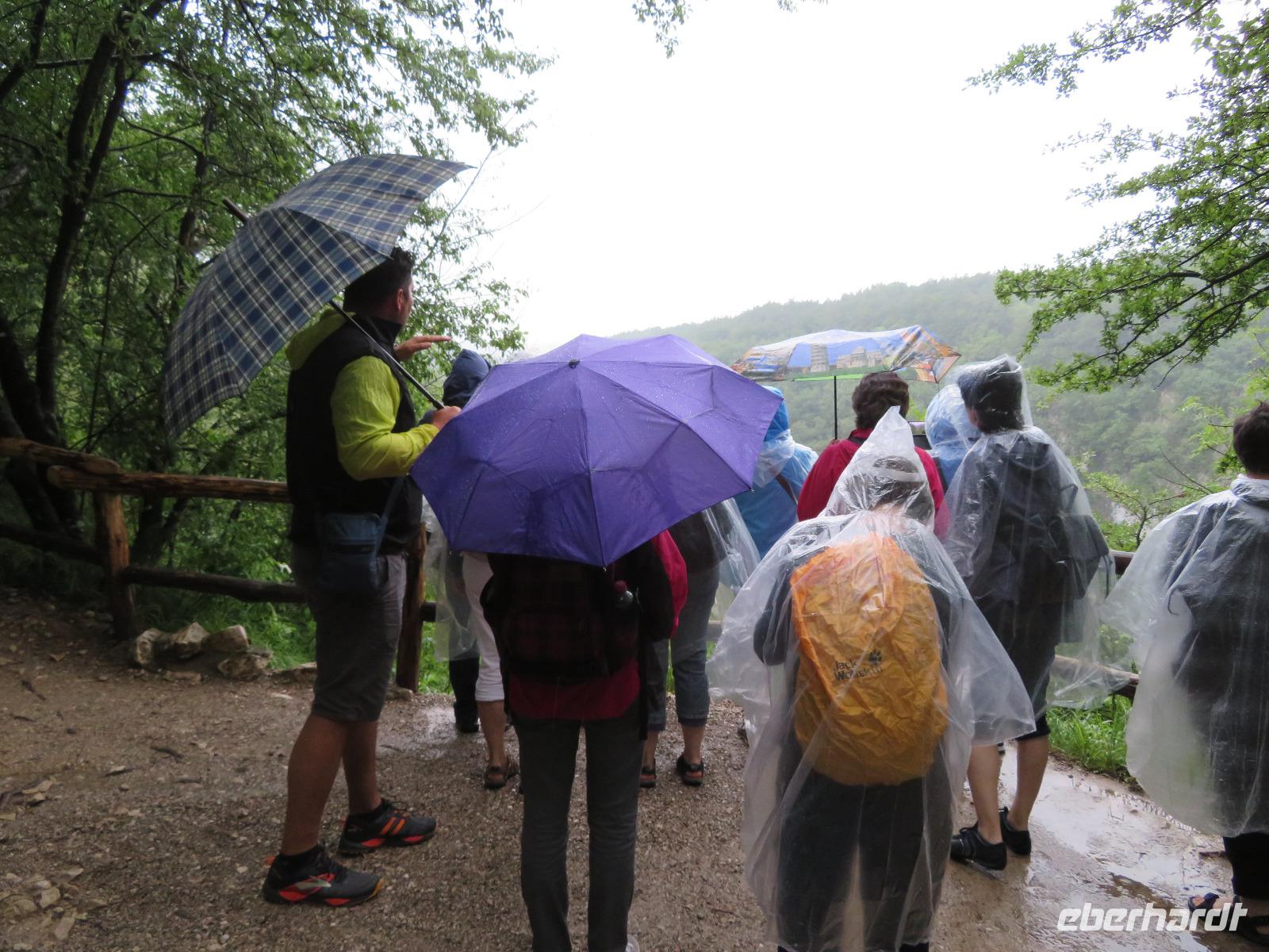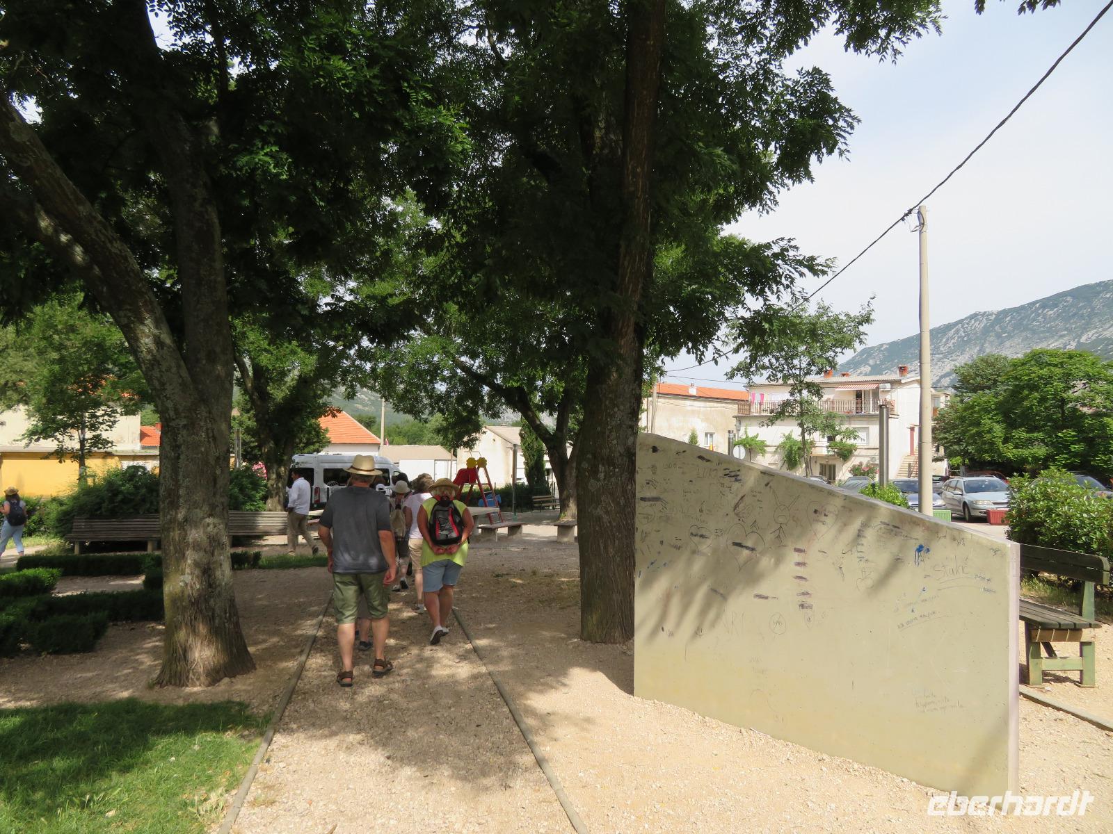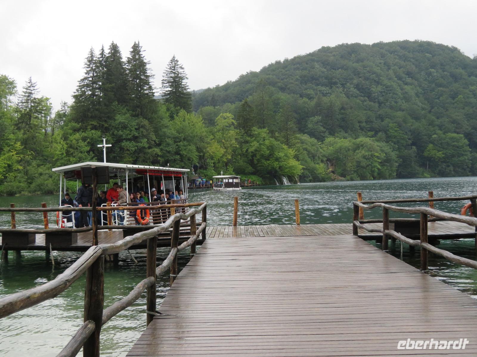 Der heutige Ausflug war fakultativ, daher fuhr nur ein Teil der Single-Reisegruppe mit auf das Festland. Früh am Morgen ging es los, schließlich hatten wir eine 3-stündige Fahrt vor uns. Wir bemerkten auch gleich, dass es heute windiger war, als die Tage zuvor. Es war zwar eine schwache Version des bekannten Bora-Windes, doch der Bus wurde trotzdem ordentlich geschüttelt. Auch hatten wir Glück, denn die Bogenbrücke auf das Festland wird bei starkem Wind gesperrt. Zu groß ist dann die Unfallgefahr. Kurz bevor es über zahlreiche Serpentinen über das Velebit-Gebirge ging, legten wir noch eine kleine Pause in Senj ein und konnten dort die starken Winde über dem Wasser und den Wolken über den Bergen beobachten. Ein wirklich faszinierendes Schauspiel. Als wir über dem Gebirgskamm fuhren, verschlechterte sich leider das Wetter für den gesamten Tag. Veljko erzählte uns über Landwirtschaft, wilde Tiere in den Wäldern und auch über den Krieg. Wir fuhren durch einen Ort, an dem man immer noch zahlreiche Zerstörungen an den Häuserfronten erkennen konnte. Auch dieser Teil der Geschichte gehört zu Kroatien, doch waren wir alle etwas sprachlos und schauten die vorbeiziehenden Landschaften an. Bei regnerischem Wetter erreichten wir den Nationalpark der Plitwitzer Seen. Er ist mit seinen 300 Quadratkilometern der größte von insgesamt acht Nationalparks. Wir kauften uns Regenponchos und stapften los. Schon der erste Blick über die grüne dampfende Waldlandschaft mit einem riesigen Wasserfall in der Mitte, versetzte uns ins Staunen. Immer wieder entdeckten wir neue, noch schönere Aussichten zu den türkisblauen Seen mit kleinen Wasserfällen, durchzogen von zahlreichen Holzstegen. Kennzeichnend für den Nationalpark sind die zahlreichen Kaskaden und die erwähnten Wasserfälle, die die einzelnen Seen miteinander verbinden. Um ein wenig abzukürzen fuhren wir ein Stück mit der Parkbahn und mit Booten. Dann ging es zu Weilen recht abenteuerlich über Wege mit Holzplanken. Natürlich ohne Geländer. Trotz des recht ungünstigen Wetters waren viele Besucher in dem Park unterwegs. Nach einer gut dreistündigen interessanten Besichtigungstour traten wir den Rückweg an und hielten unterwegs in einem Dorf, wo wir verschiedene Liköre, Käsesorten und Honig kosten und auch kaufen konnten.